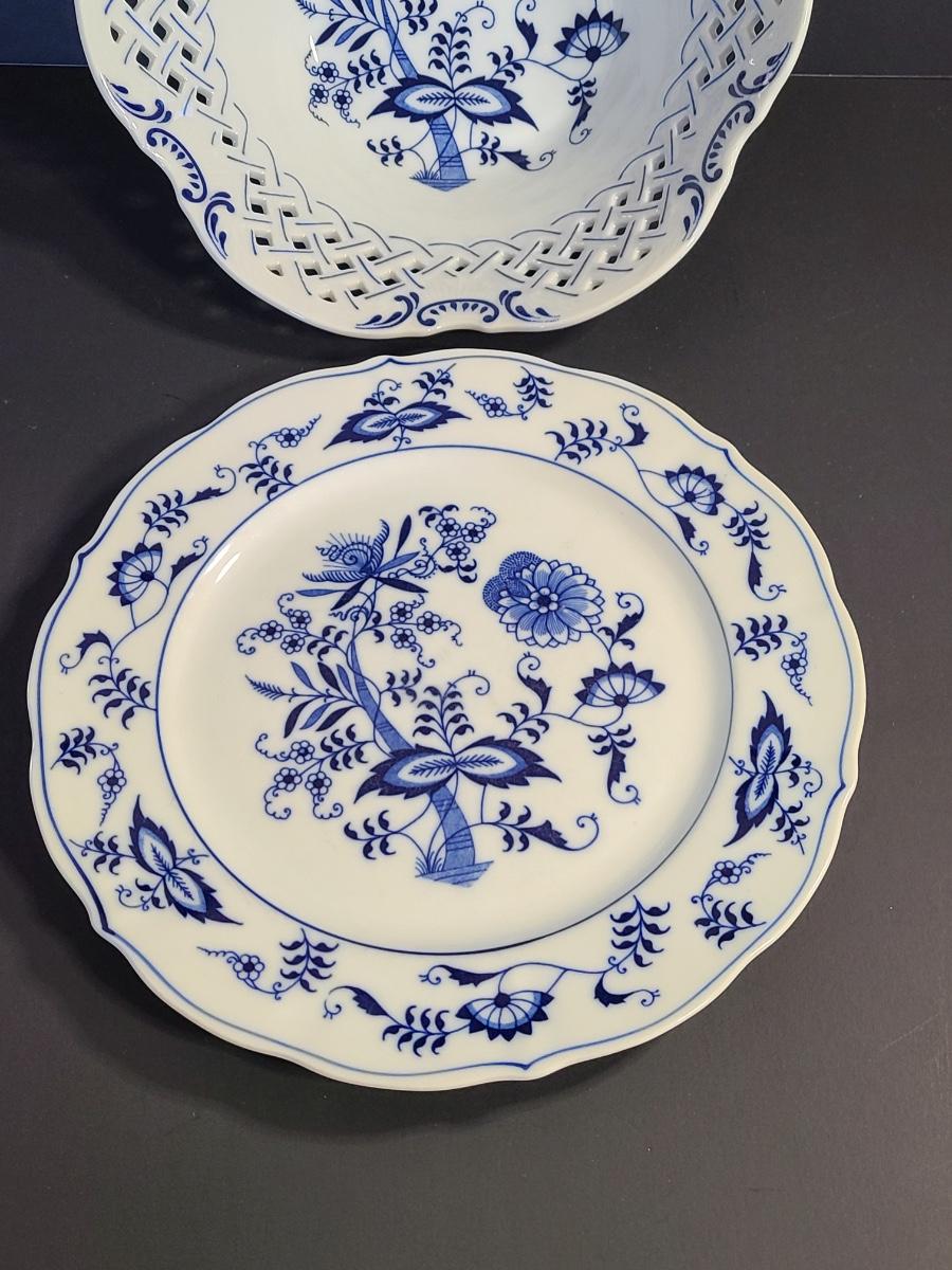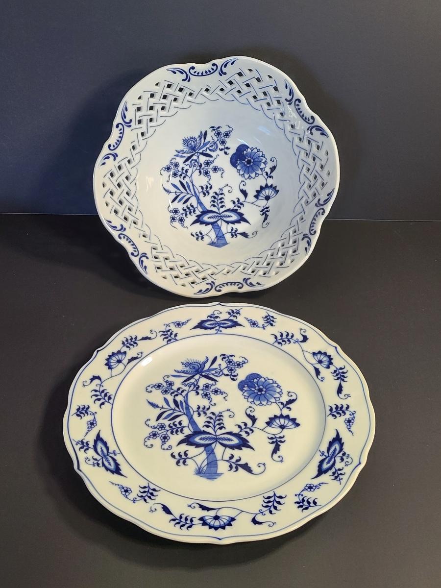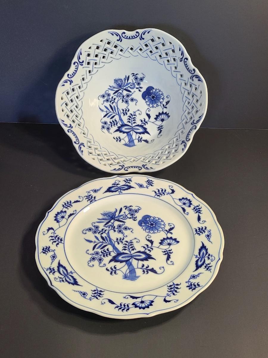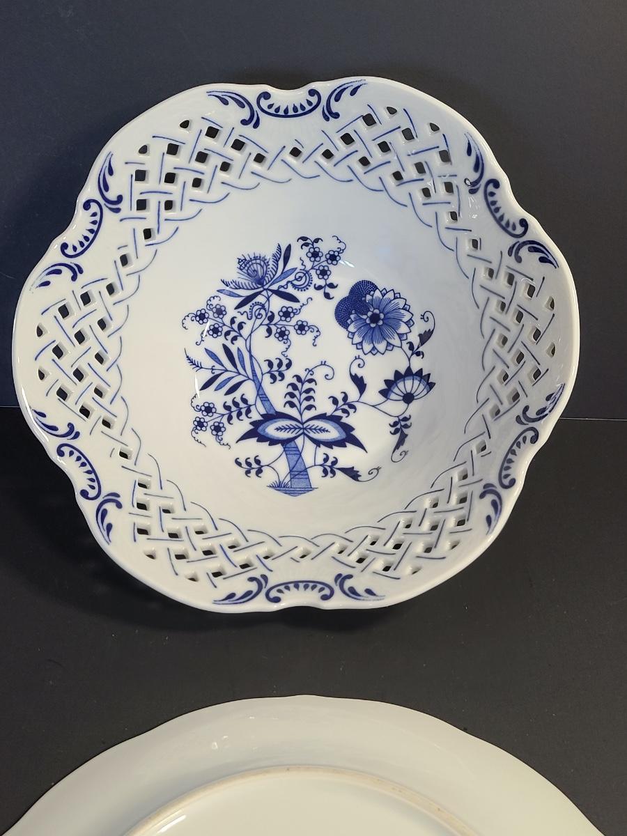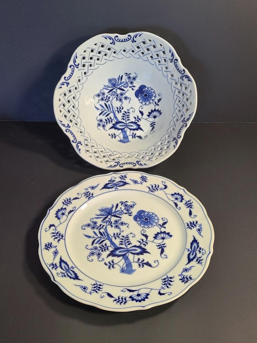 LOT 31S: Blue Danube, Blue Onion Lace Edge Serving Bowl and Plate