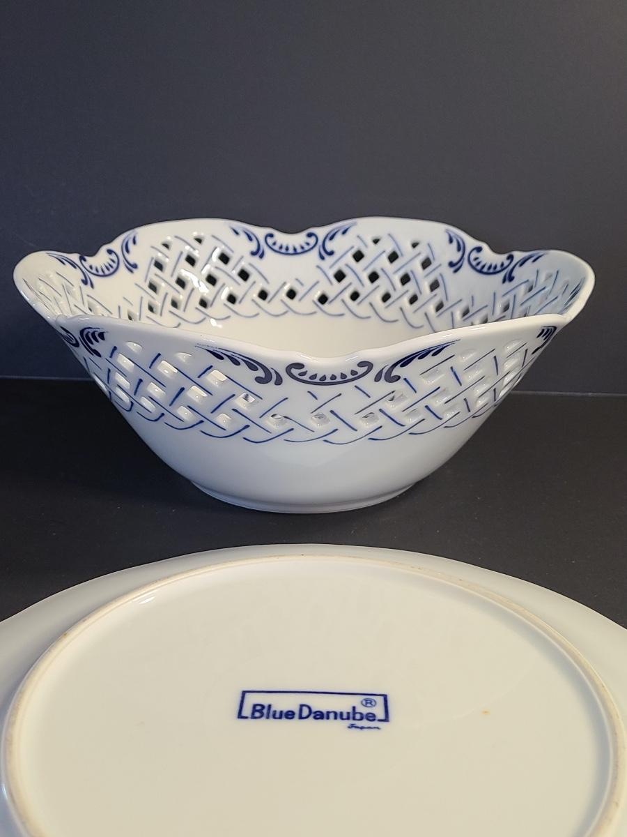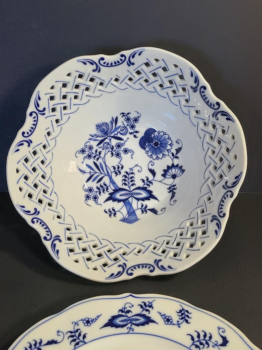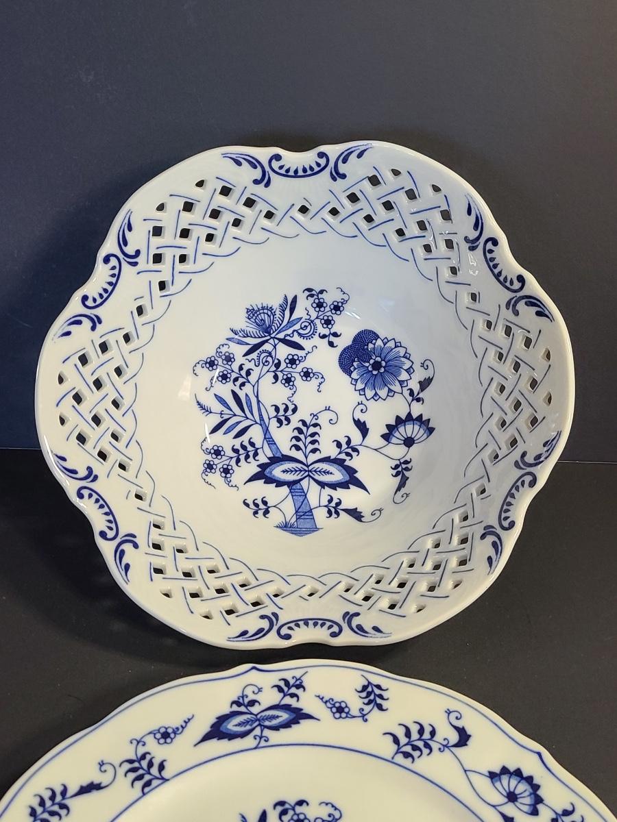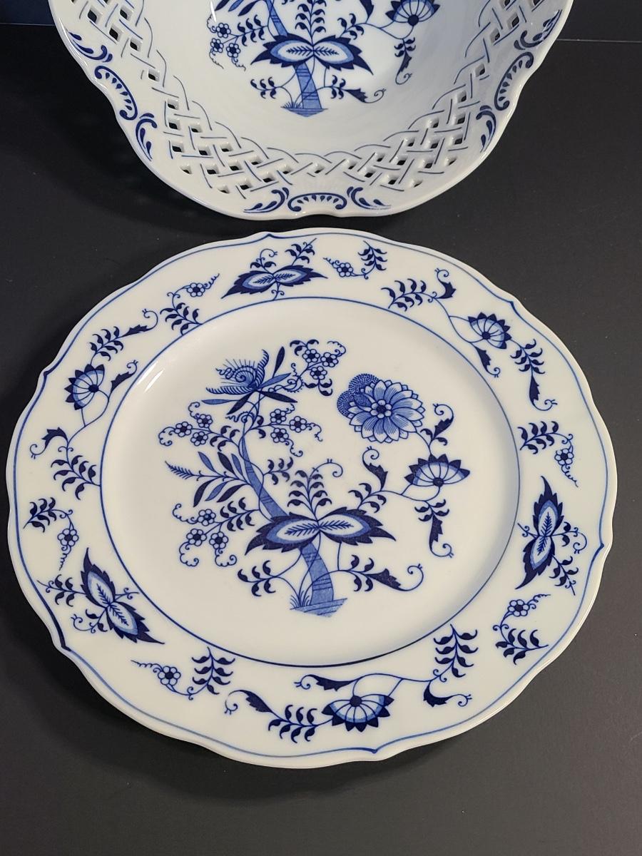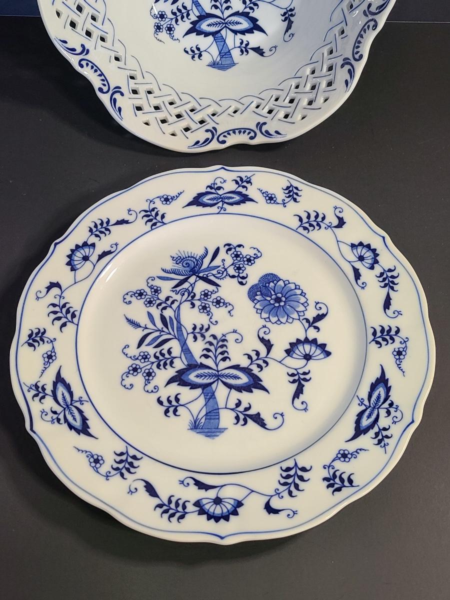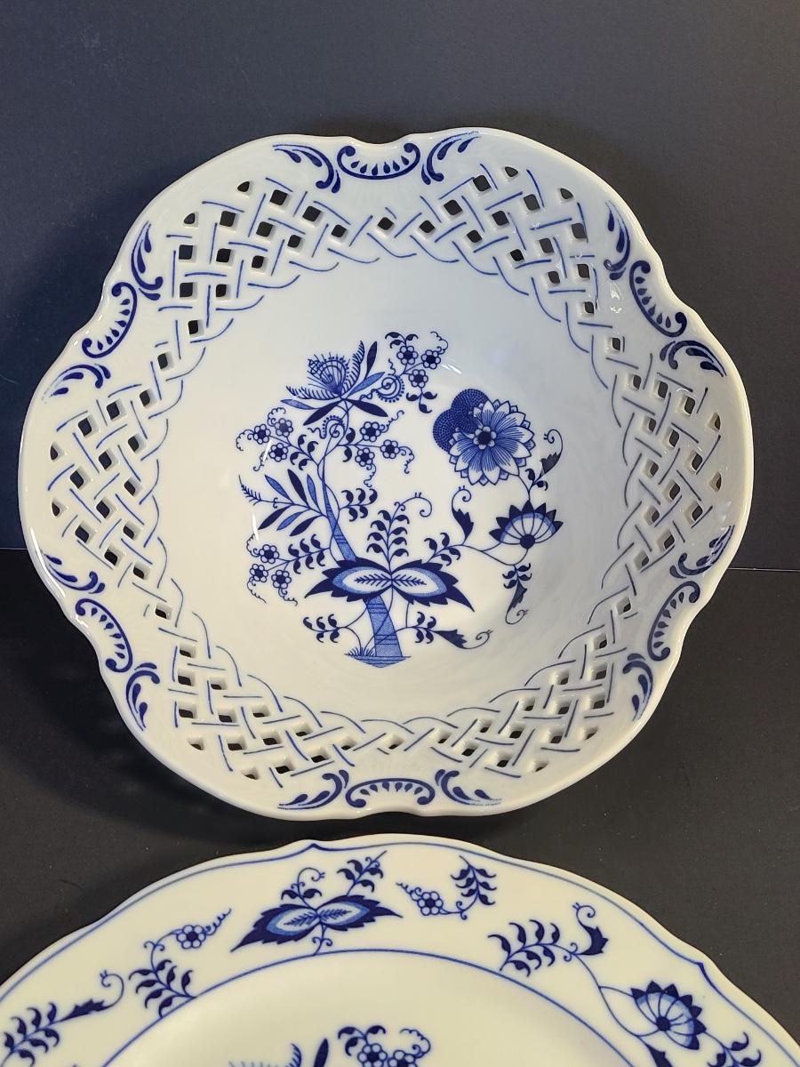 LOT 31S: Blue Danube, Blue Onion Lace Edge Serving Bowl and Plate
