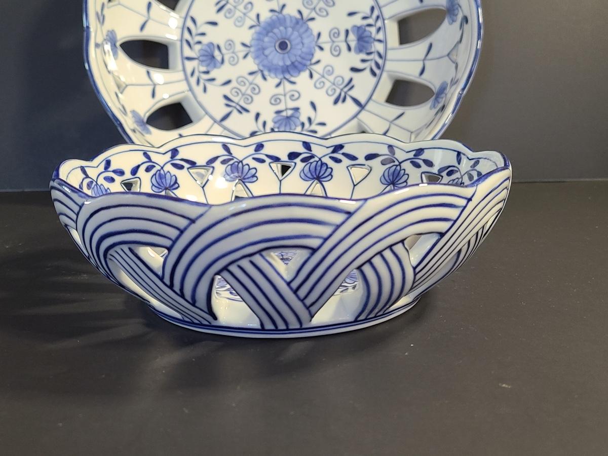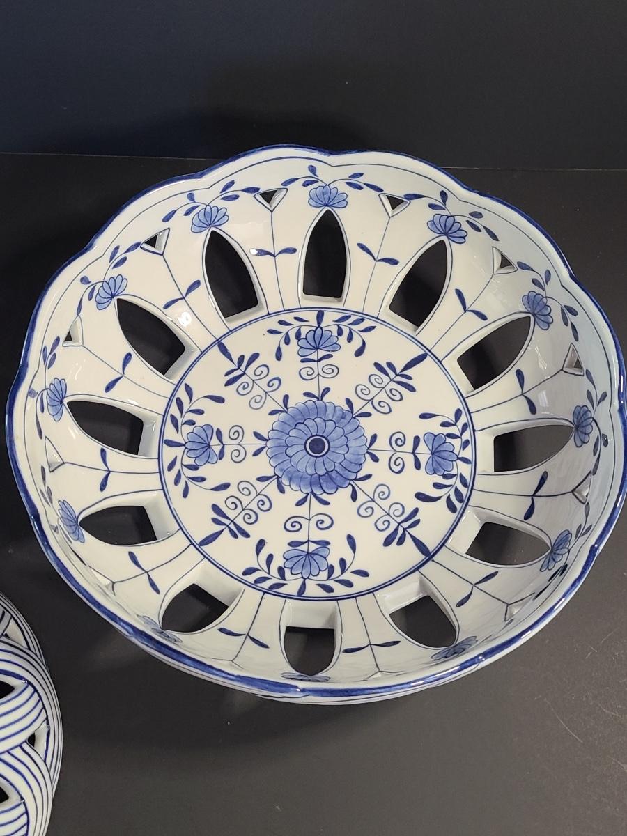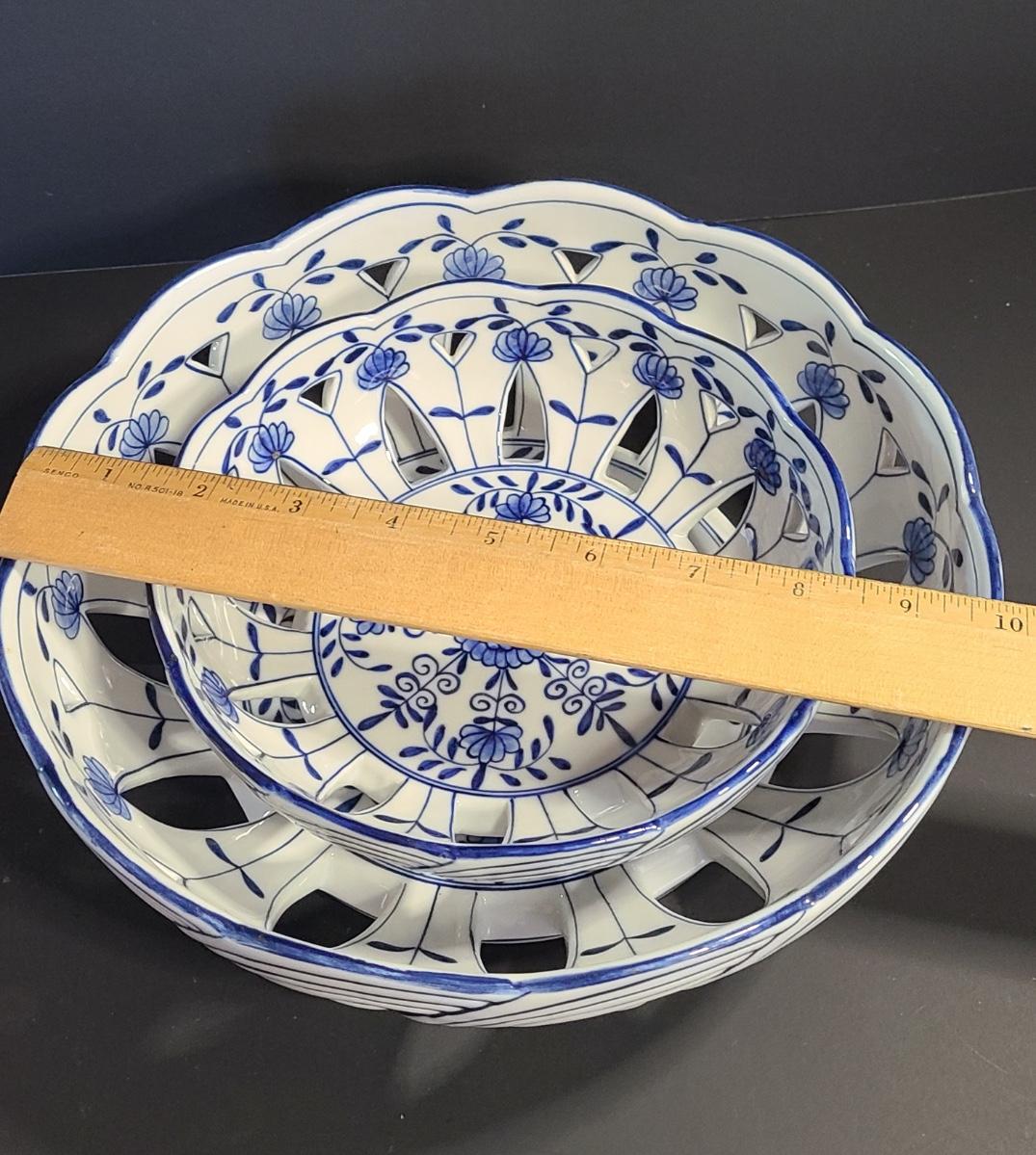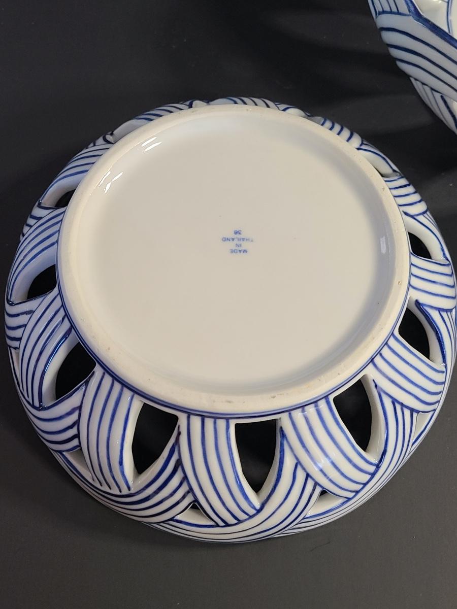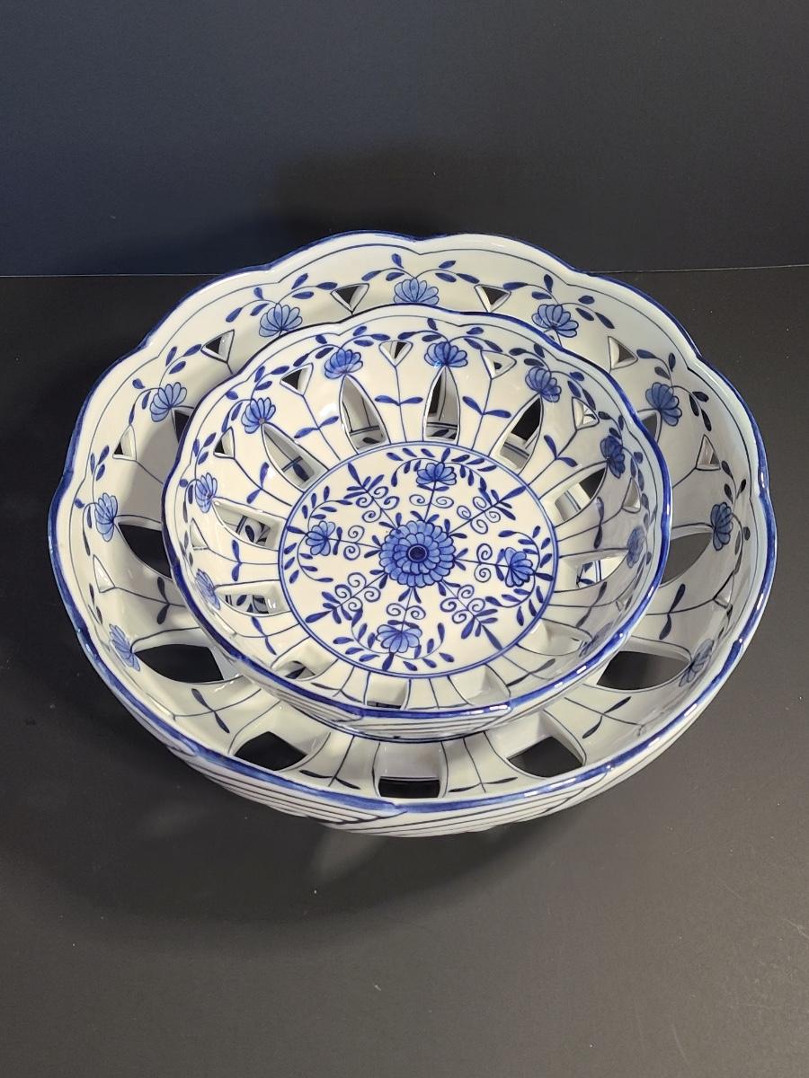 LOT 33S: Blue Onion Designed Lace Centerpiece Bowls