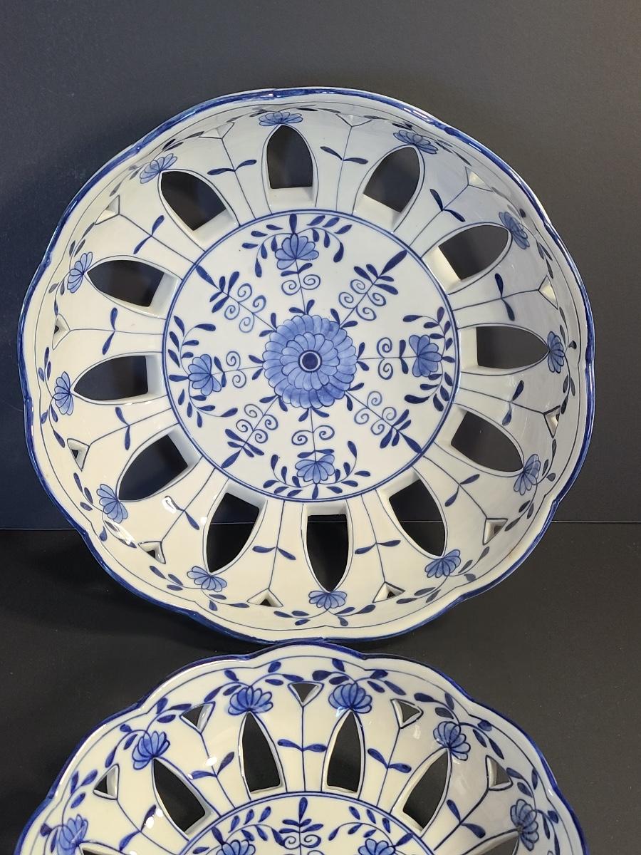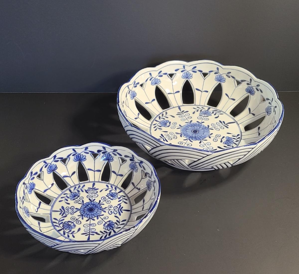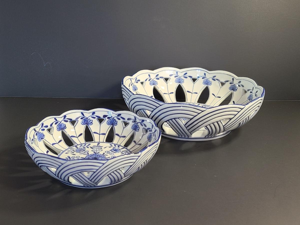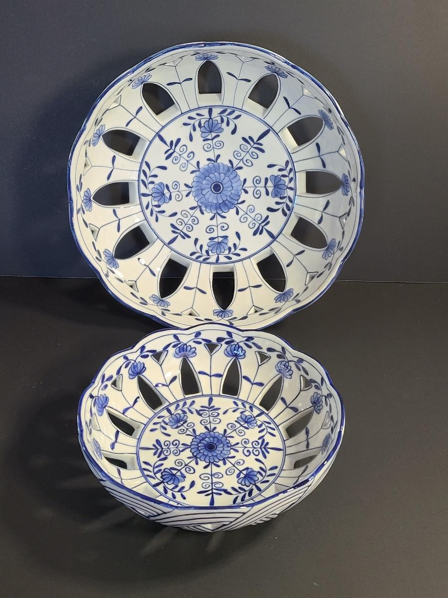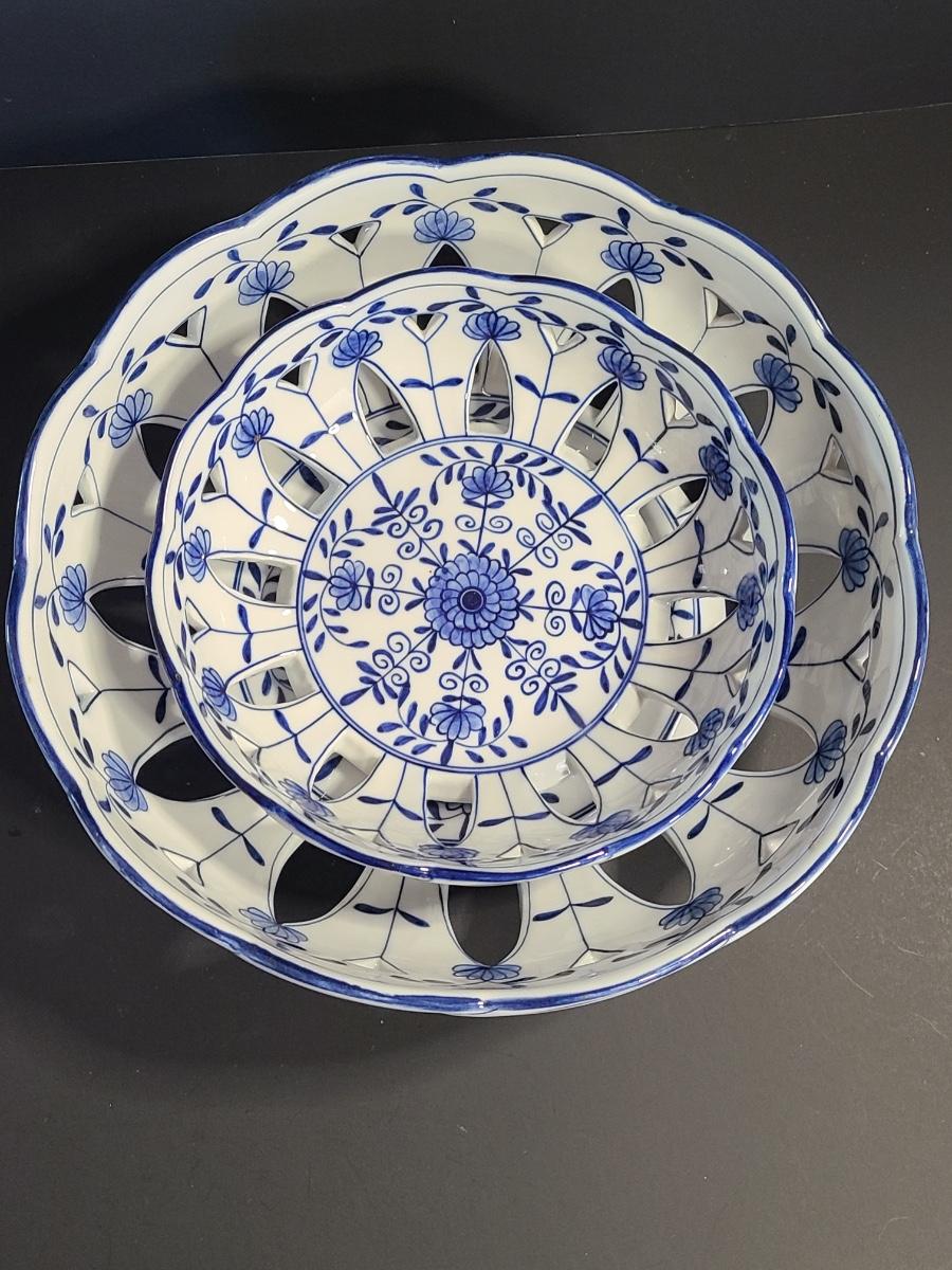 LOT 33S: Blue Onion Designed Lace Centerpiece Bowls