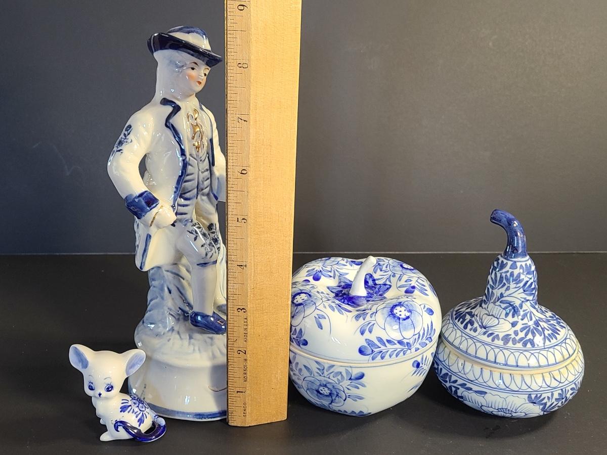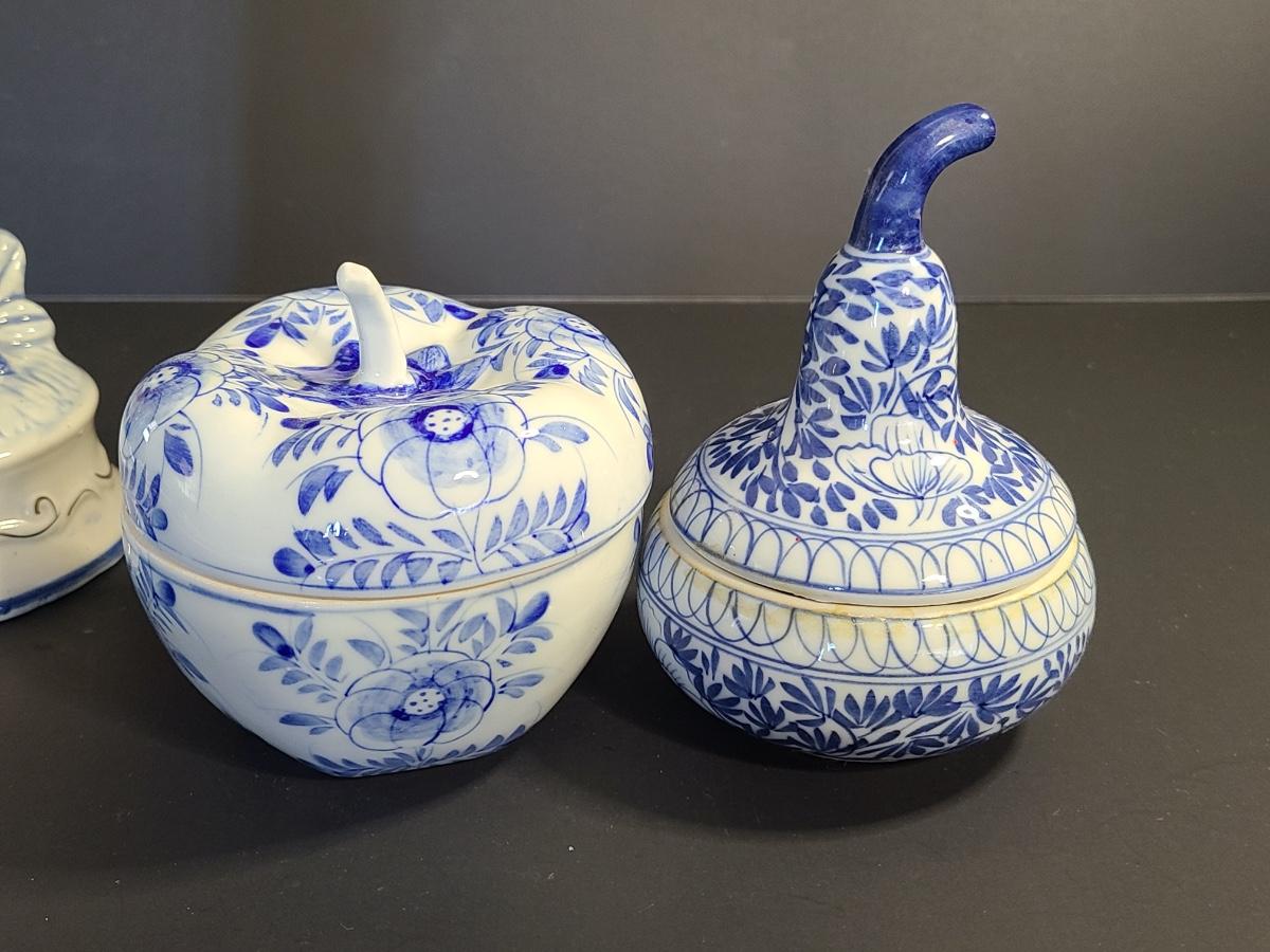 LOT 34S: Blue & White Trinket Fruit Boxes and More