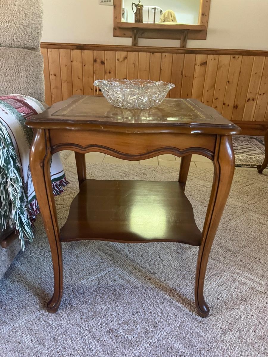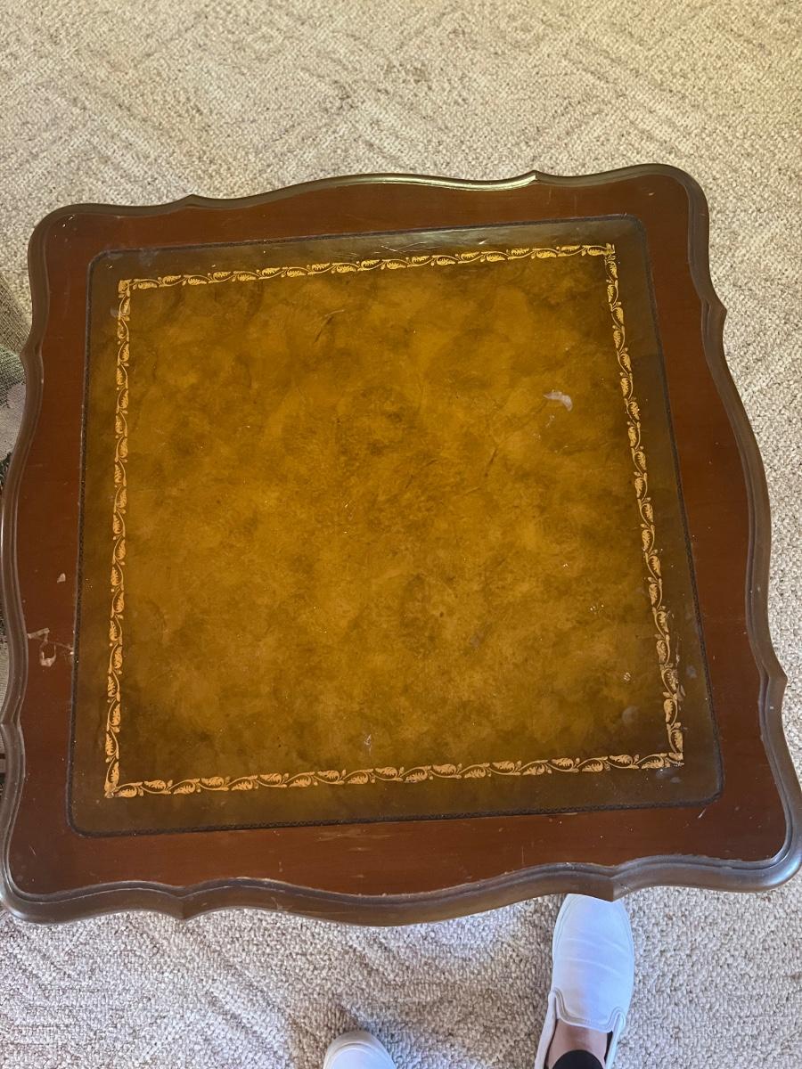LOT 48C: Antique Queen Anne Style Side table with Leather In-lay