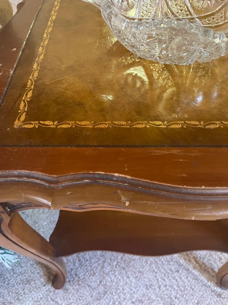 LOT 48C:  Antique Queen Anne Style Side table with Leather In-lay