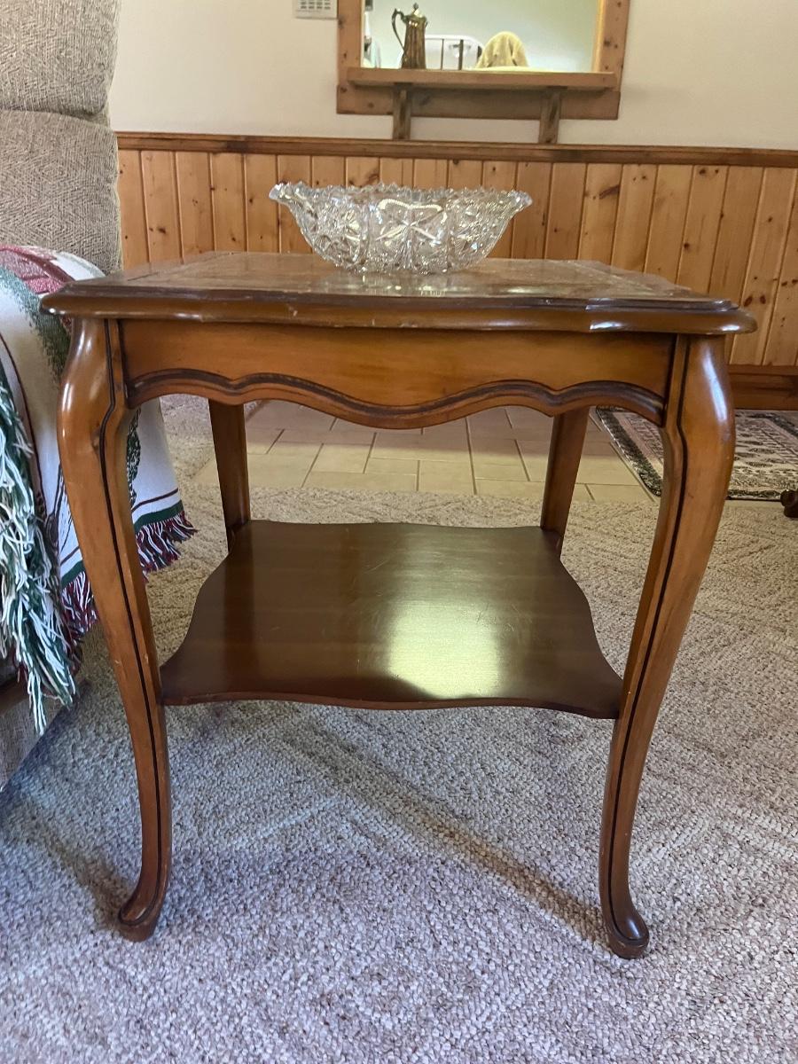 22”x22”x25”. Lovely solid table, does show minor wear. This would look new with a fresh coat of polish! Please see all pictures as they are the best representation of the items. The pictures show condition, measurements if taken, and what is included in the lot. Due to the large amount that we photograph and the time frame, we are not always able to take measurements. All items unless noted, are pre-owned and have been used. If you purchased furniture, you must bring help. We do not allow one person to carry large furniture out on their own. Bring help, tools and a truck for the safety of our client’s homes, and your personal safety. Any damages that result to the property including walls, and floors due to moving of the furniture will be charged to the buyer. Company policy. Thank you.