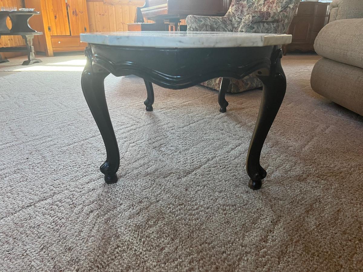 52”x24”x16”. Marble top is removable for easier moving. The table base was painted a black, but would look wonderful with a fresh grey or white paint! Please see all pictures as they are the best representation of the items. The pictures show condition, measurements if taken, and what is included in the lot. Due to the large amount that we photograph and the time frame, we are not always able to take measurements. All items unless noted, are pre-owned and have been used. If you purchased furniture, you must bring help. We do not allow one person to carry large furniture out on their own. Bring help, tools and a truck for the safety of our client’s homes, and your personal safety. Any damages that result to the property including walls, and floors due to moving of the furniture will be charged to the buyer. Company policy. Thank you.