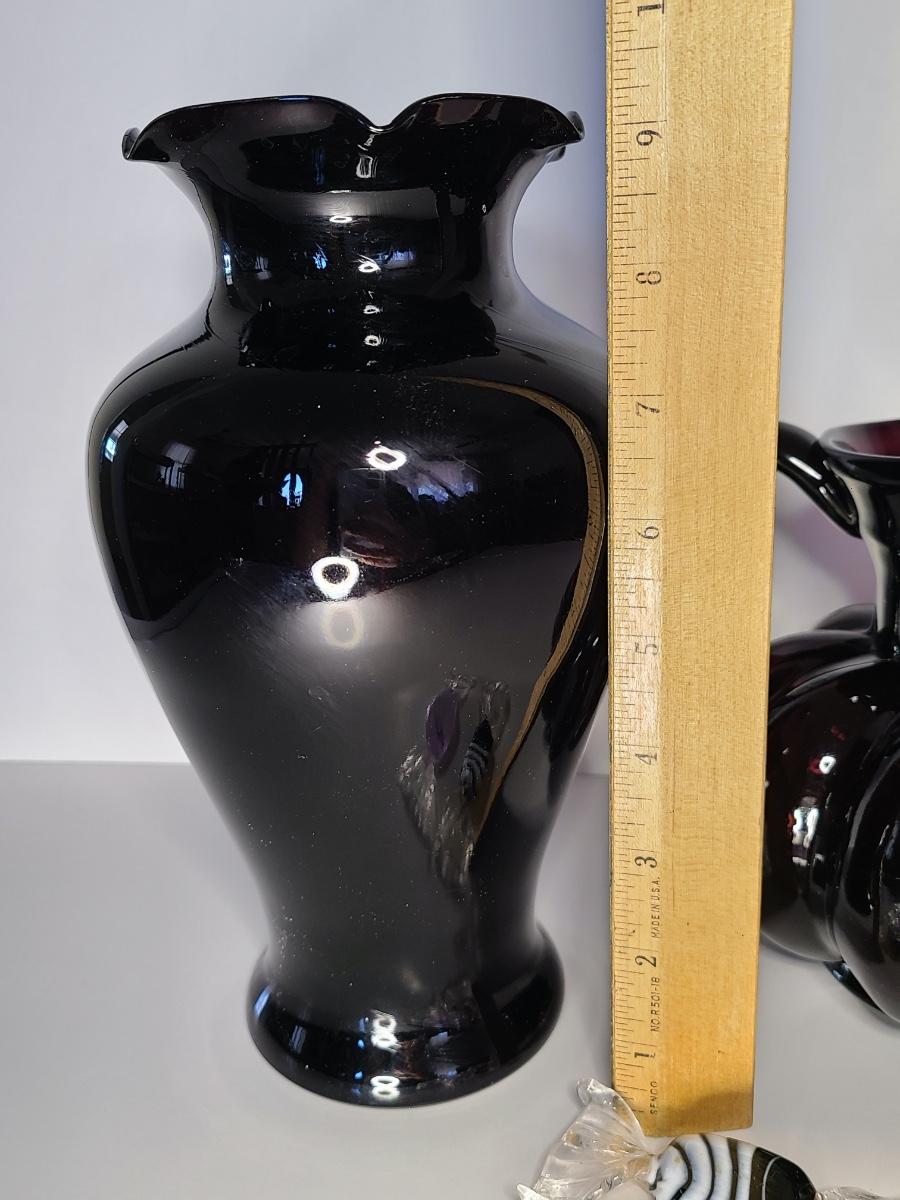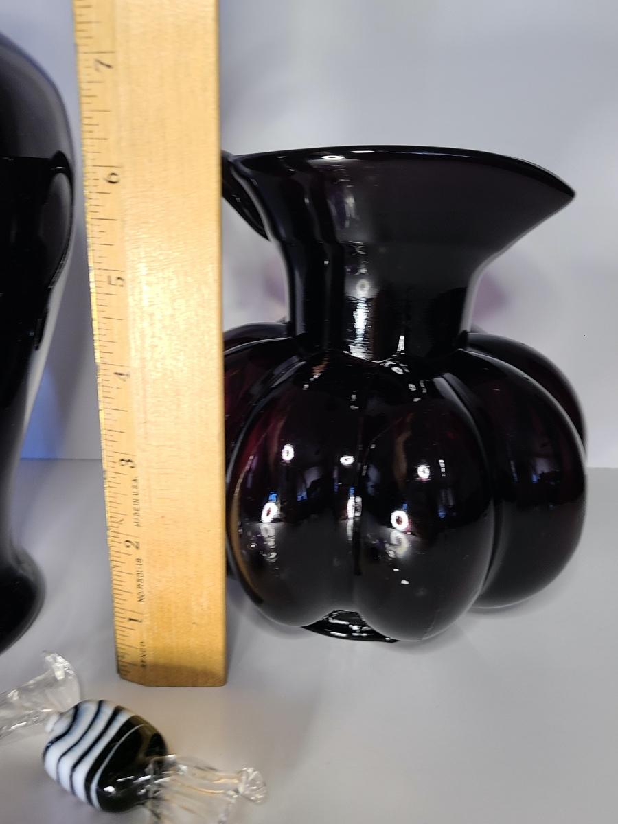 Beautiful purple glass pitcher marked CB on the bottom, unmarked larger size purple vase, and two Murano glass candies. Please see all pictures as they are the best representation of the items. The pictures show condition, measurements if taken, and what is included in the lot. Due to the large amount that we photograph and the time frame, we are not always able to take measurements. All items unless noted, are pre-owned and have been used. If you purchased furniture, you must bring help. We do not allow one person to carry large furniture out on their own. Bring help, tools and a truck for the safety of our client’s homes, and your personal safety. Any damages that result to the property including walls, and floors due to moving of the furniture will be charged to the buyer. Company policy. Thank you.