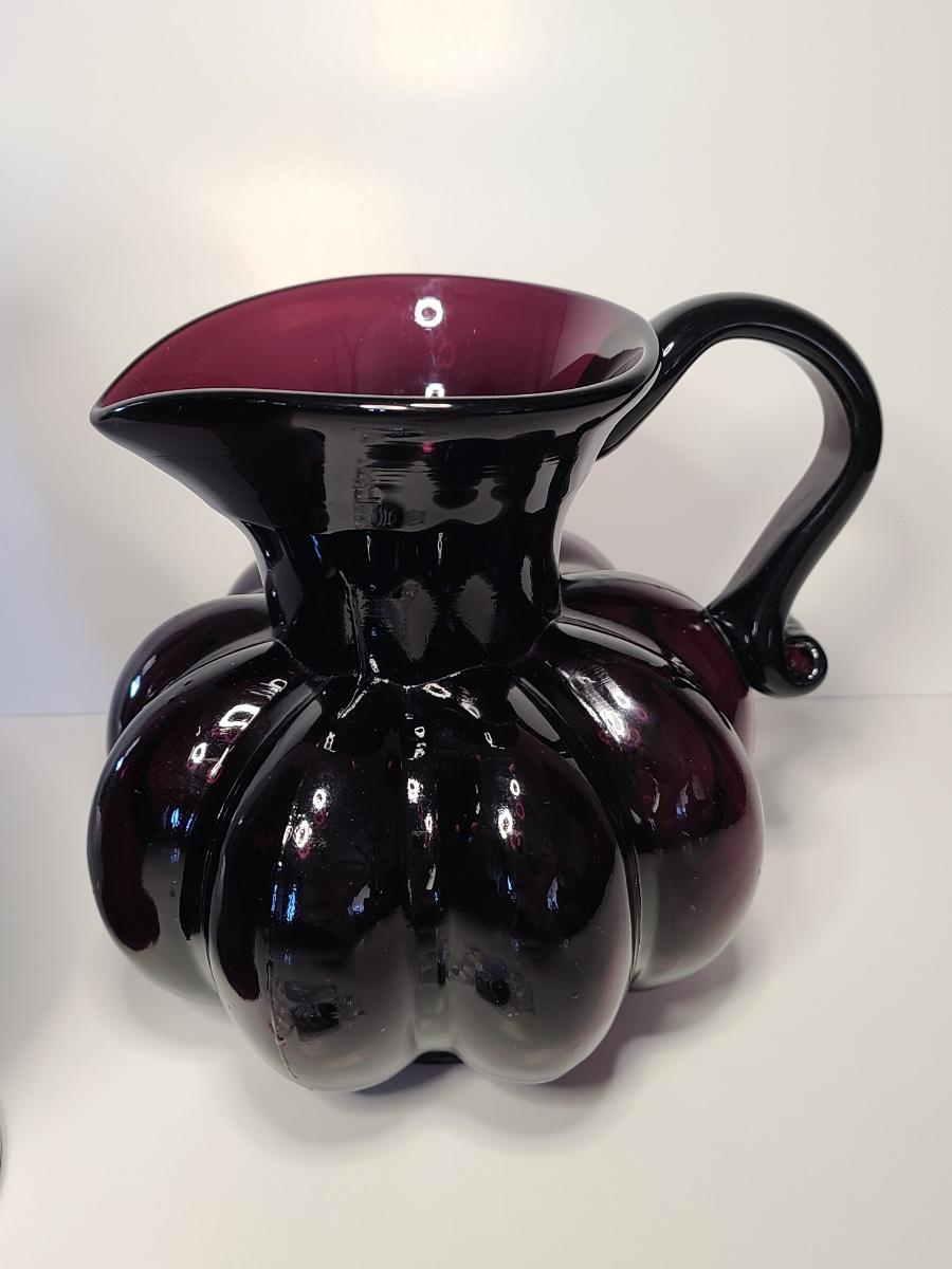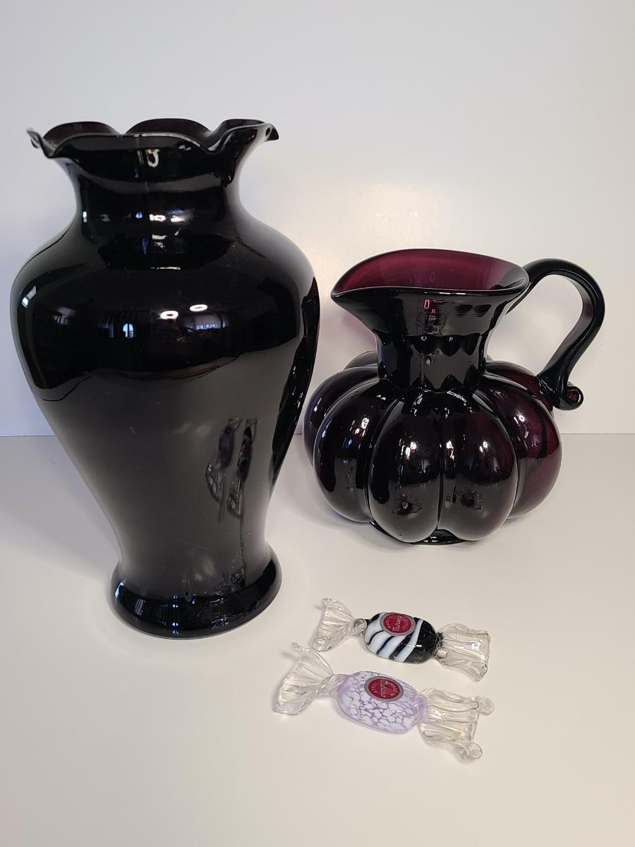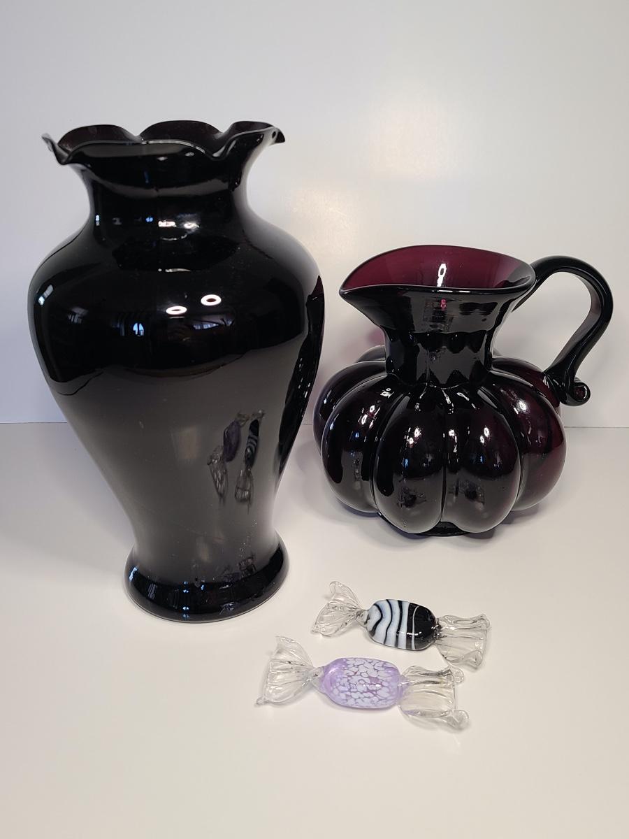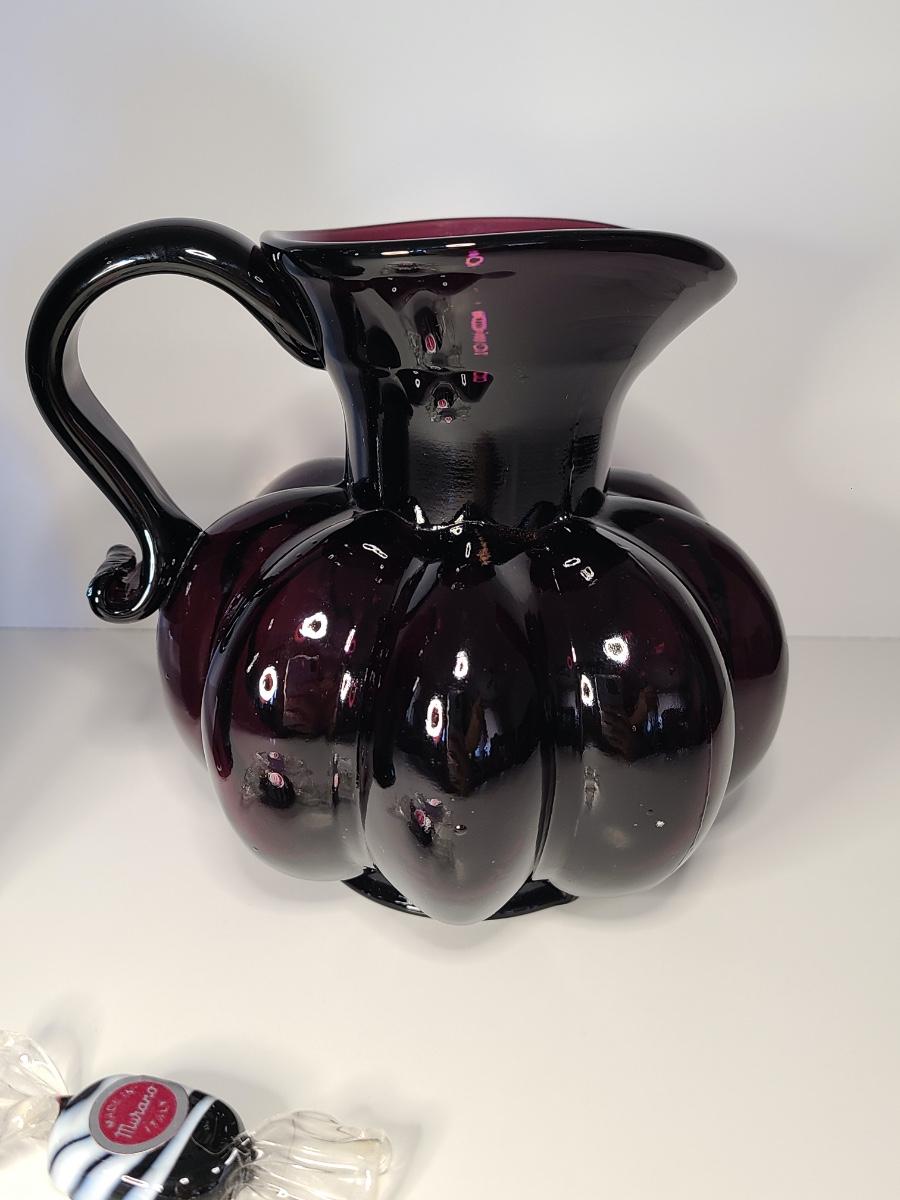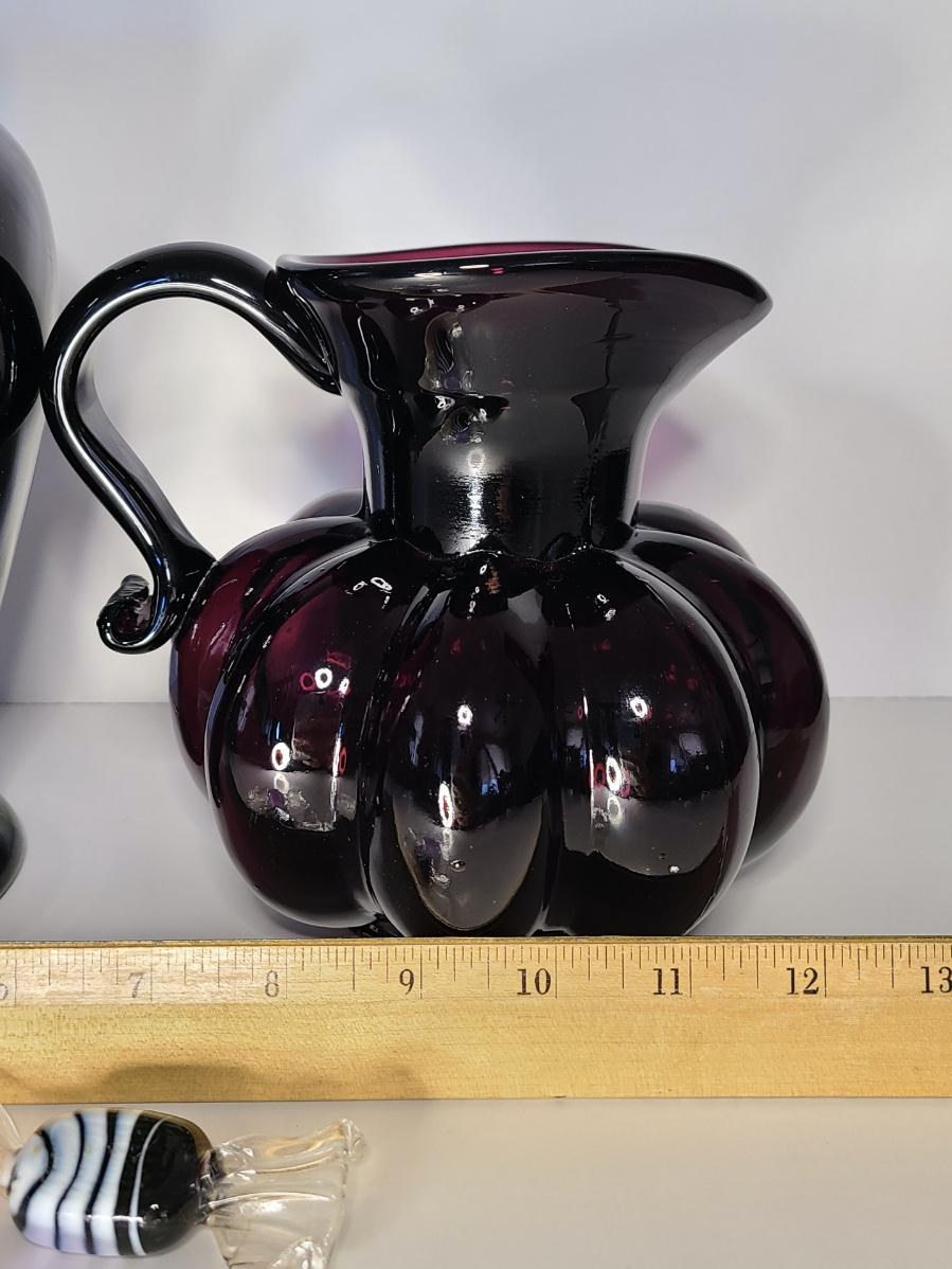LOT 42S: Purple Clevenger Brothers Pitcher and Murano Glass Candies