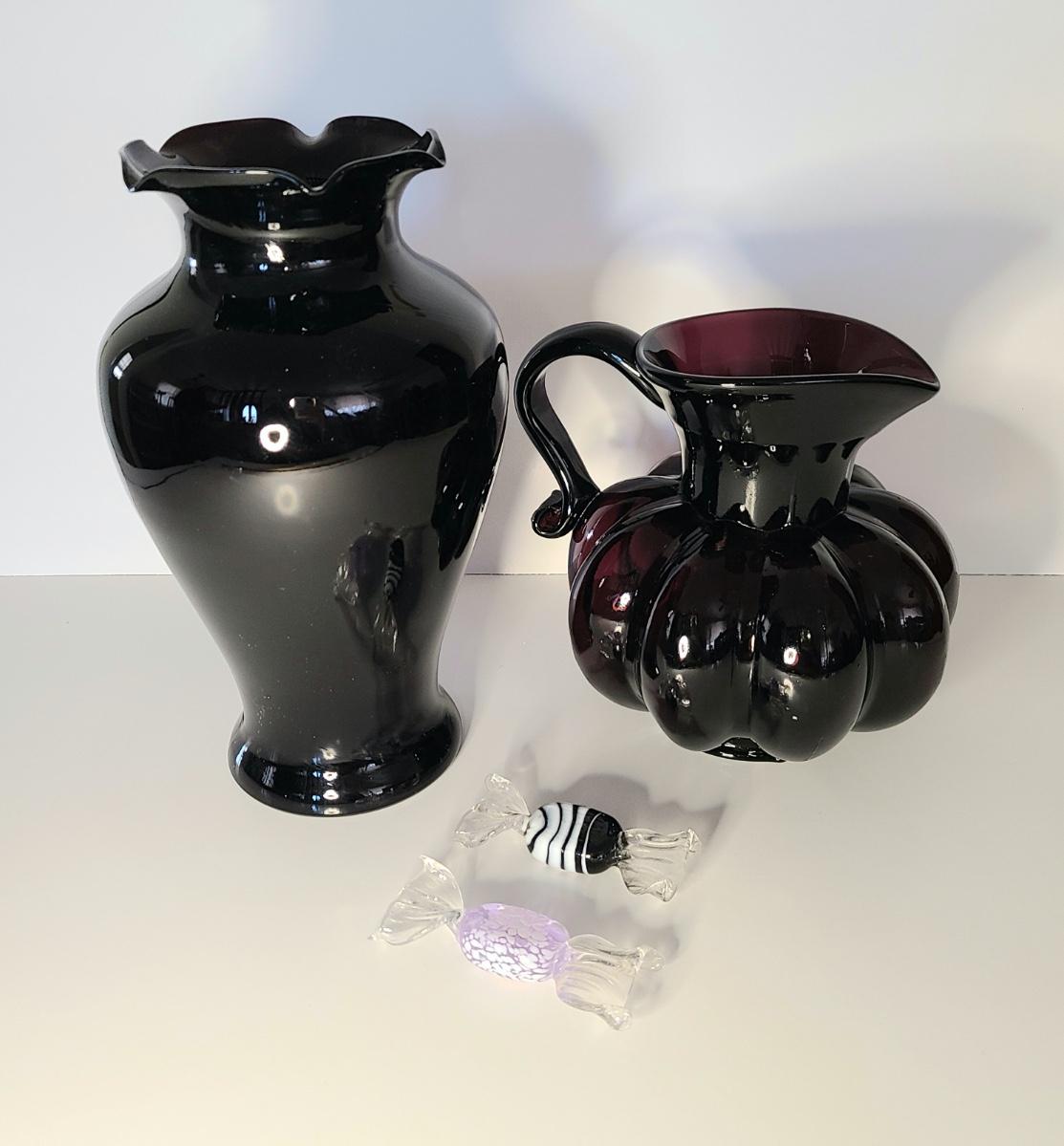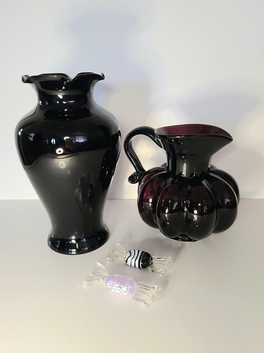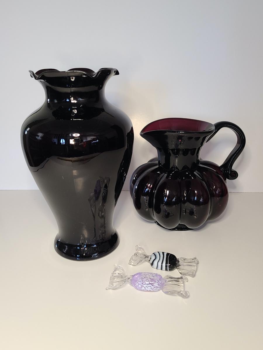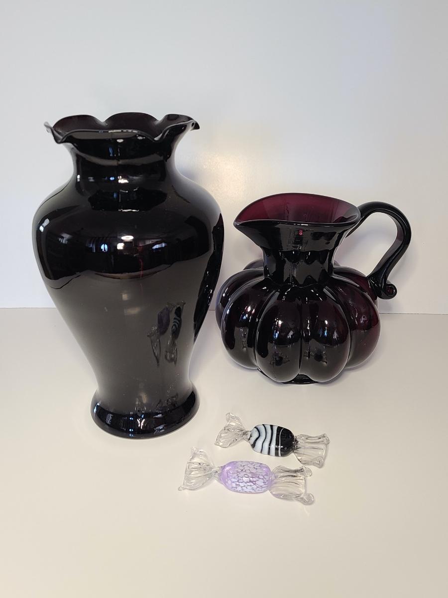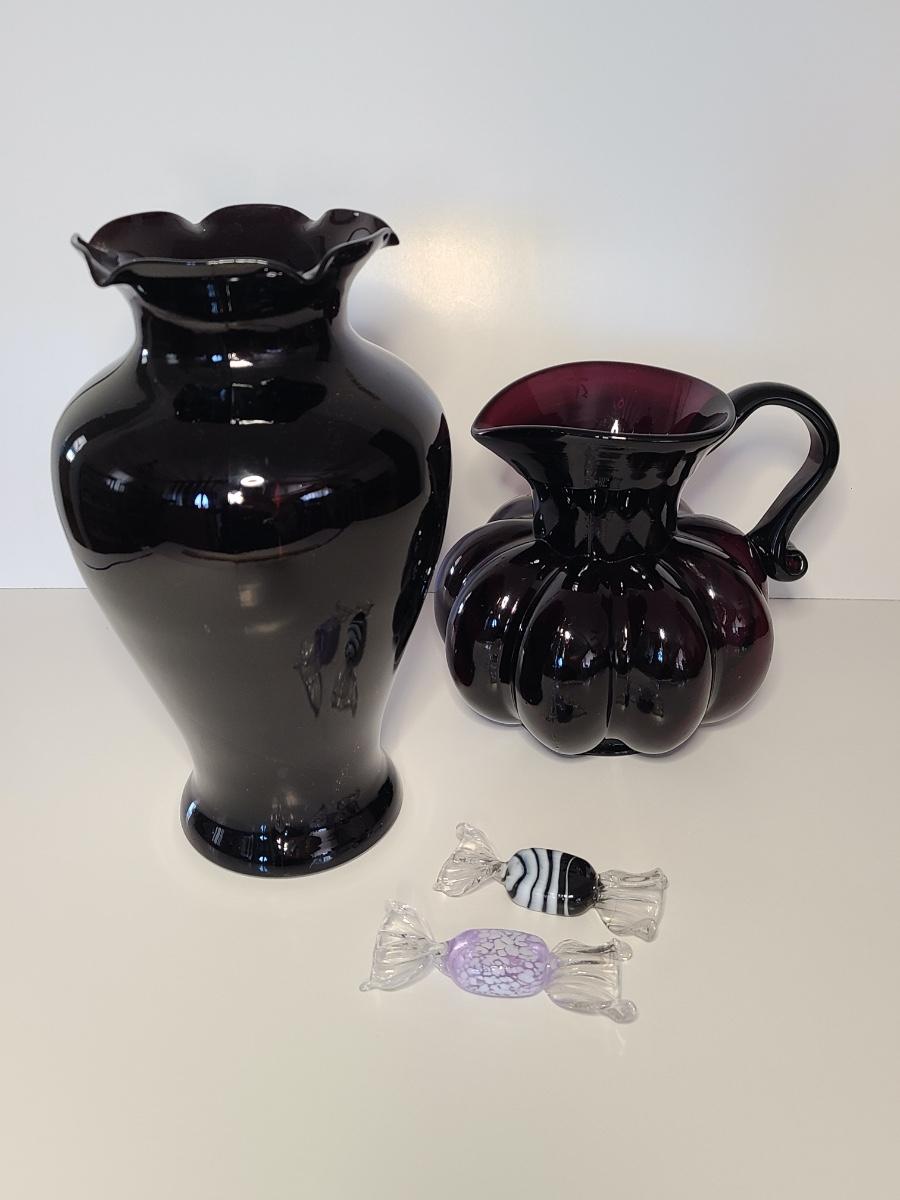 LOT 42S: Purple Clevenger Brothers Pitcher and Murano Glass Candies