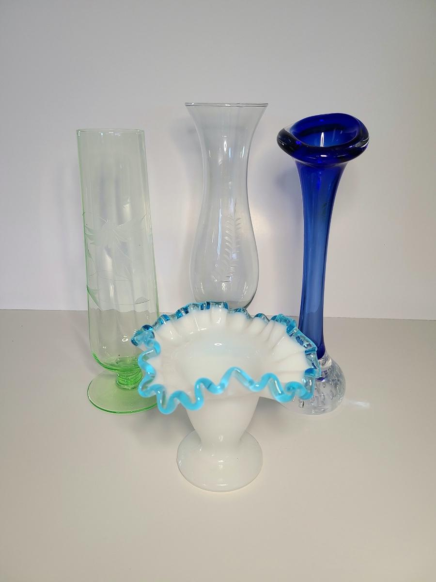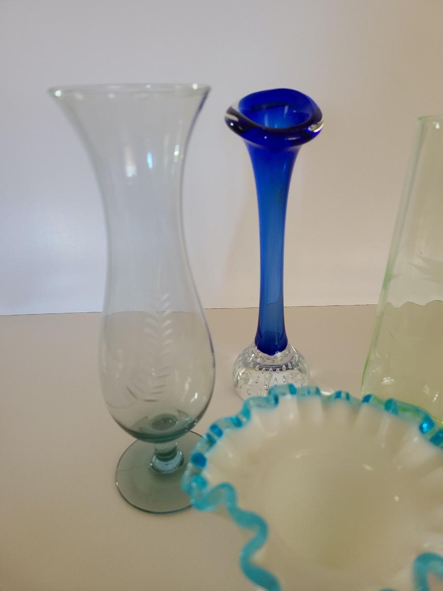 Four beautiful pieces of glass home decor. Please see all pictures as they are the best representation of the items. The pictures show condition, measurements if taken, and what is included in the lot. Due to the large amount that we photograph and the time frame, we are not always able to take measurements. All items unless noted, are pre-owned and have been used. If you purchased furniture, you must bring help. We do not allow one person to carry large furniture out on their own. Bring help, tools and a truck for the safety of our client’s homes, and your personal safety. Any damages that result to the property including walls, and floors due to moving of the furniture will be charged to the buyer. Company policy. Thank you.