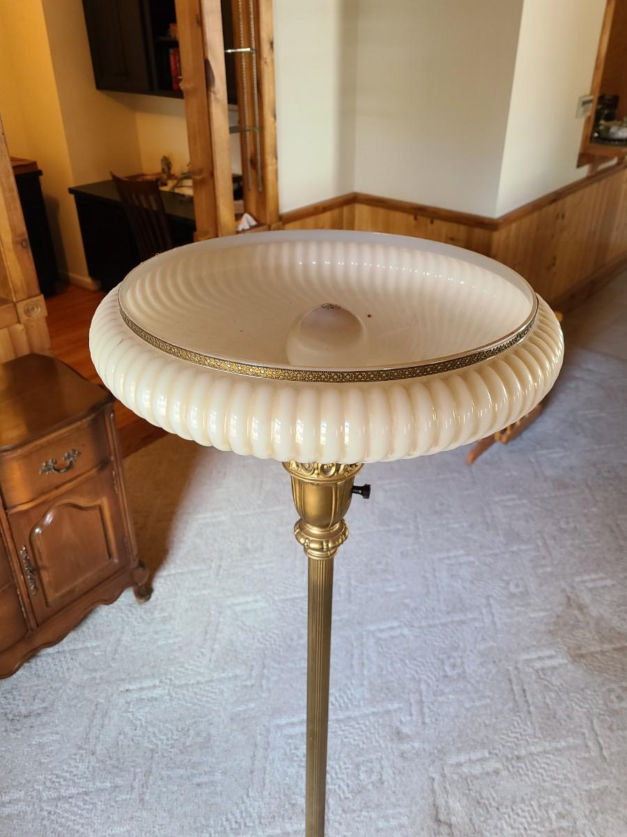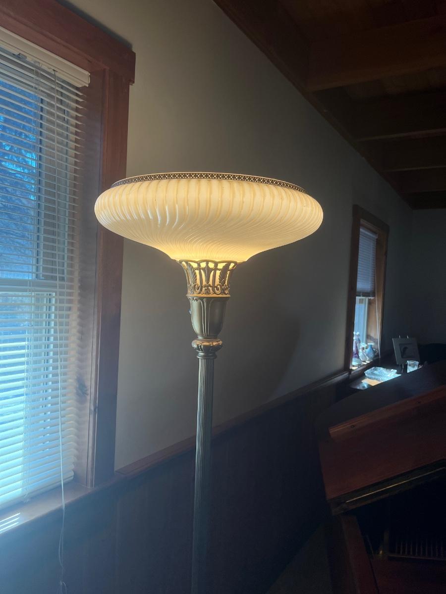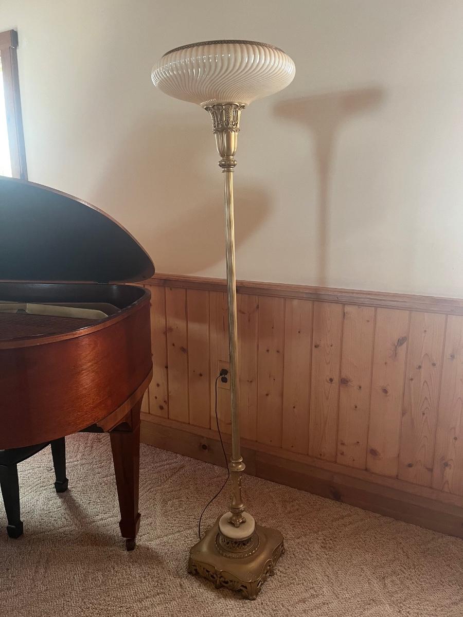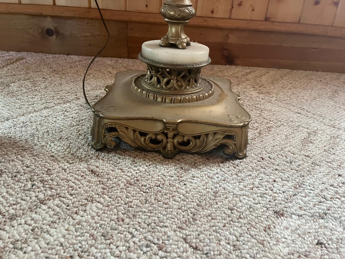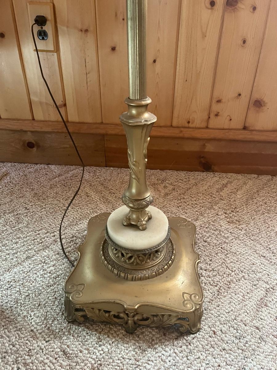 Lovely floor lamp. Does show some wear. Please see all pictures as they are the best representation of the items. The pictures show condition, measurements if taken, and what is included in the lot. Due to the large amount that we photograph and the time frame, we are not always able to take measurements. All items unless noted, are pre-owned and have been used. If you purchased furniture, you must bring help. We do not allow one person to carry large furniture out on their own. Bring help, tools and a truck for the safety of our client’s homes, and your personal safety. Any damages that result to the property including walls, and floors due to moving of the furniture will be charged to the buyer. Company policy. Thank you.