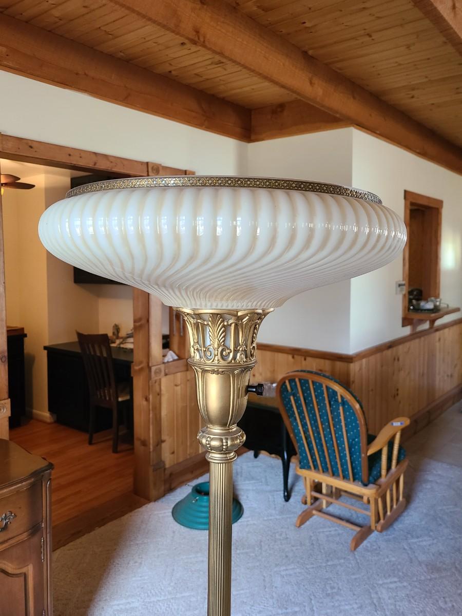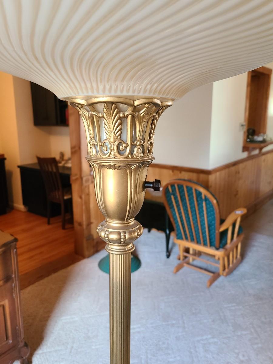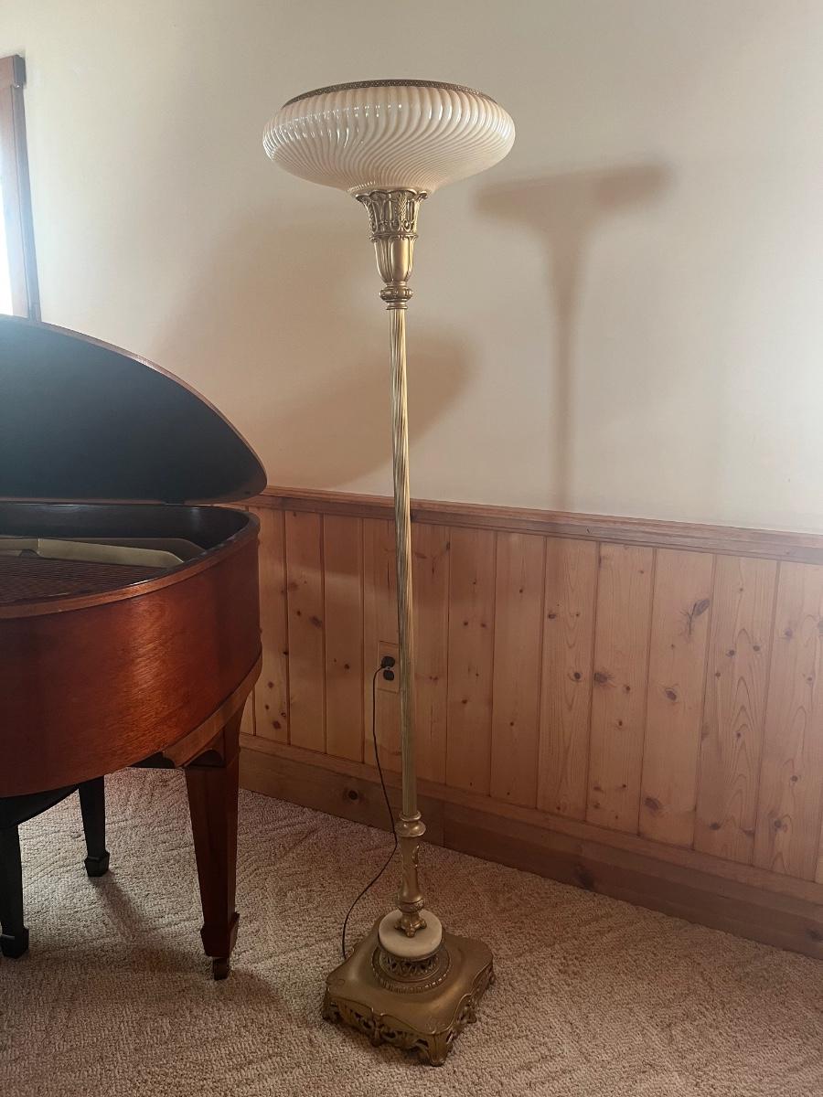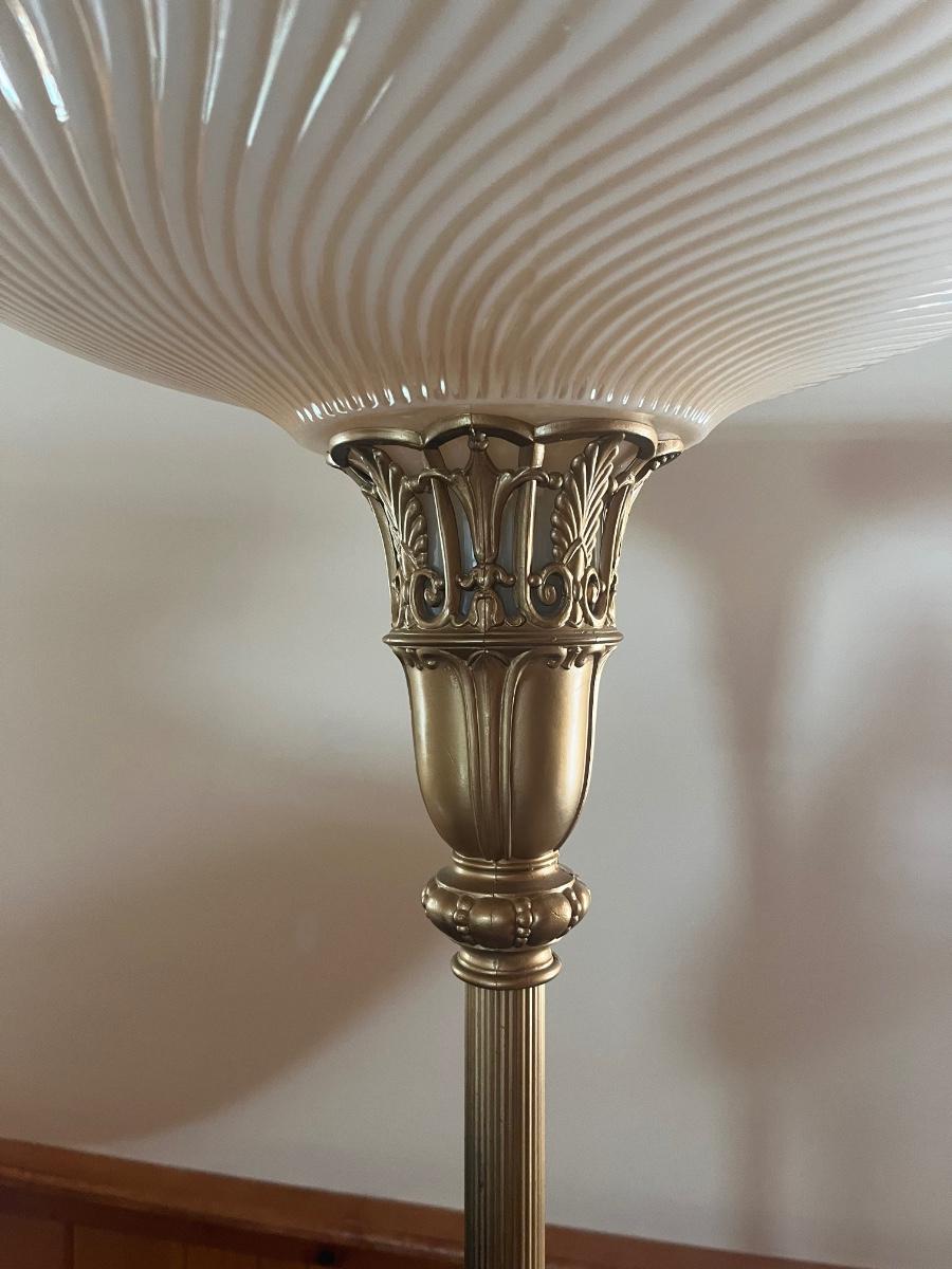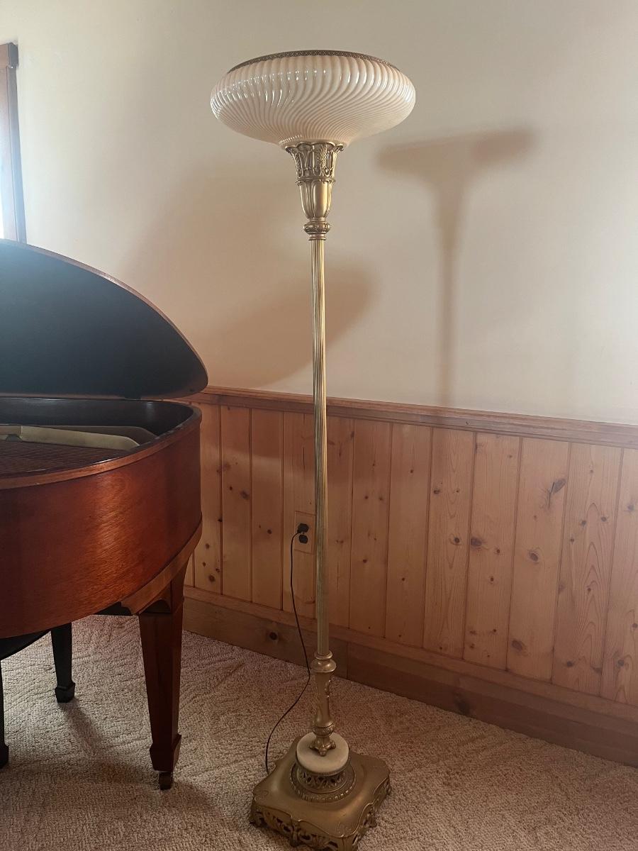 Lovely floor lamp. Does show some wear. Please see all pictures as they are the best representation of the items. The pictures show condition, measurements if taken, and what is included in the lot. Due to the large amount that we photograph and the time frame, we are not always able to take measurements. All items unless noted, are pre-owned and have been used. If you purchased furniture, you must bring help. We do not allow one person to carry large furniture out on their own. Bring help, tools and a truck for the safety of our client’s homes, and your personal safety. Any damages that result to the property including walls, and floors due to moving of the furniture will be charged to the buyer. Company policy. Thank you.