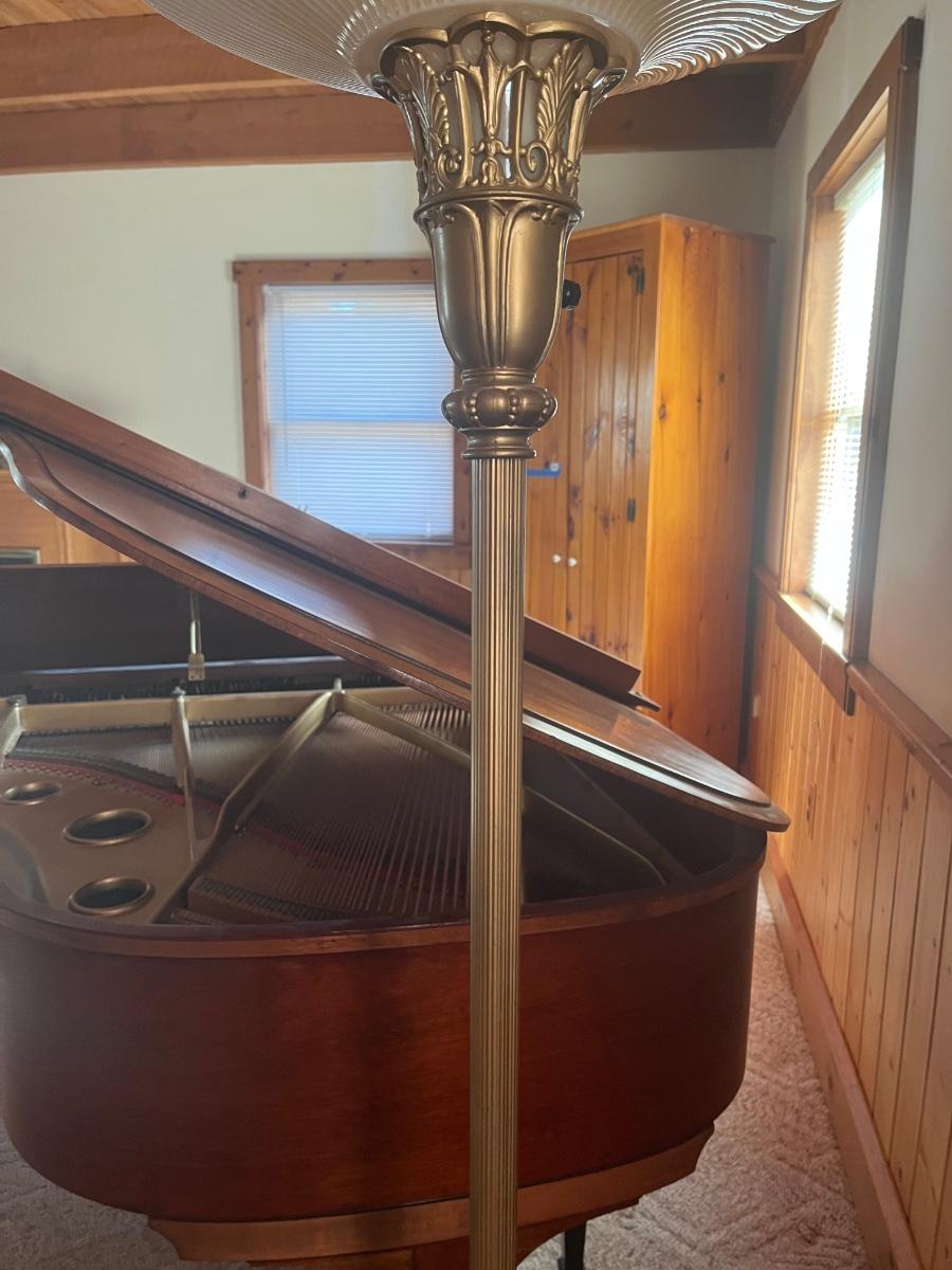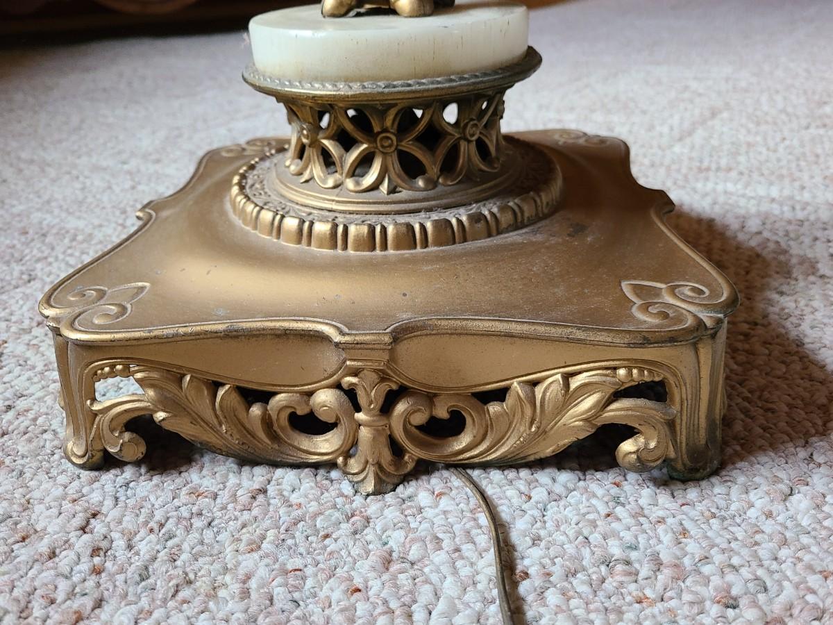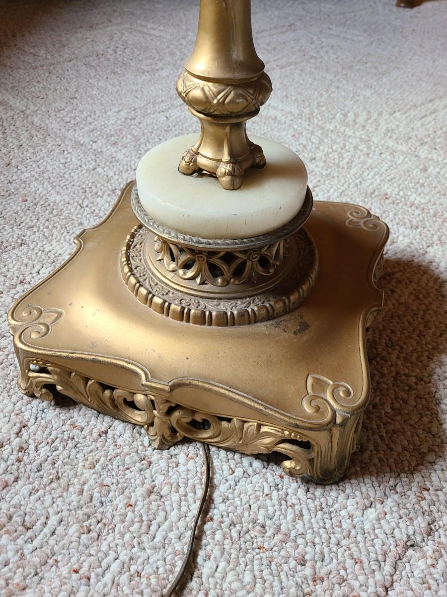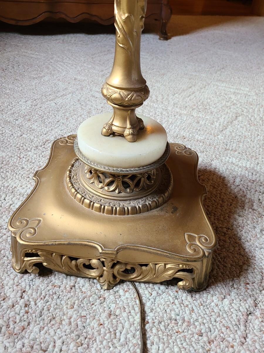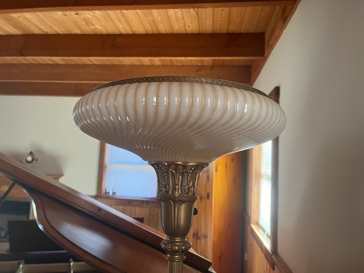 Lovely floor lamp. Does show some wear. Please see all pictures as they are the best representation of the items. The pictures show condition, measurements if taken, and what is included in the lot. Due to the large amount that we photograph and the time frame, we are not always able to take measurements. All items unless noted, are pre-owned and have been used. If you purchased furniture, you must bring help. We do not allow one person to carry large furniture out on their own. Bring help, tools and a truck for the safety of our client’s homes, and your personal safety. Any damages that result to the property including walls, and floors due to moving of the furniture will be charged to the buyer. Company policy. Thank you.