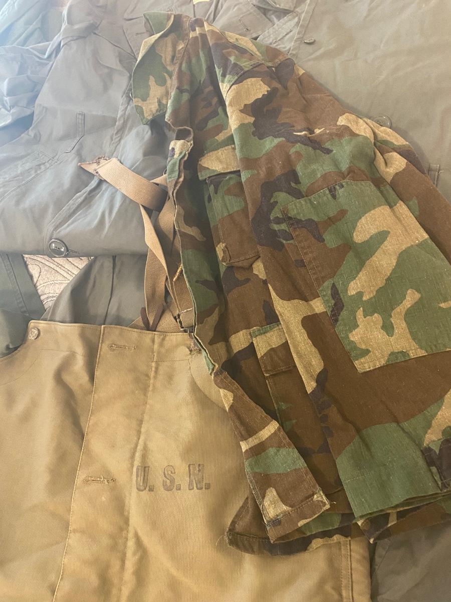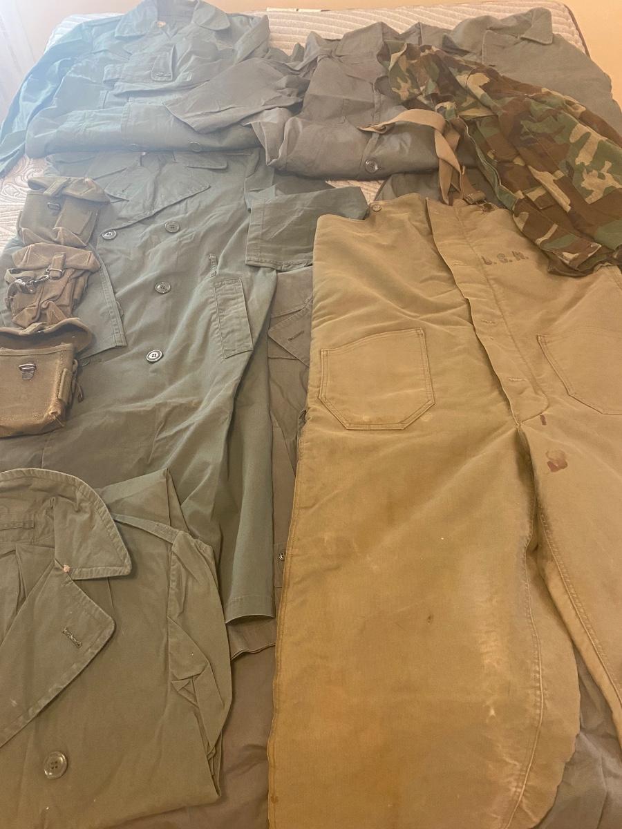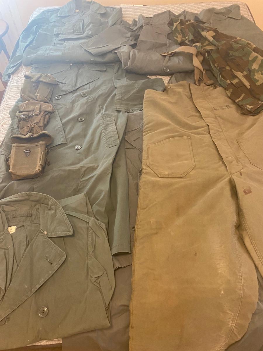 Large lot of military clothes. 10 green military jackets with belts. Navy overalls in size large. Camouflage shirt. Please see all pictures as they are the best representation of the items. The pictures show condition, measurements if taken, and what is included in the lot. Due to the large amount that we photograph and the time frame, we are not always able to take measurements. All items unless noted, are pre-owned and have been used. If you purchased furniture, you must bring help. We do not allow one person to carry large furniture out on their own. Bring help, tools and a truck for the safety of our client’s homes, and your personal safety. Any damages that result to the property including walls, and floors due to moving of the furniture will be charged to the buyer. Company policy. Thank you.