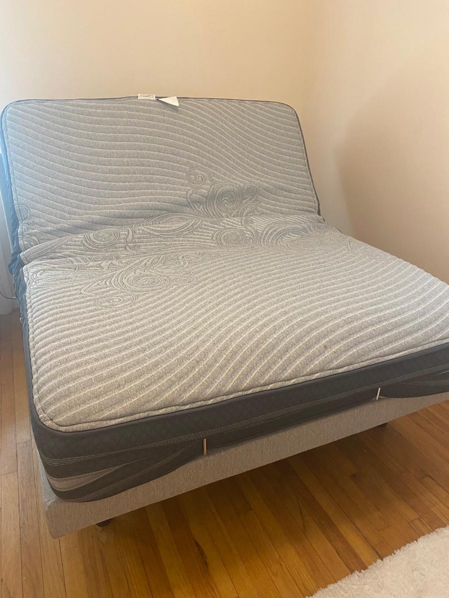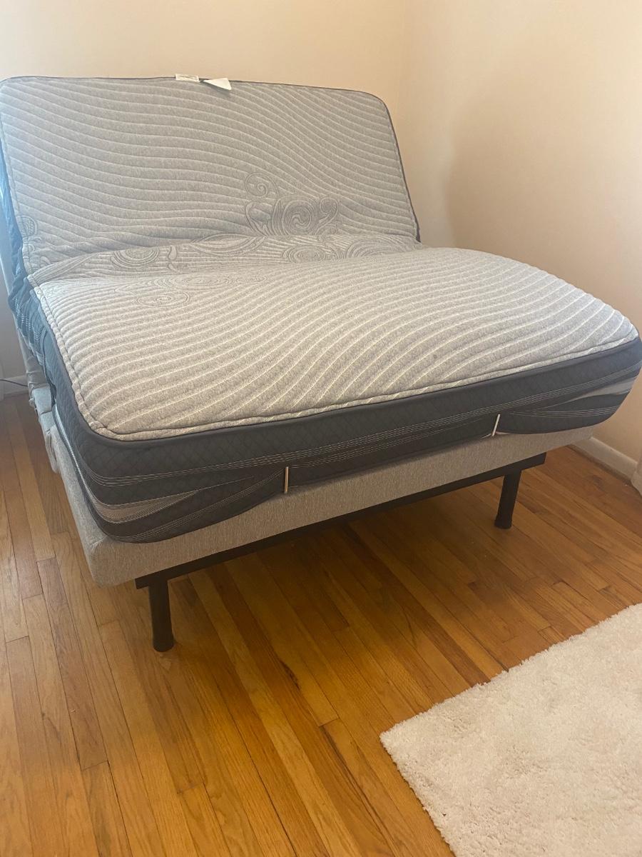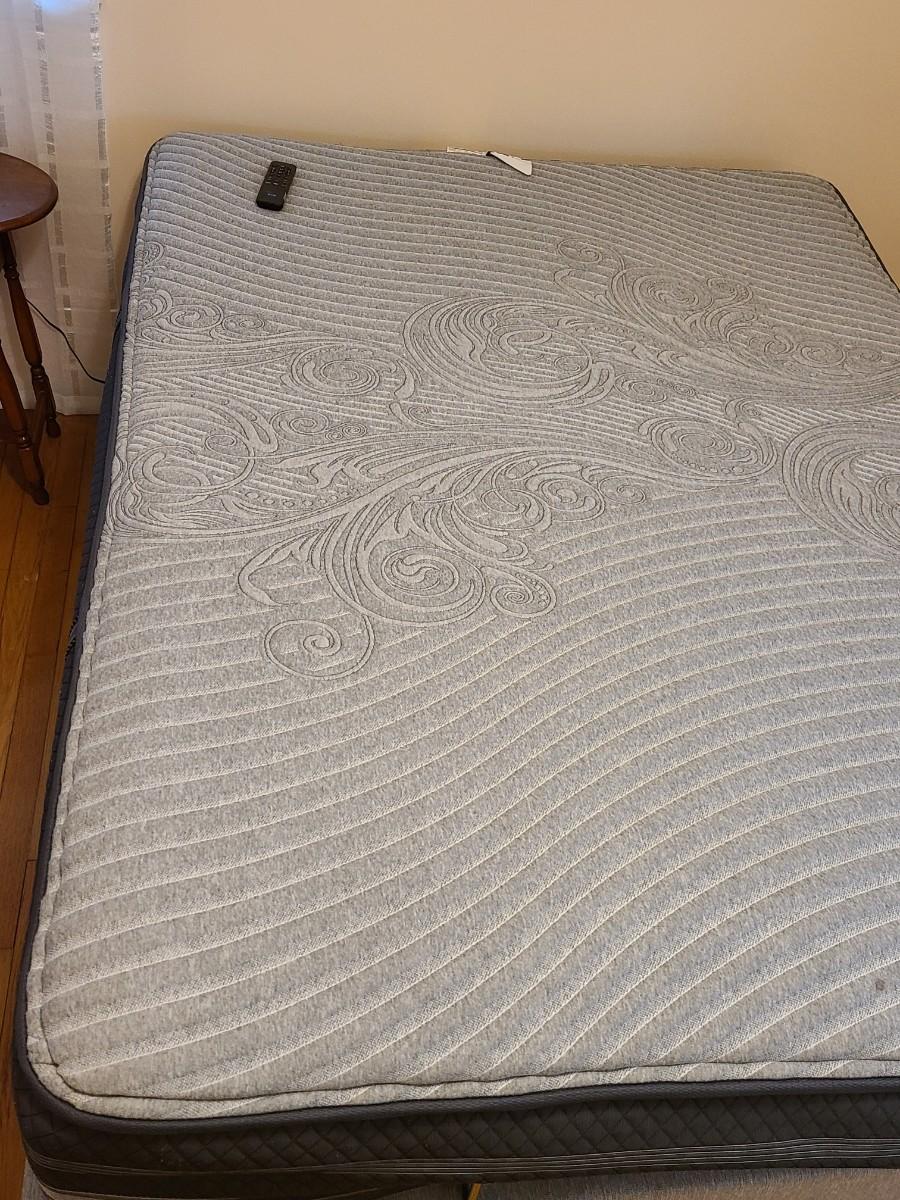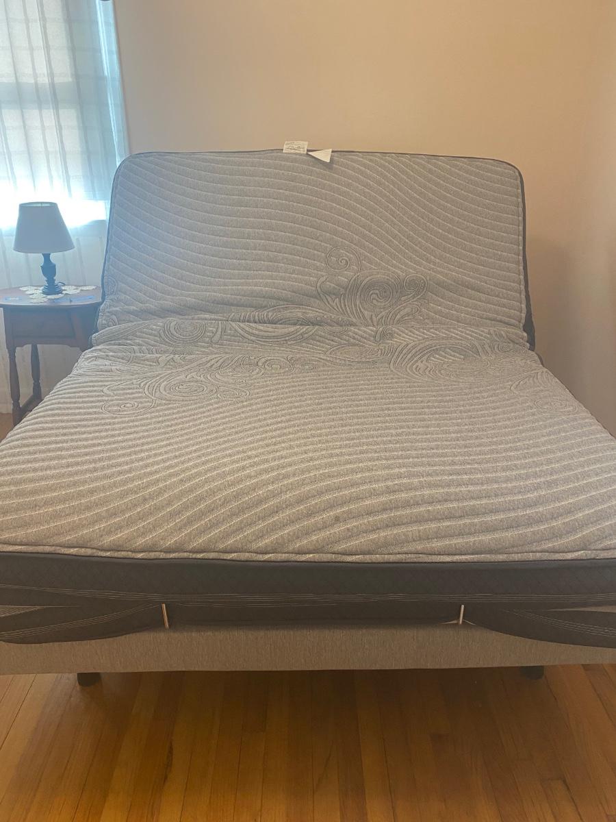 Beautyrest adjustable bed. This is a full/double size bed. 78x60x30. Comes with a remote. There is a very small stain at the foot of the bed, the size of a dime. Please see all pictures as they are the best representation of the items. The pictures show condition, measurements if taken, and what is included in the lot. Due to the large amount that we photograph and the time frame, we are not always able to take measurements. All items unless noted, are pre-owned and have been used. If you purchased furniture, you must bring help. We do not allow one person to carry large furniture out on their own. Bring help, tools and a truck for the safety of our client’s homes, and your personal safety. Any damages that result to the property including walls, and floors due to moving of the furniture will be charged to the buyer. Company policy. Thank you.