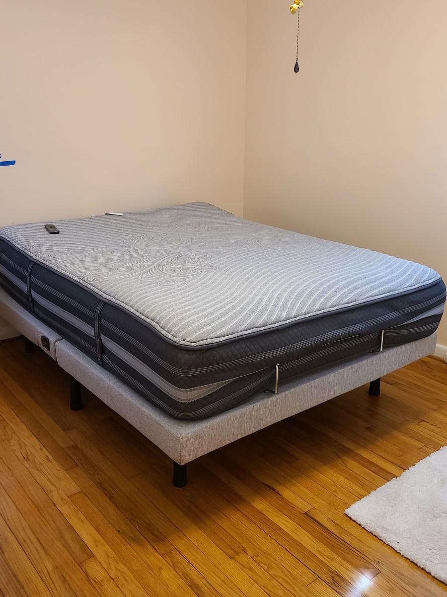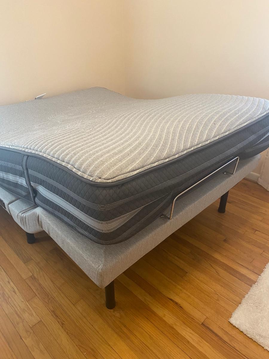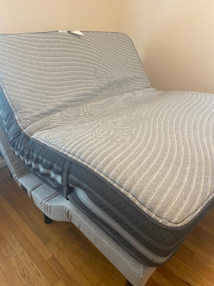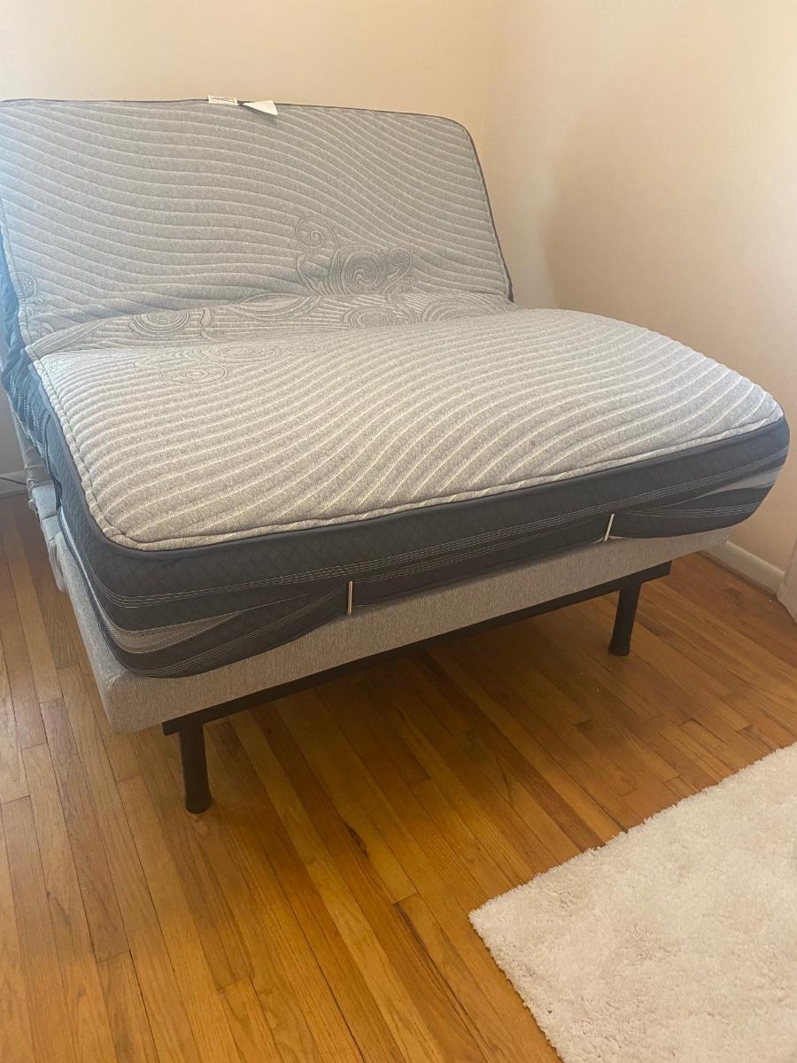 Beautyrest adjustable bed. This is a full/double size bed. 78x60x30. Comes with a remote. There is a very small stain at the foot of the bed, the size of a dime. Please see all pictures as they are the best representation of the items. The pictures show condition, measurements if taken, and what is included in the lot. Due to the large amount that we photograph and the time frame, we are not always able to take measurements. All items unless noted, are pre-owned and have been used. If you purchased furniture, you must bring help. We do not allow one person to carry large furniture out on their own. Bring help, tools and a truck for the safety of our client’s homes, and your personal safety. Any damages that result to the property including walls, and floors due to moving of the furniture will be charged to the buyer. Company policy. Thank you.
