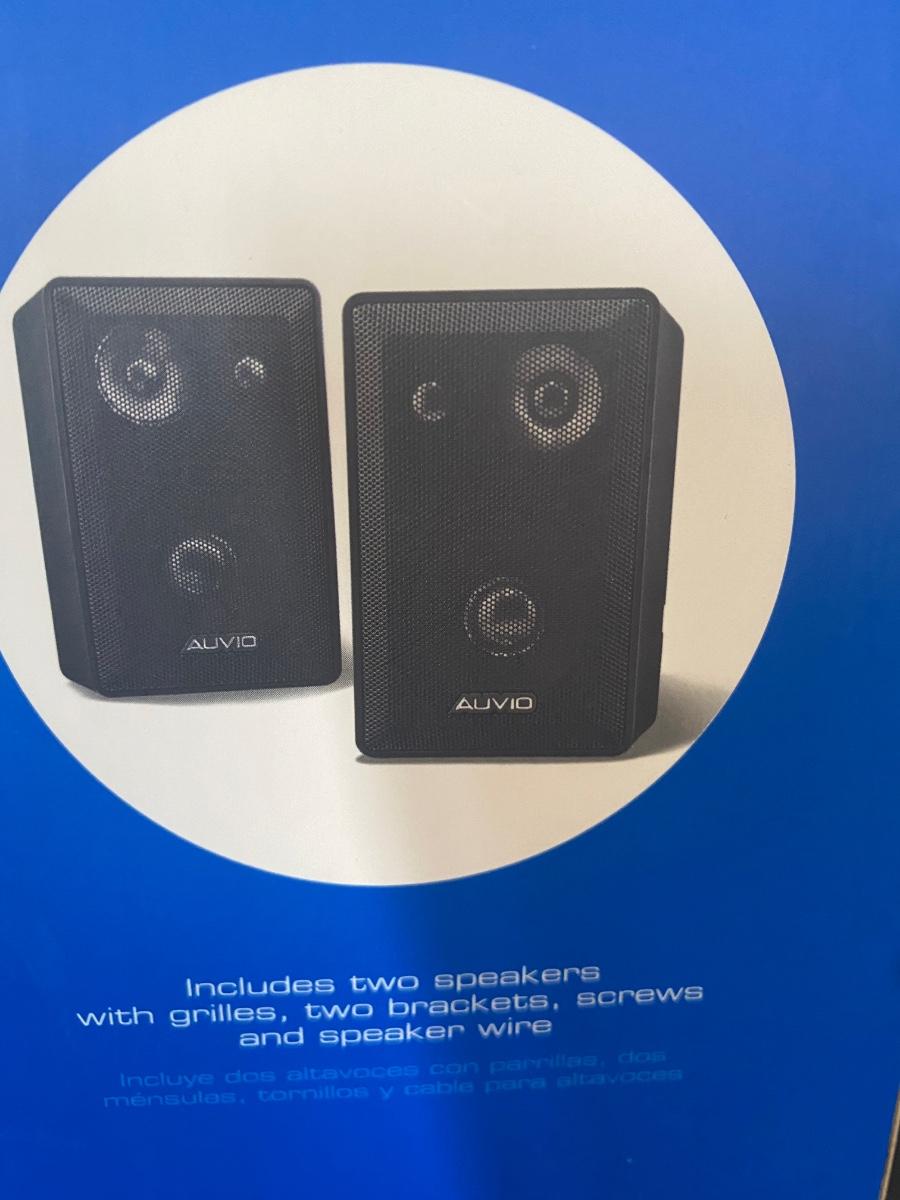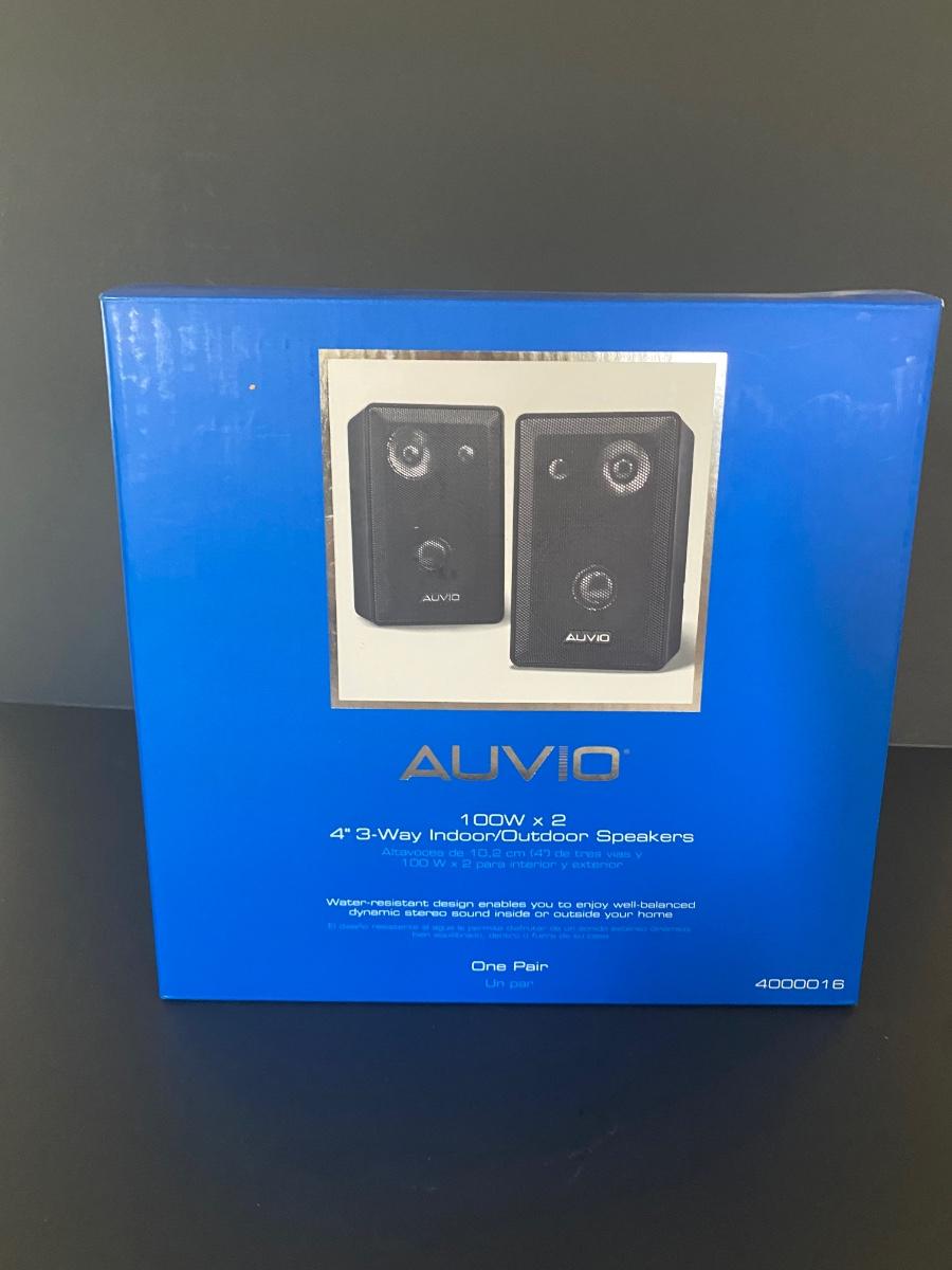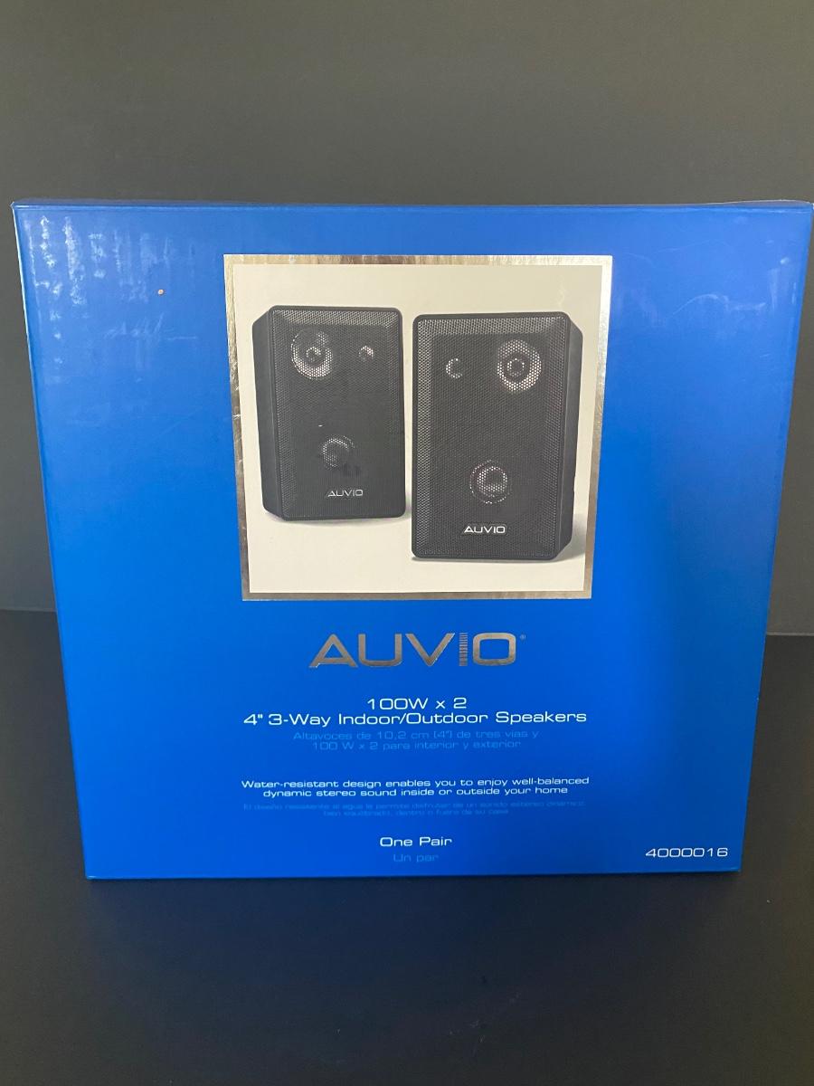New in box. Two indoor/ outdoor speakers by Auvio. Please see all pictures as they are the best representation of the items. The pictures show condition, measurements if taken, and what is included in the lot. Due to the large amount that we photograph and the time frame, we are not always able to take measurements. All items unless noted, are pre-owned and have been used. If you purchased furniture, you must bring help. We do not allow one person to carry large furniture out on their own. Bring help, tools and a truck for the safety of our client’s homes, and your personal safety. Any damages that result to the property including walls, and floors due to moving of the furniture will be charged to the buyer. Company policy. Thank you.