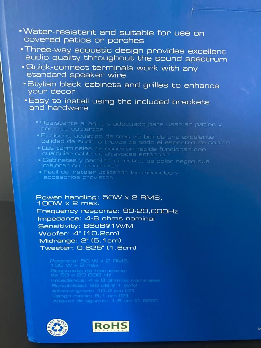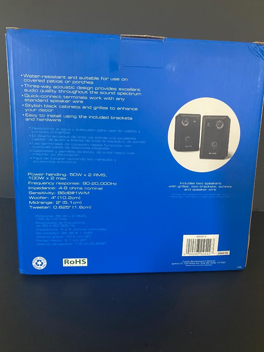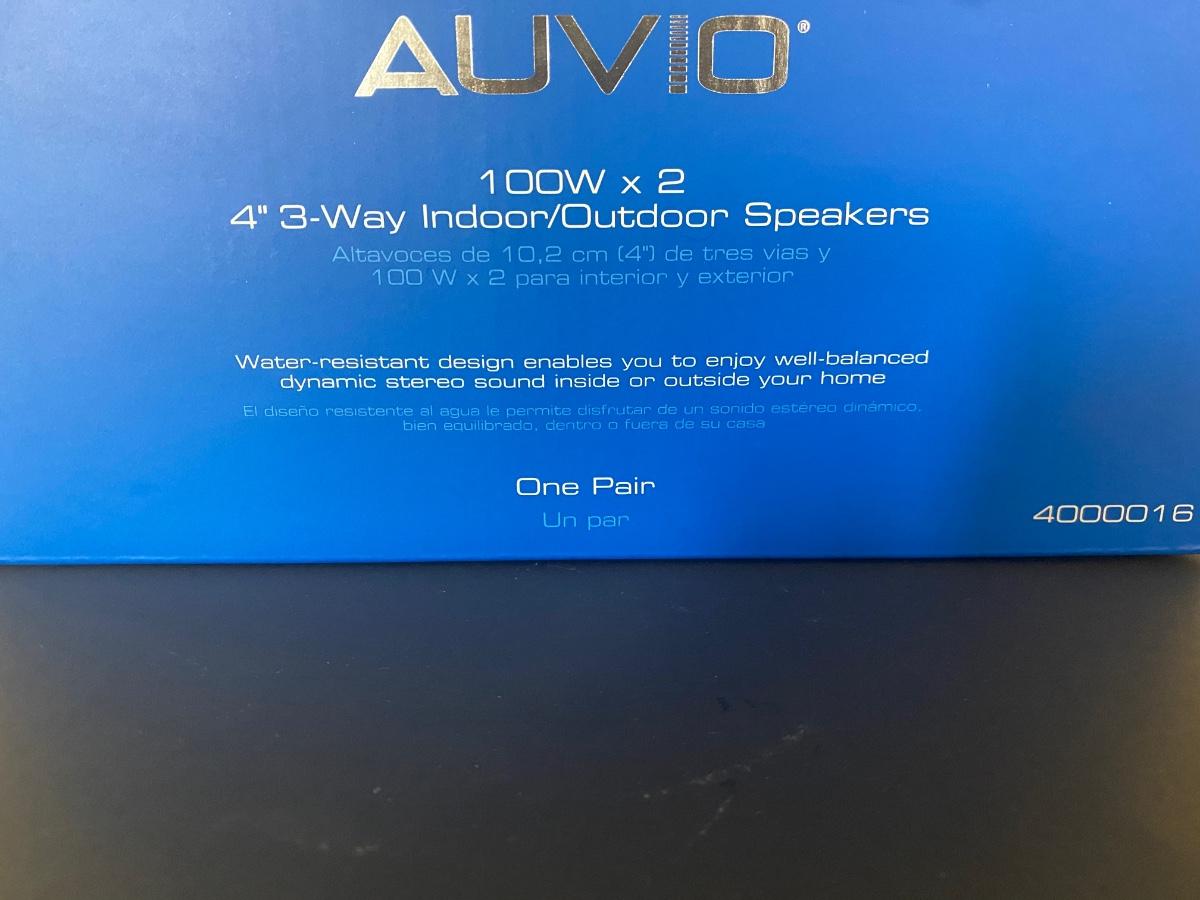 New in box. Two indoor/ outdoor speakers by Auvio. Please see all pictures as they are the best representation of the items. The pictures show condition, measurements if taken, and what is included in the lot. Due to the large amount that we photograph and the time frame, we are not always able to take measurements. All items unless noted, are pre-owned and have been used. If you purchased furniture, you must bring help. We do not allow one person to carry large furniture out on their own. Bring help, tools and a truck for the safety of our client’s homes, and your personal safety. Any damages that result to the property including walls, and floors due to moving of the furniture will be charged to the buyer. Company policy. Thank you.