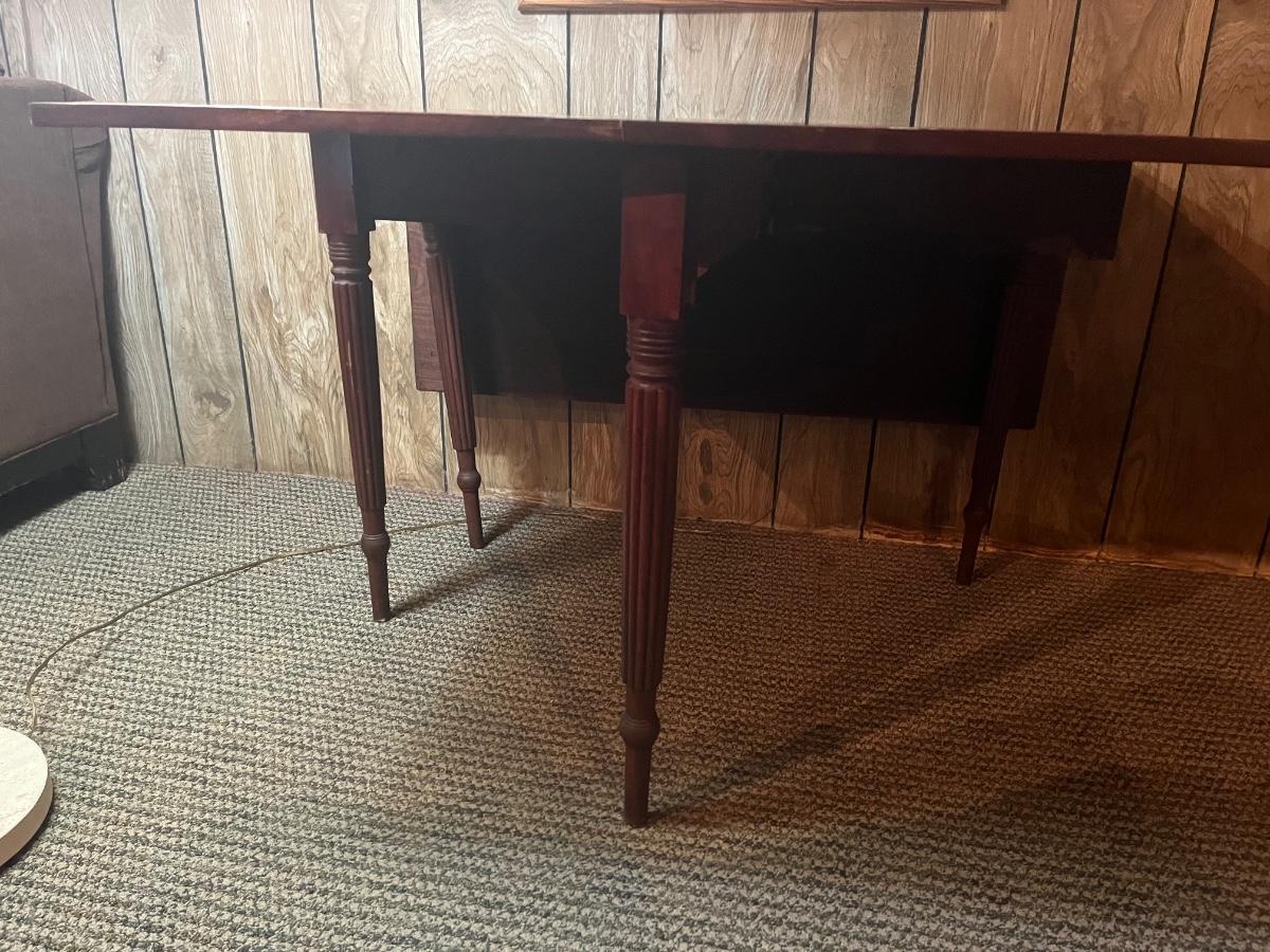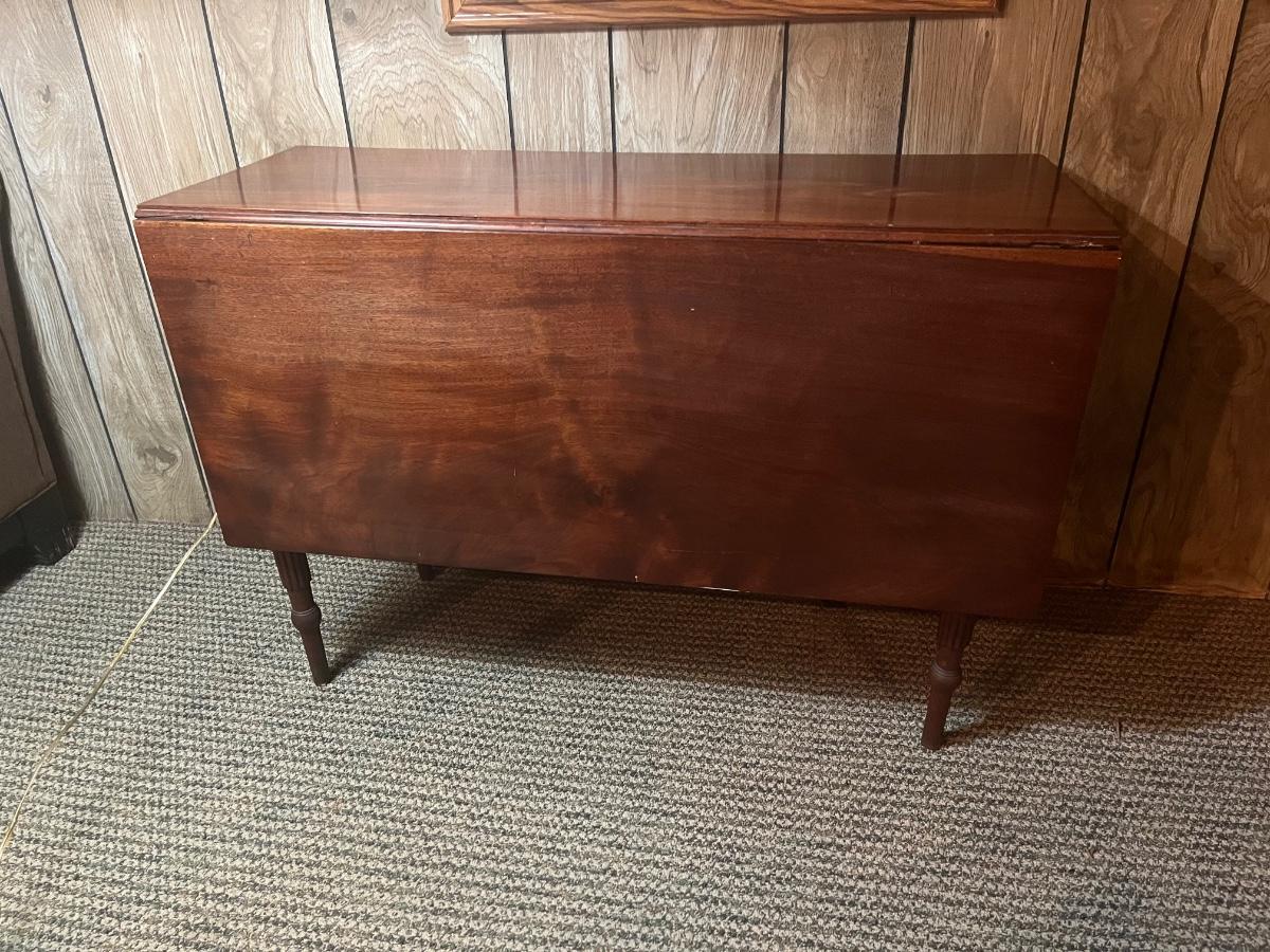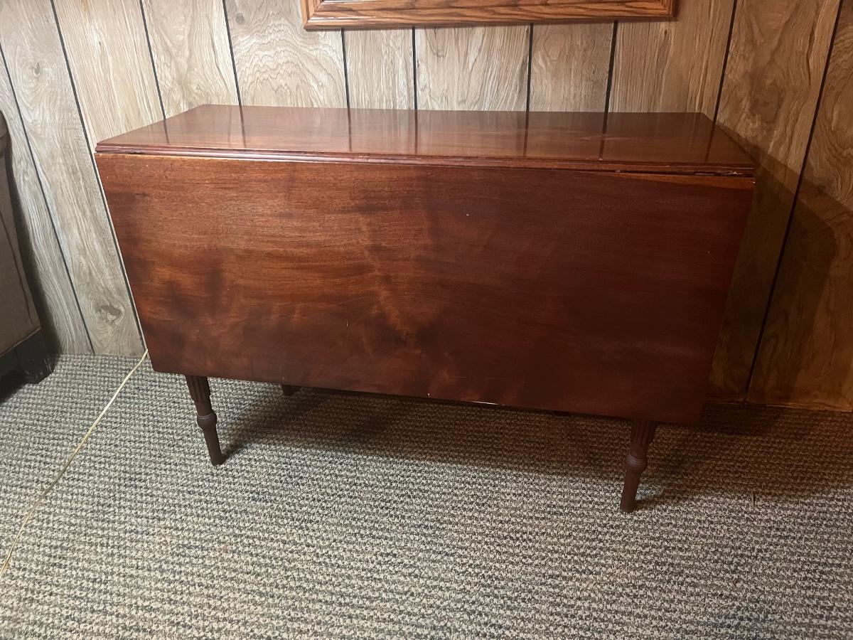 41"x17"x29" with sides down, 41"x17"x50" with sides up. Table is in the basement of the home, winnig bidder is responsible for moving. Please see all pictures as they are the best representation of the items. The pictures show condition, measurements if taken, and what is included in the lot. Due to the large amount that we photograph and the time frame, we are not always able to take measurements. All items unless noted, are pre-owned and have been used. If you purchased furniture, you must bring help. We do not allow one person to carry large furniture out on their own. Bring help, tools and a truck for the safety of our client’s homes, and your personal safety. Any damages that result to the property including walls, and floors due to moving of the furniture will be charged to the buyer. Company policy. Thank you.