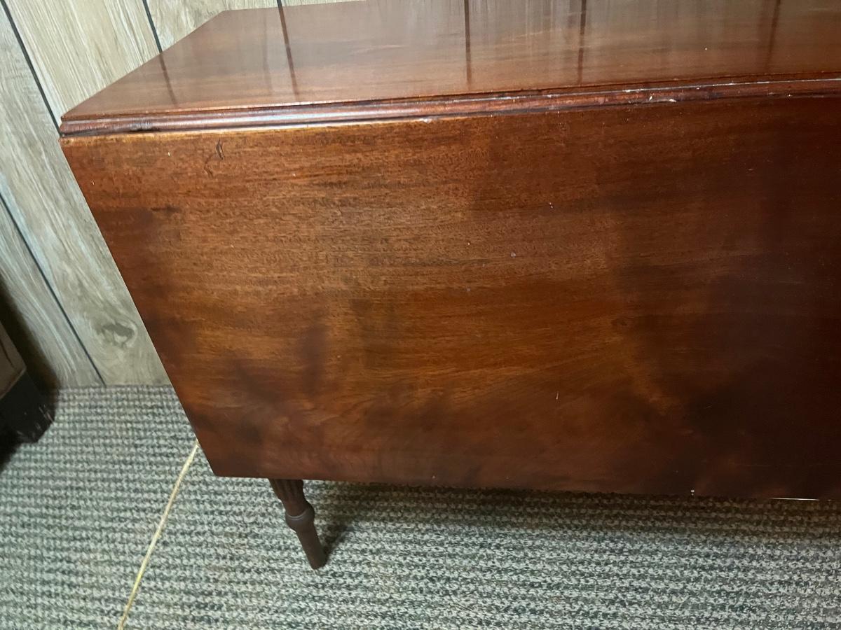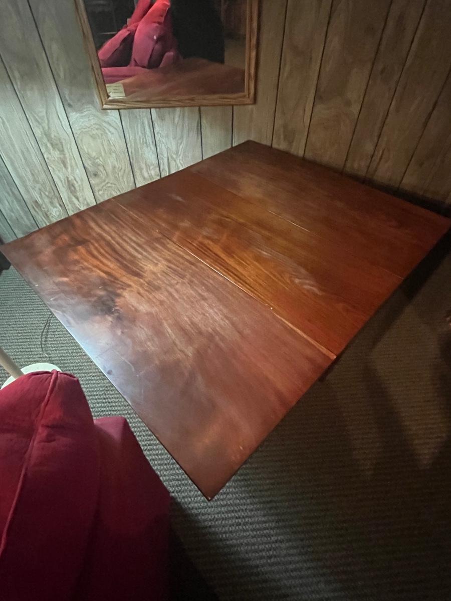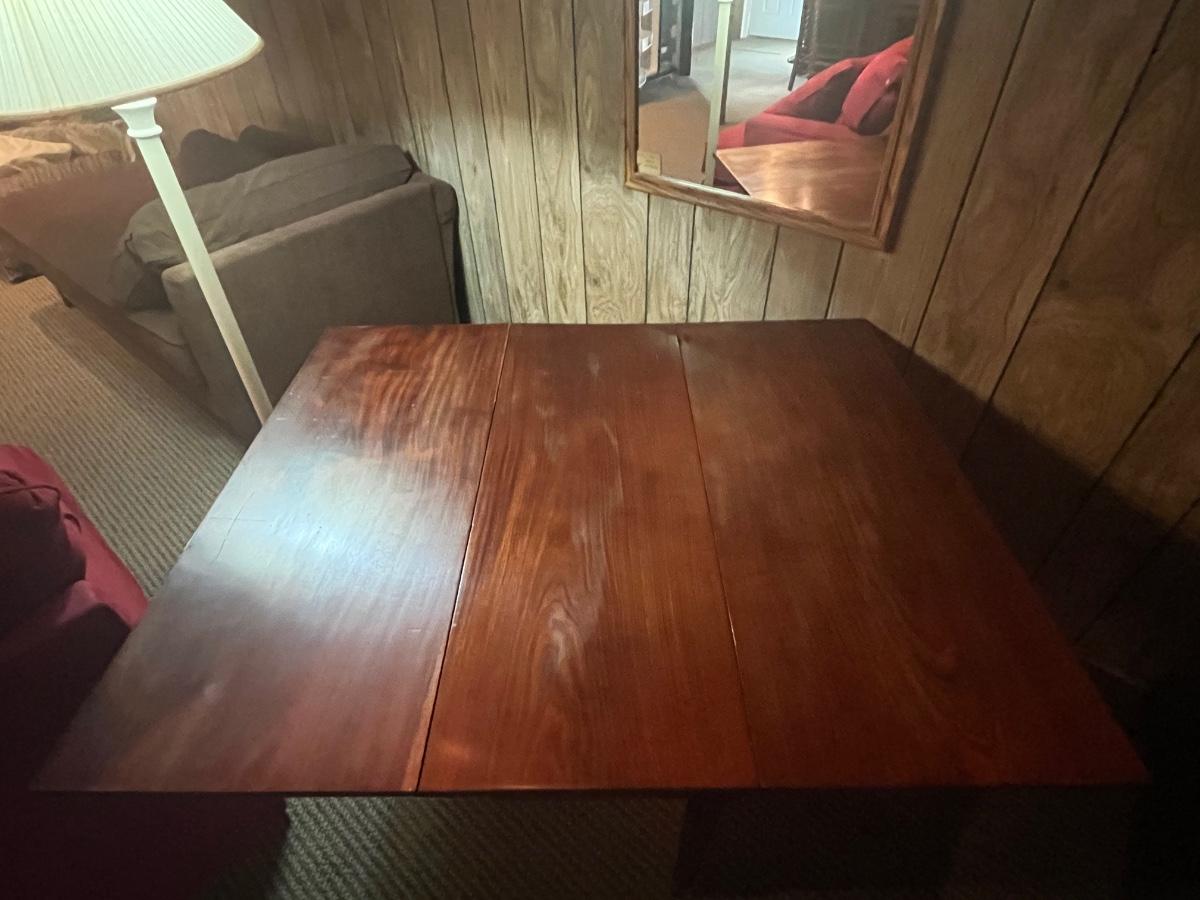 41"x17"x29" with sides down, 41"x17"x50" with sides up. Table is in the basement of the home, winnig bidder is responsible for moving. Please see all pictures as they are the best representation of the items. The pictures show condition, measurements if taken, and what is included in the lot. Due to the large amount that we photograph and the time frame, we are not always able to take measurements. All items unless noted, are pre-owned and have been used. If you purchased furniture, you must bring help. We do not allow one person to carry large furniture out on their own. Bring help, tools and a truck for the safety of our client’s homes, and your personal safety. Any damages that result to the property including walls, and floors due to moving of the furniture will be charged to the buyer. Company policy. Thank you.