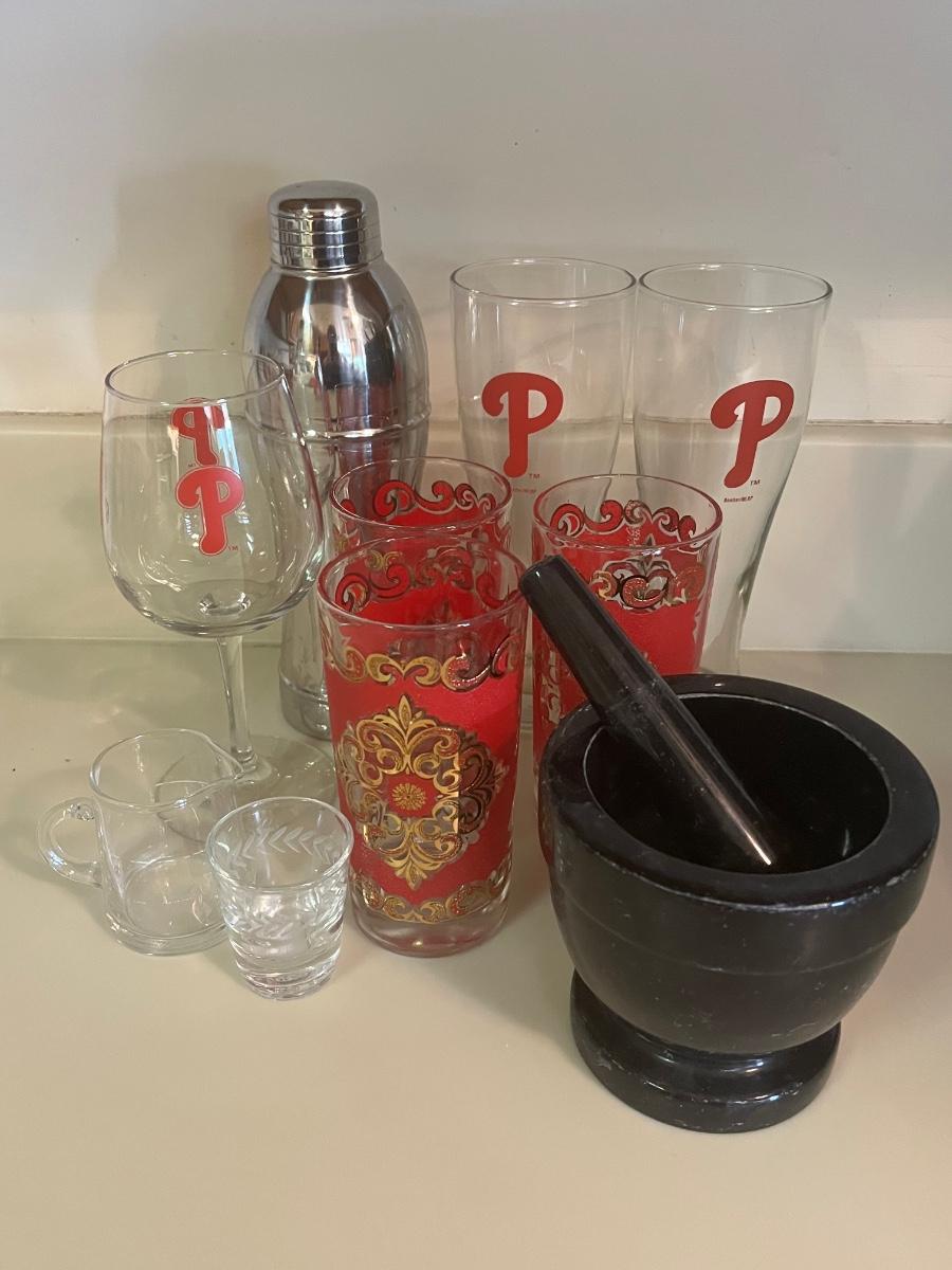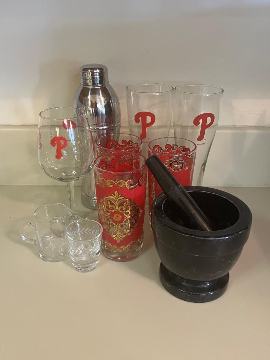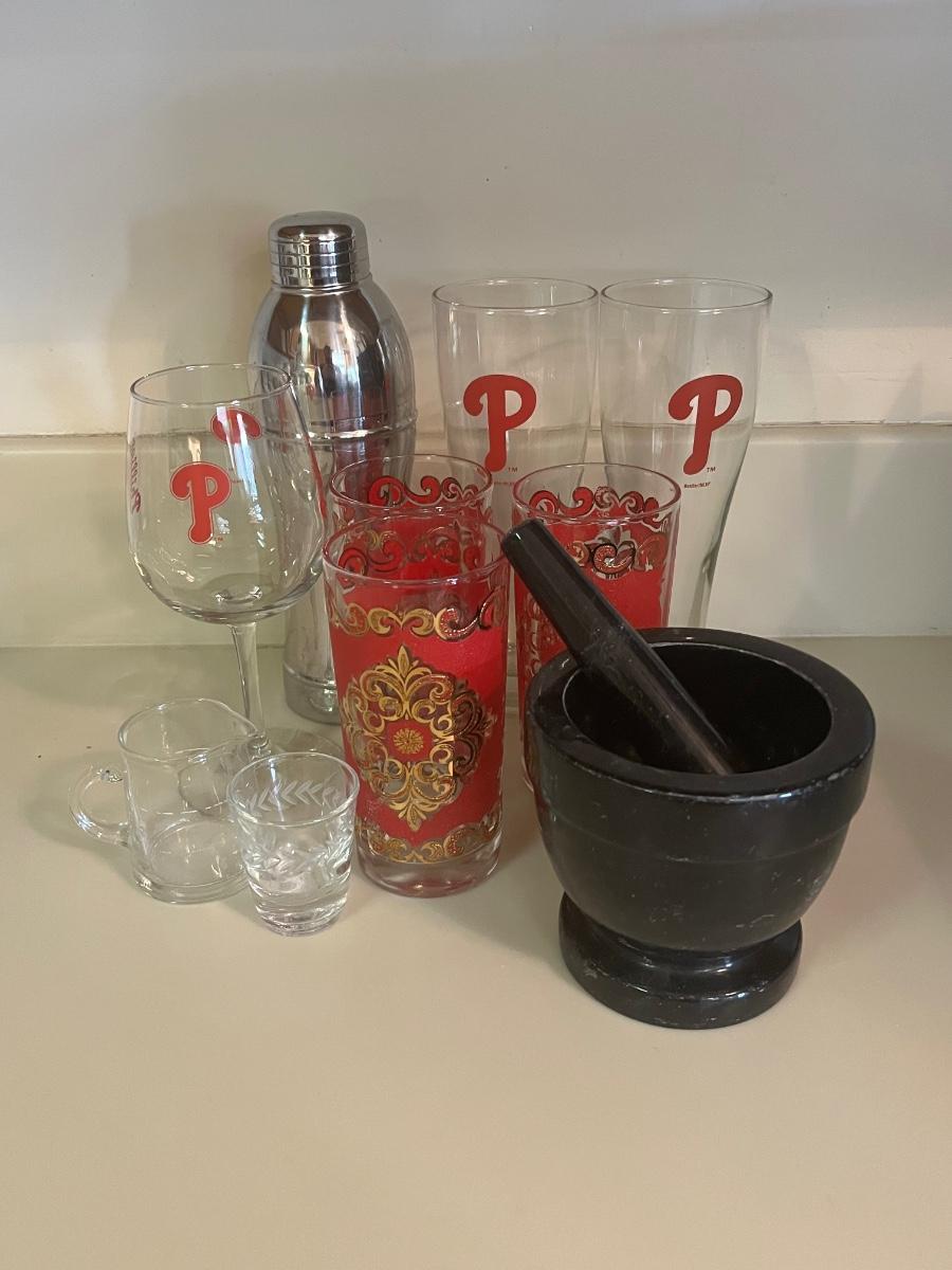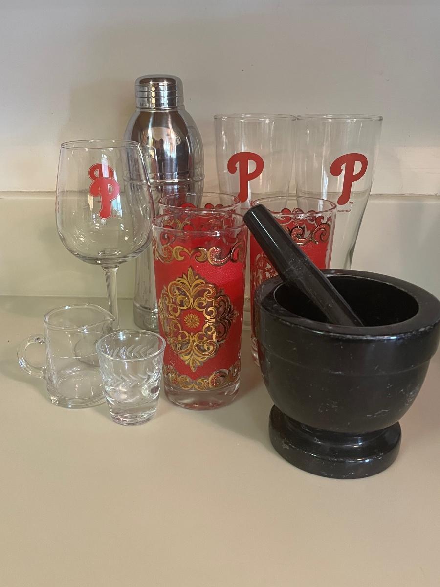 LOT 113C: Vintage Bar Glasses, Mortar & Pestle and More