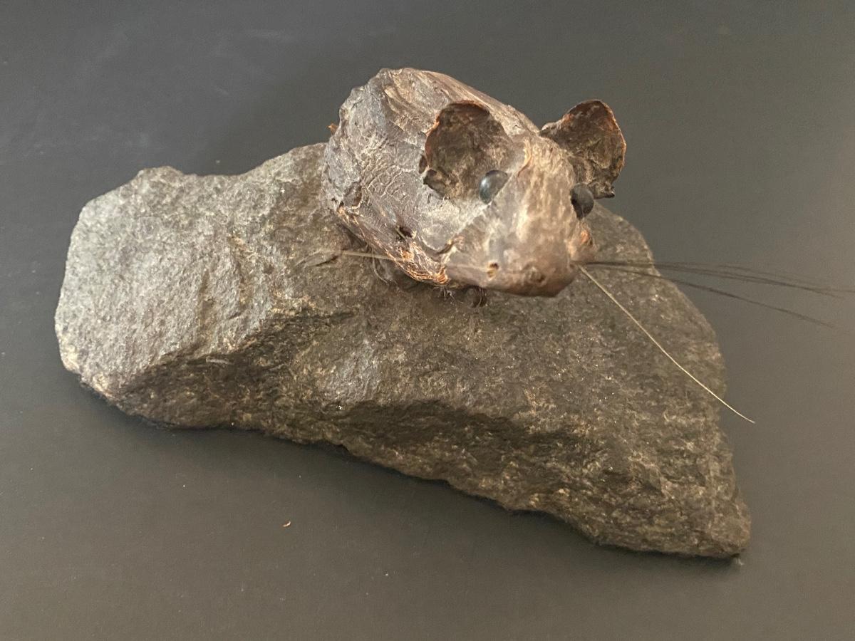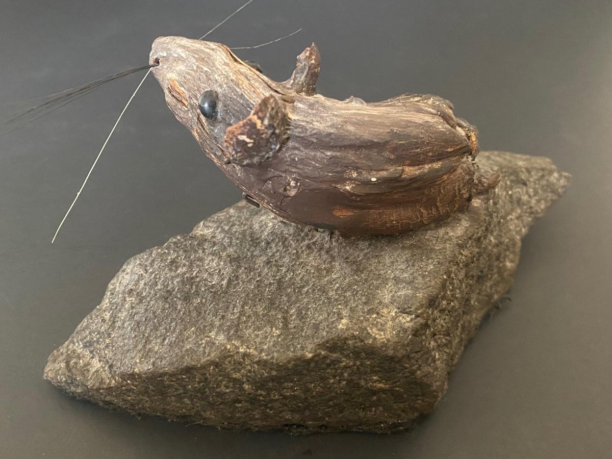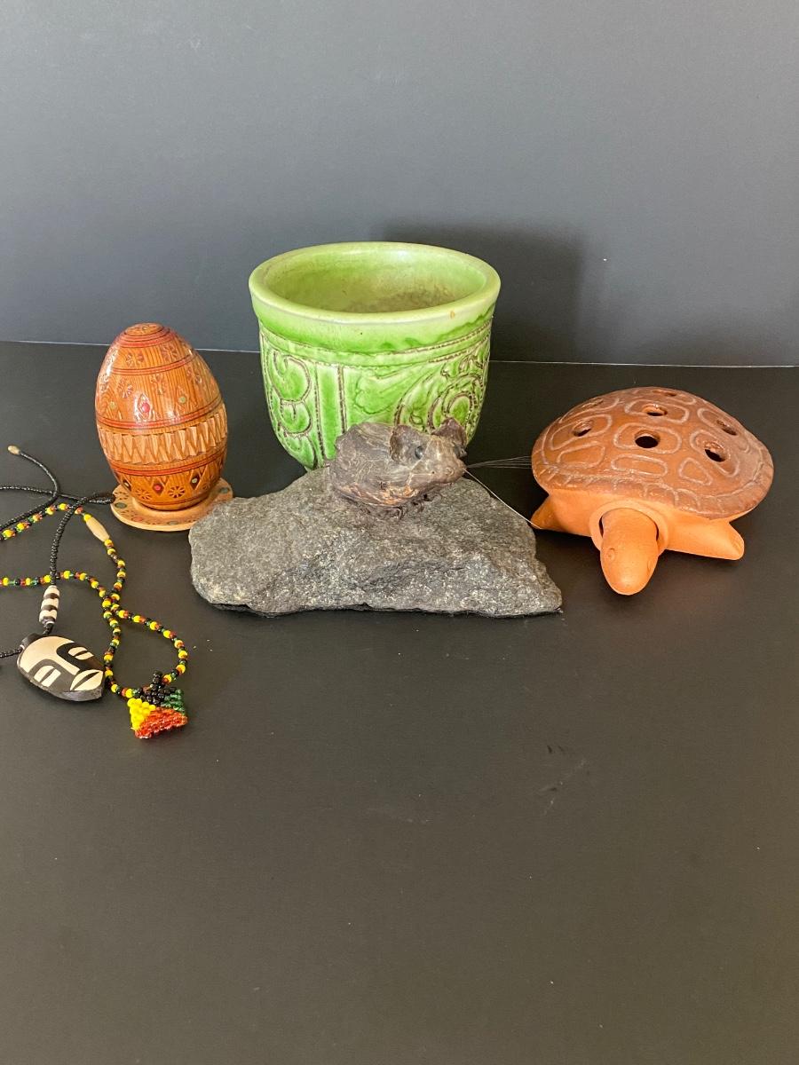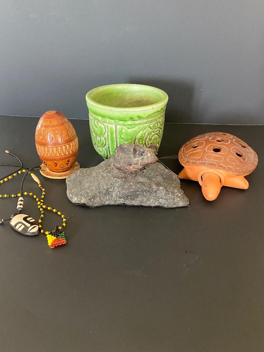 LOT 126G: Vintage MCM Wood Carved Mouse On Stone, Planter, Necklace From Africa and More