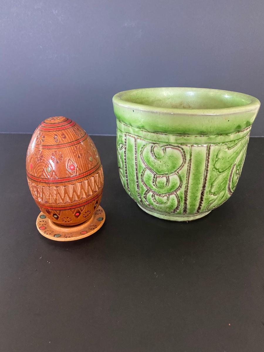 Stone mouse, two planters, wood collectors egg and beaded necklaces. Please see all pictures as they are the best representation of the items. The pictures show condition, measurements if taken, and what is included in the lot. Due to the large amount that we photograph and the time frame, we are not always able to take measurements. All items unless noted, are pre-owned and have been used. If you purchased furniture, you must bring help. We do not allow one person to carry large furniture out on their own. Bring help, tools and a truck for the safety of our client’s homes, and your personal safety. Any damages that result to the property including walls, and floors due to moving of the furniture will be charged to the buyer. Company policy. Thank you.