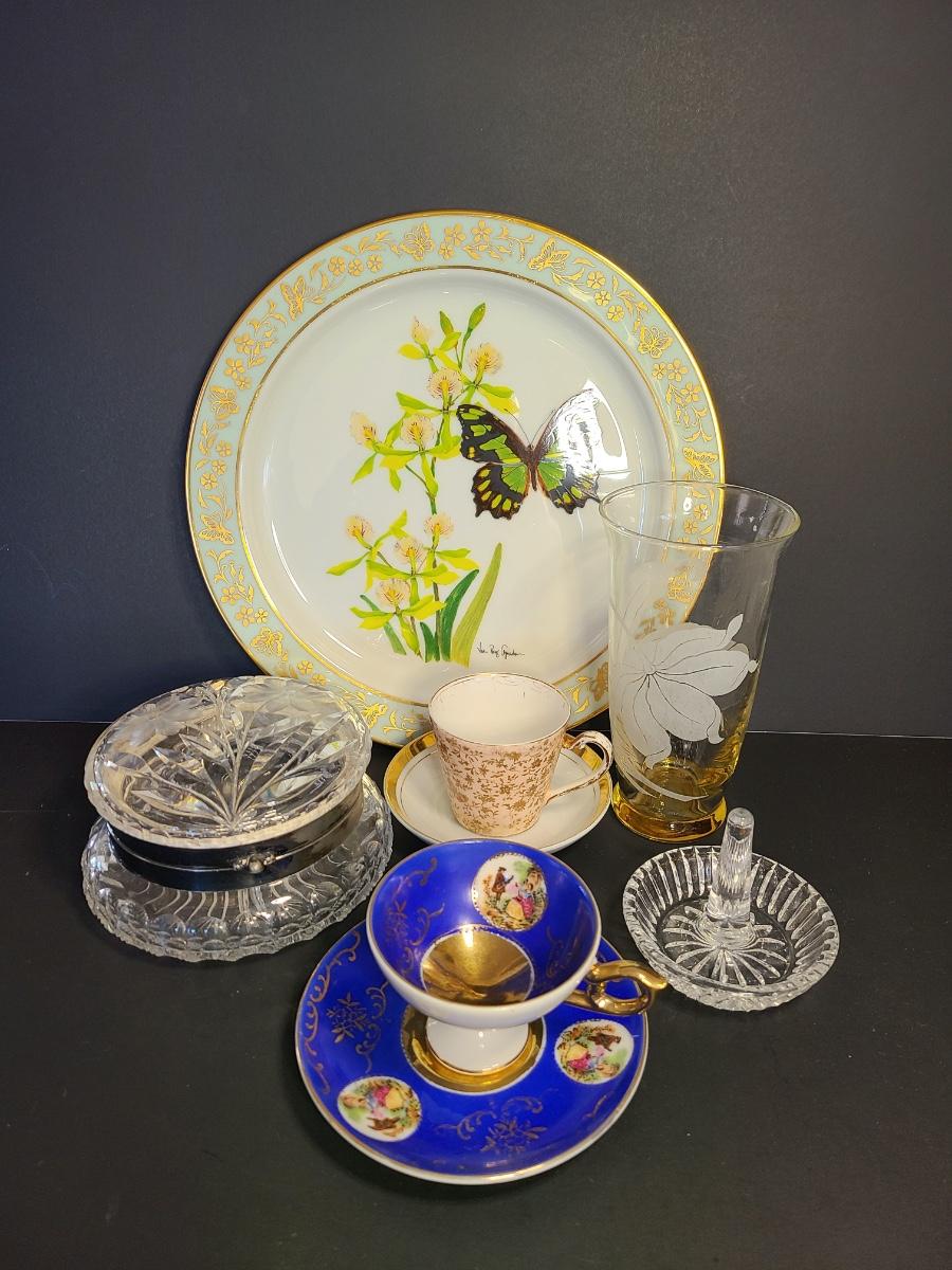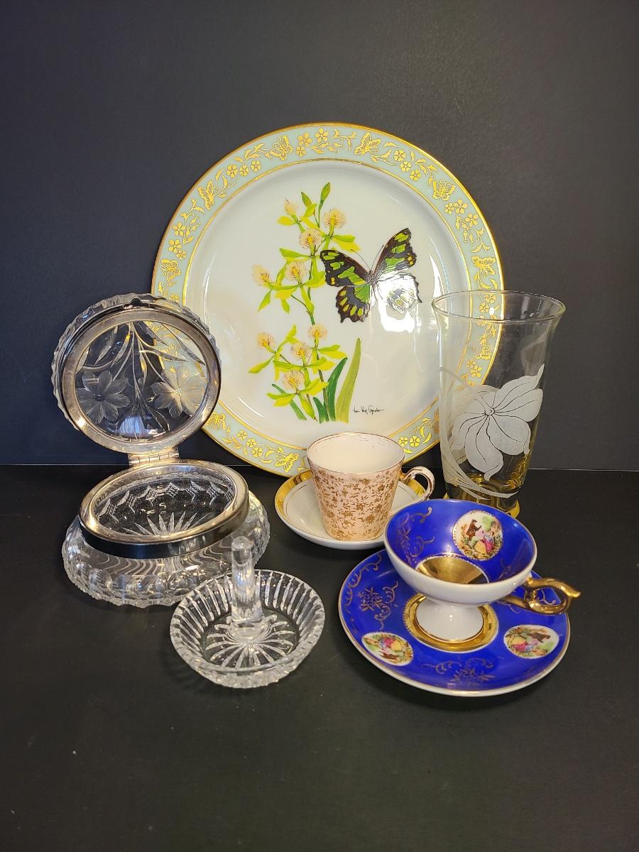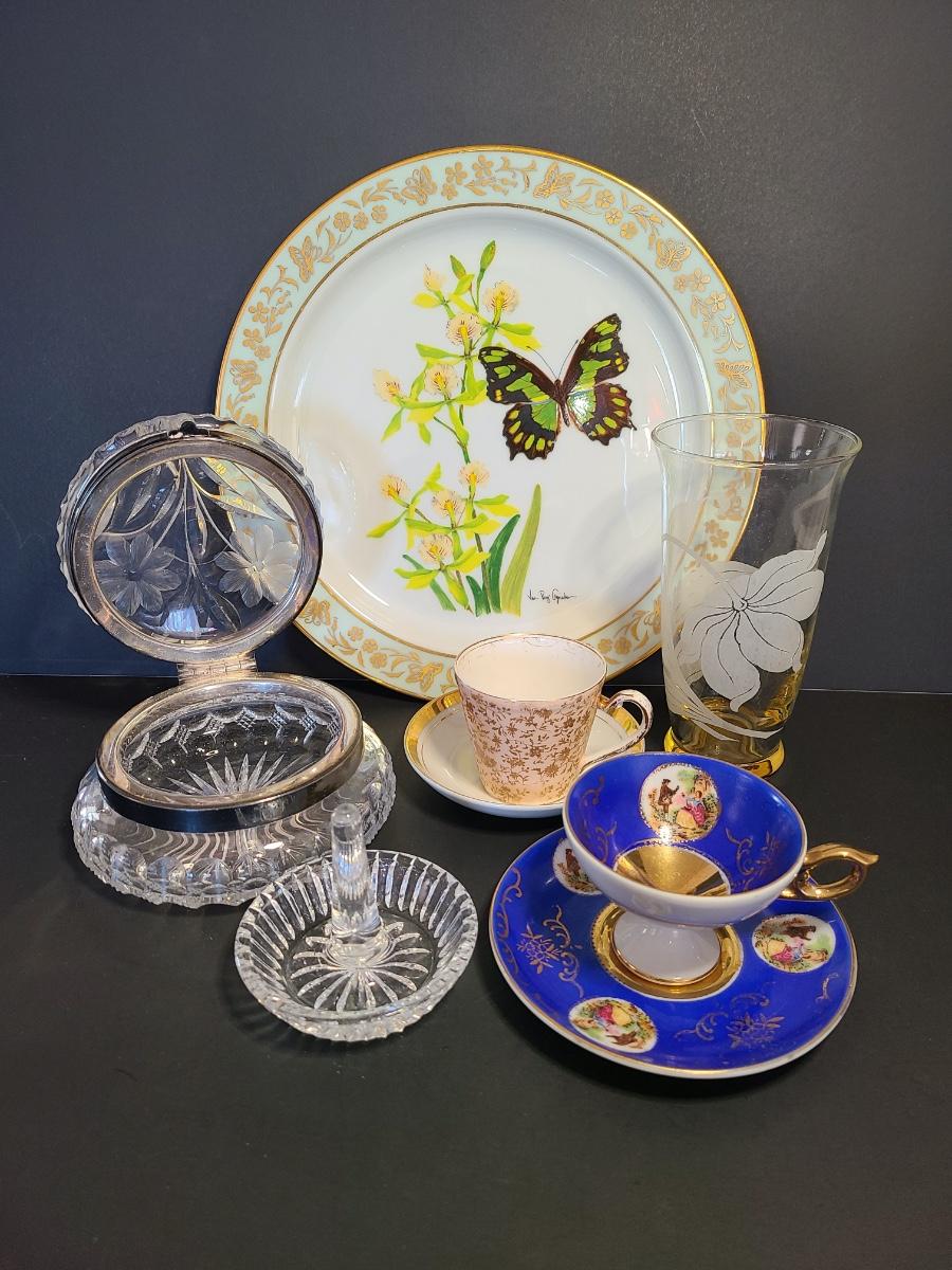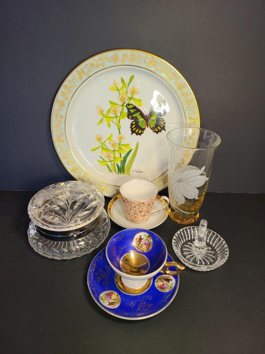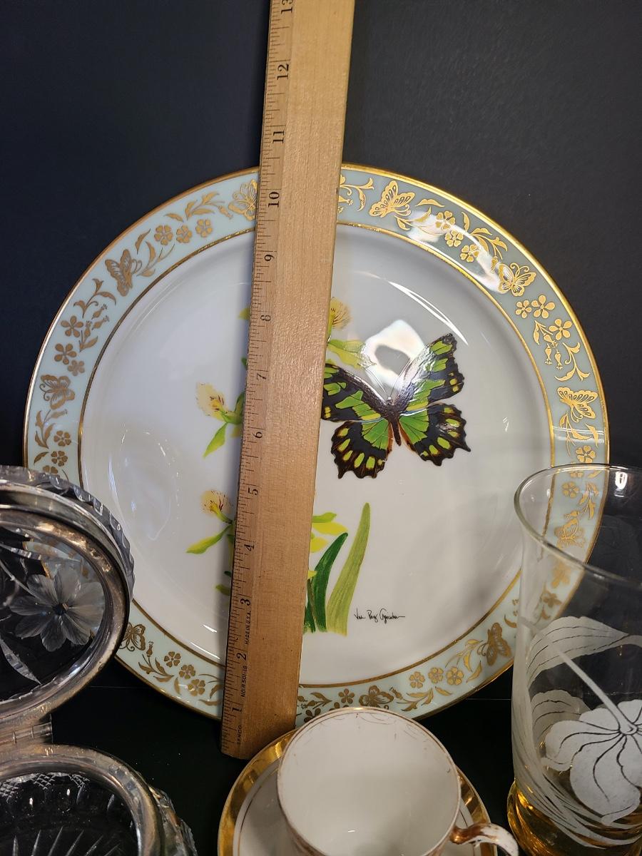 LOT 74S: Lenox Butterflies & Flowers Plate, Crystal Cut Glass Trinket Box and More