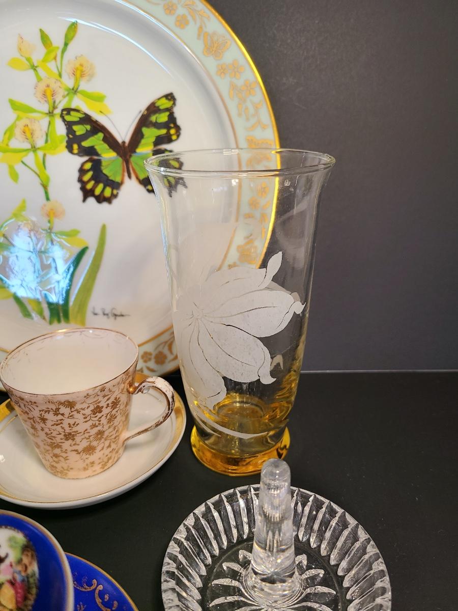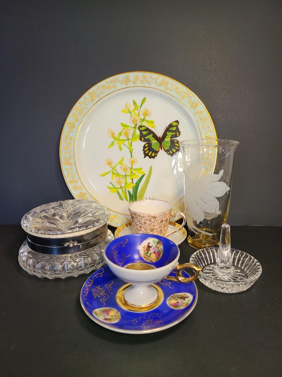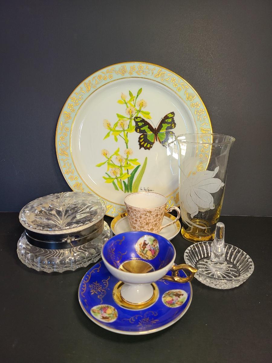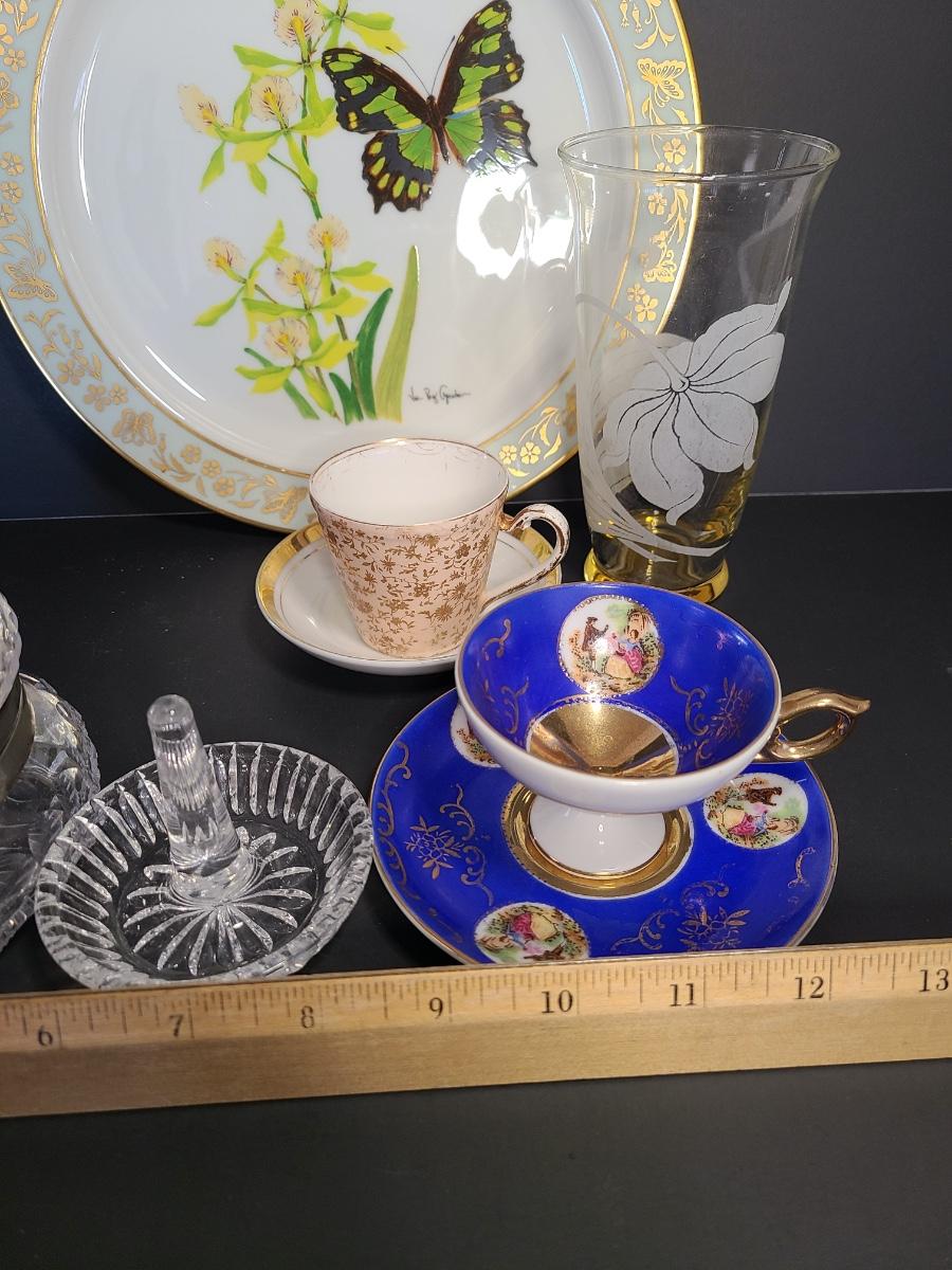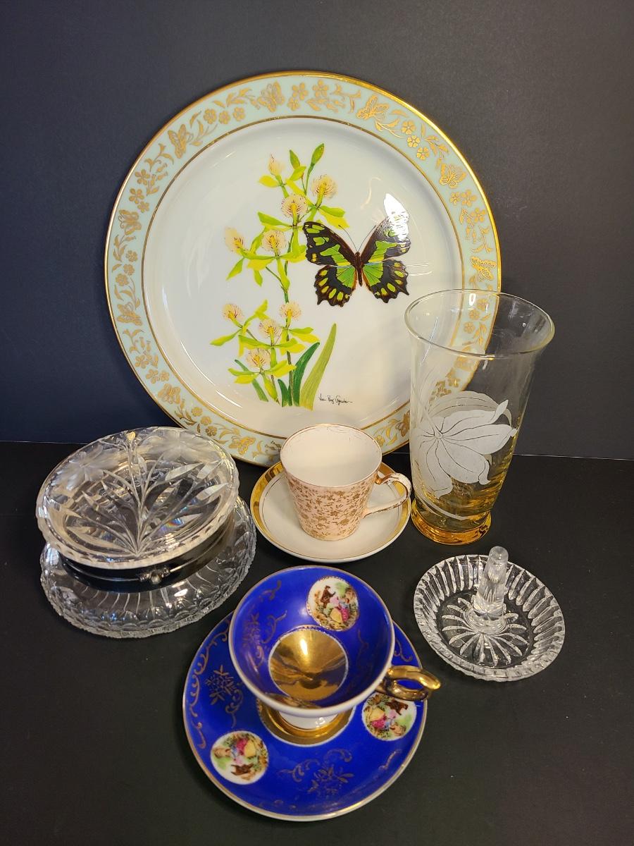 LOT 74S: Lenox Butterflies & Flowers Plate, Crystal Cut Glass Trinket Box and More