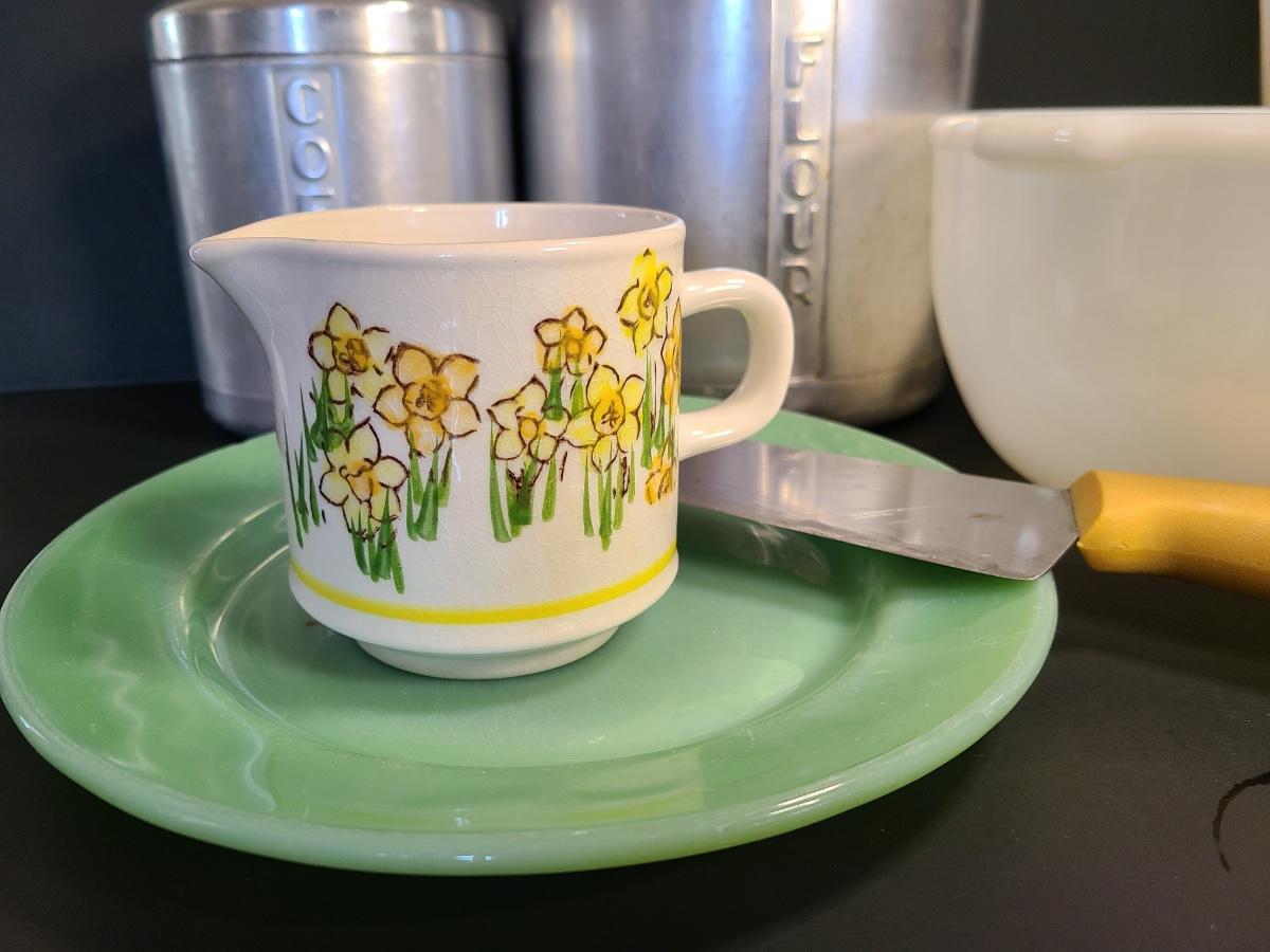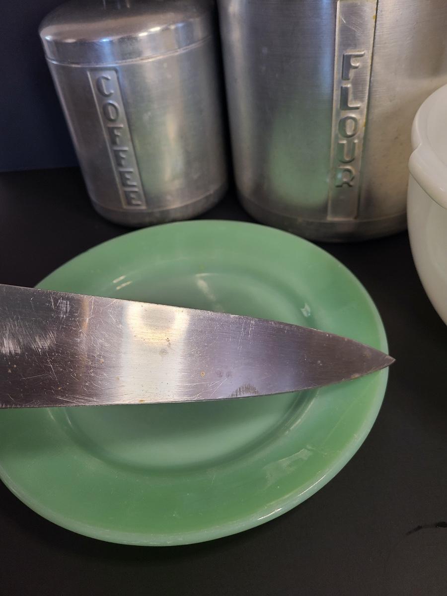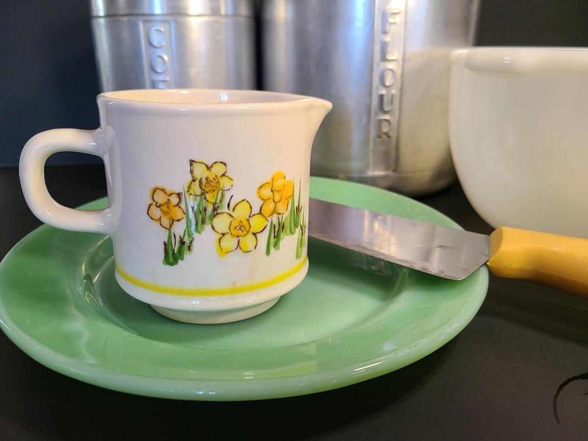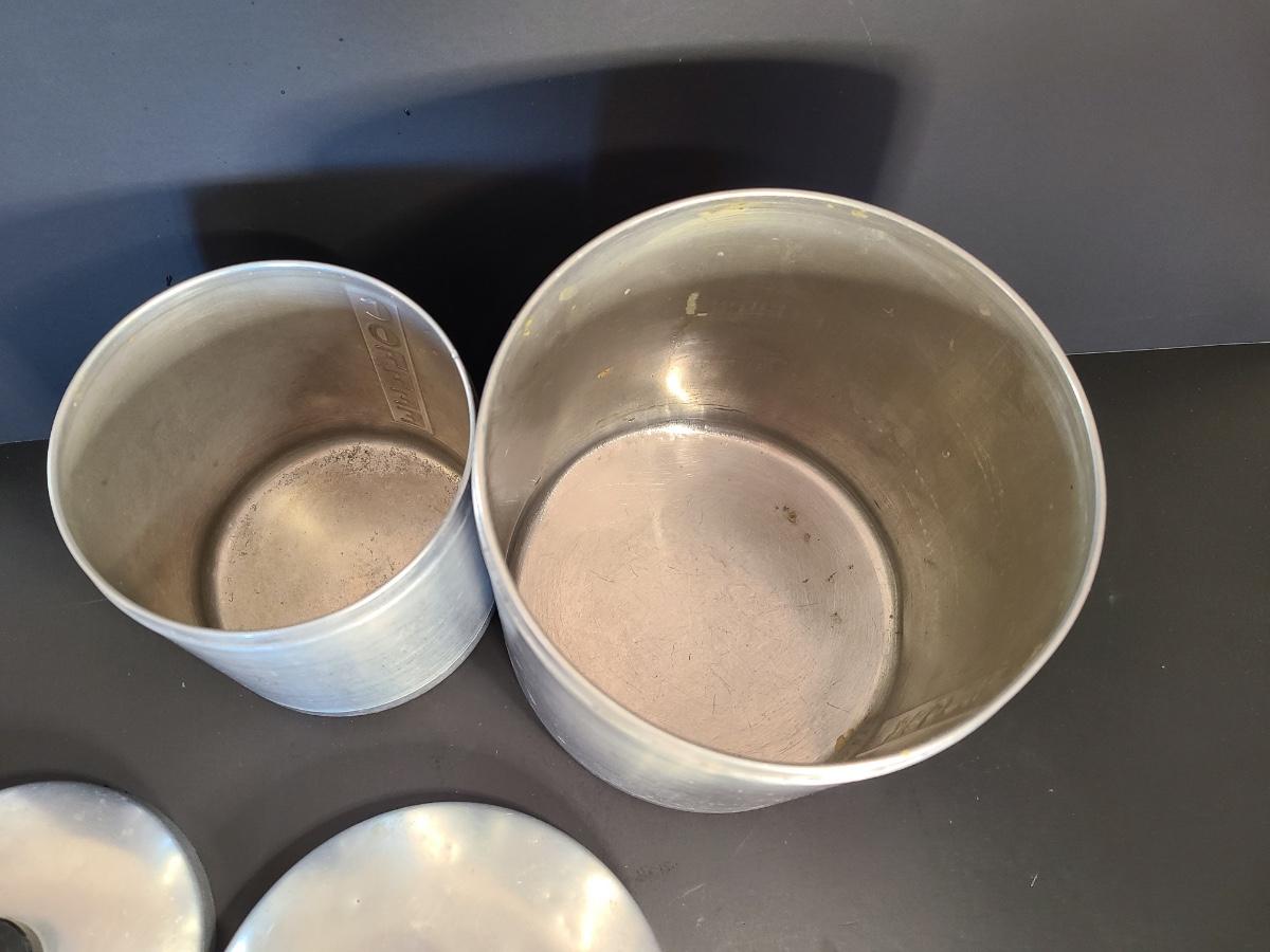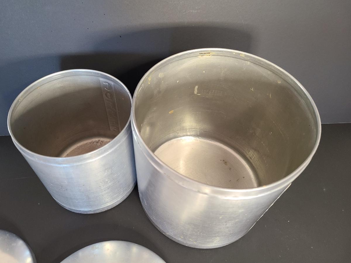 LOT 77S: Vintage Kitchen: Aluminum Canisters, Sunbeam Mixing Bowl, Jadeite Plate and More