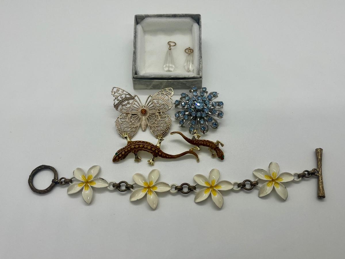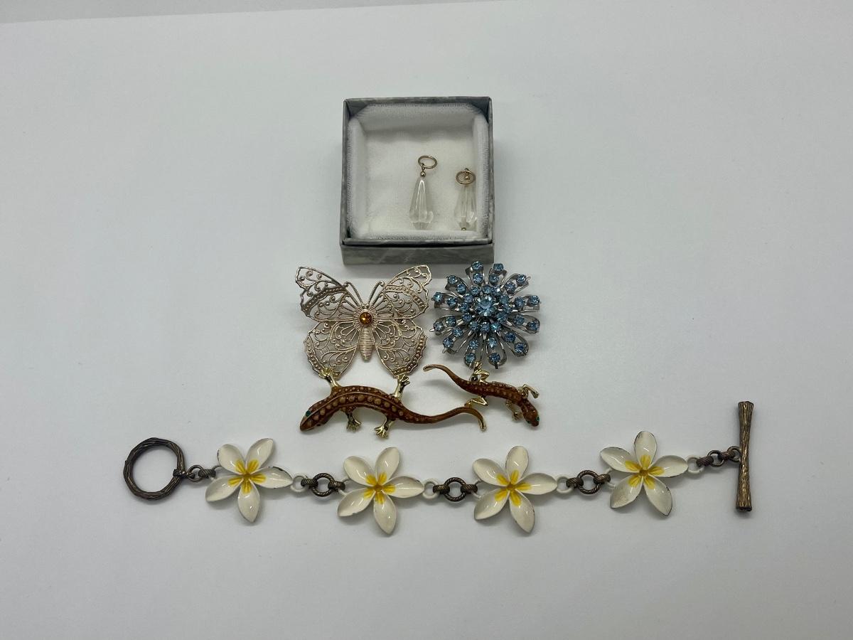 LOT 161C: Vintage Coro Brooch. Germany Butterfly Brooch, Enamel Bracelet & More