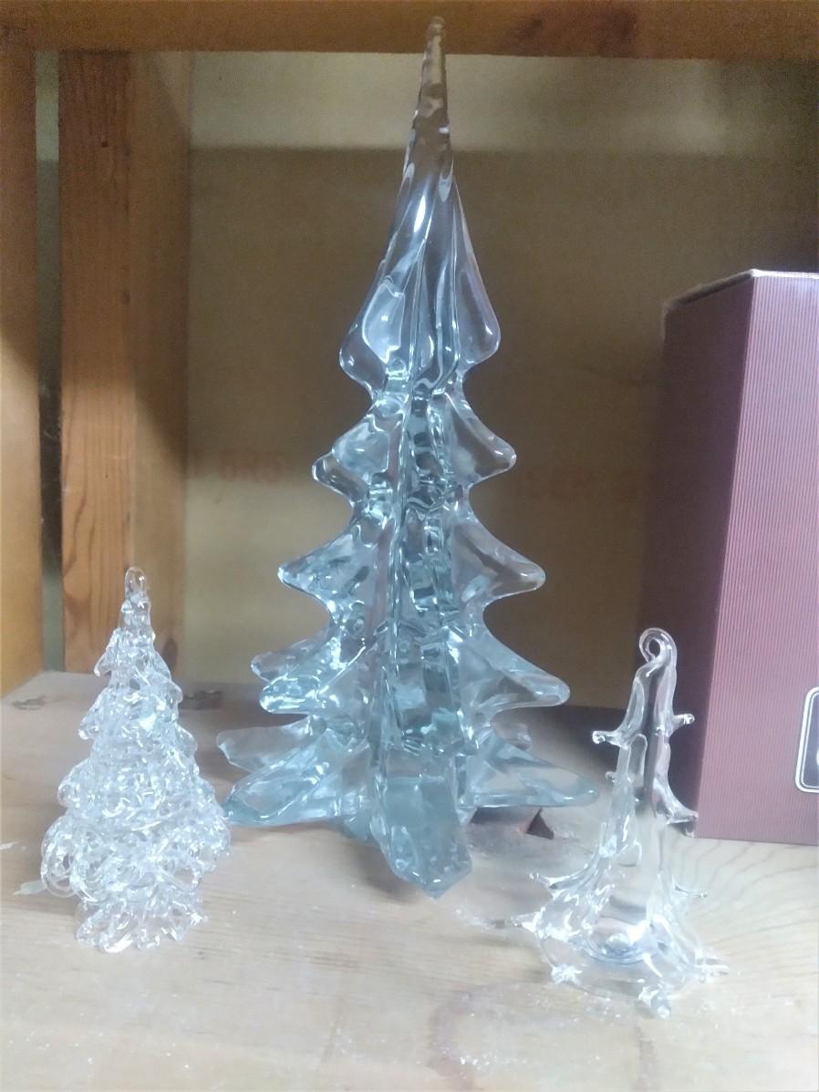 4 GLASS CHRISTMAS TREES TALLEST ONE MEASURES 11" IN HEIGHT