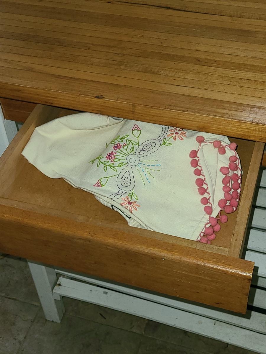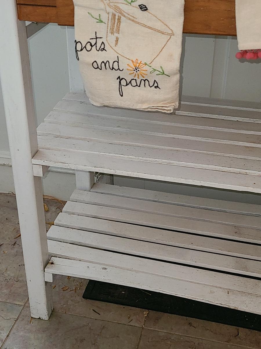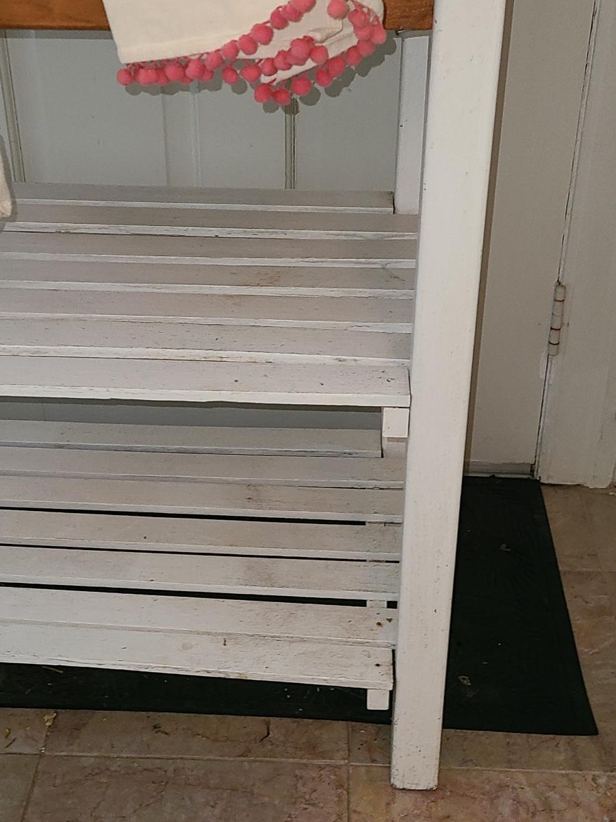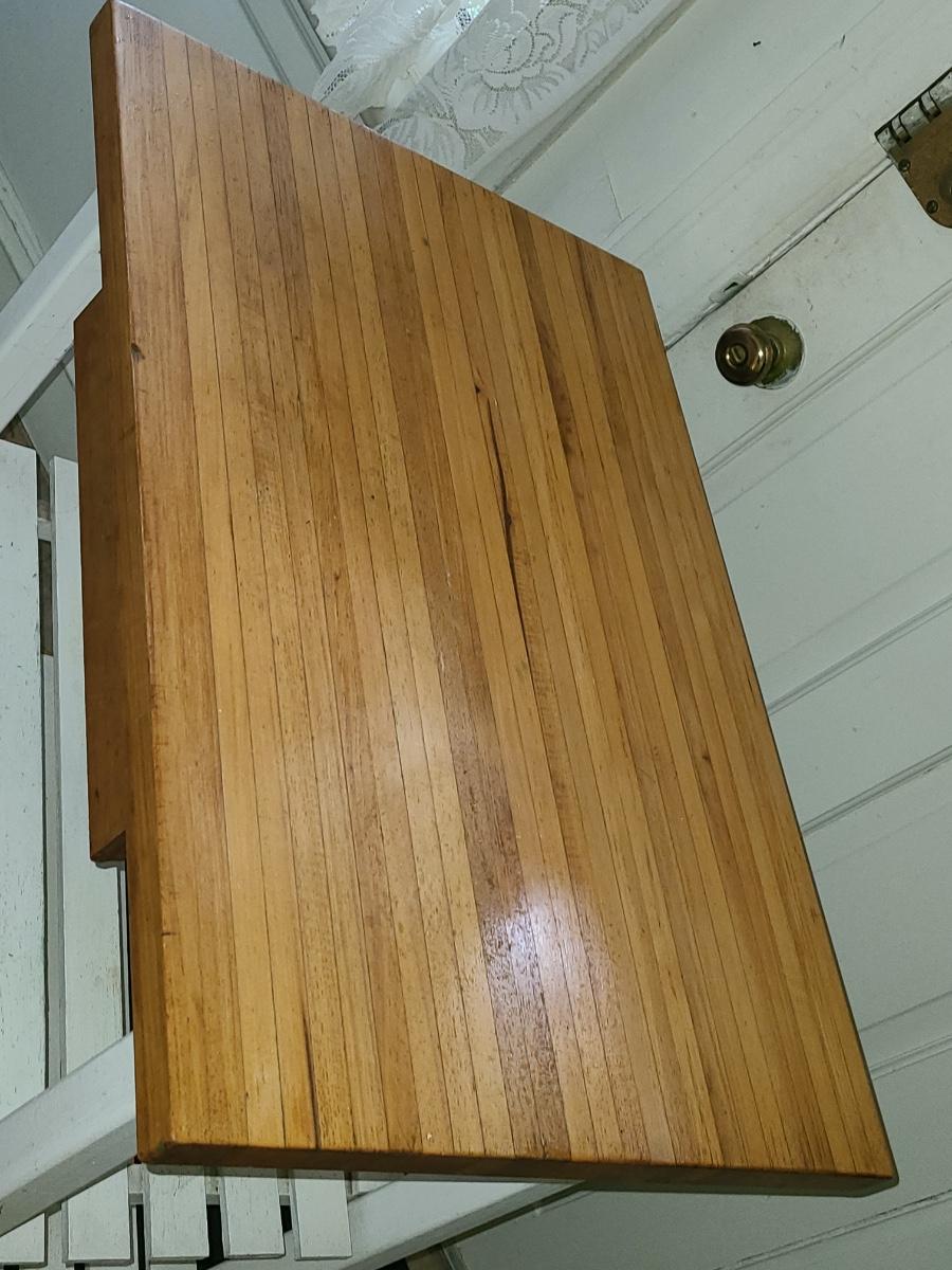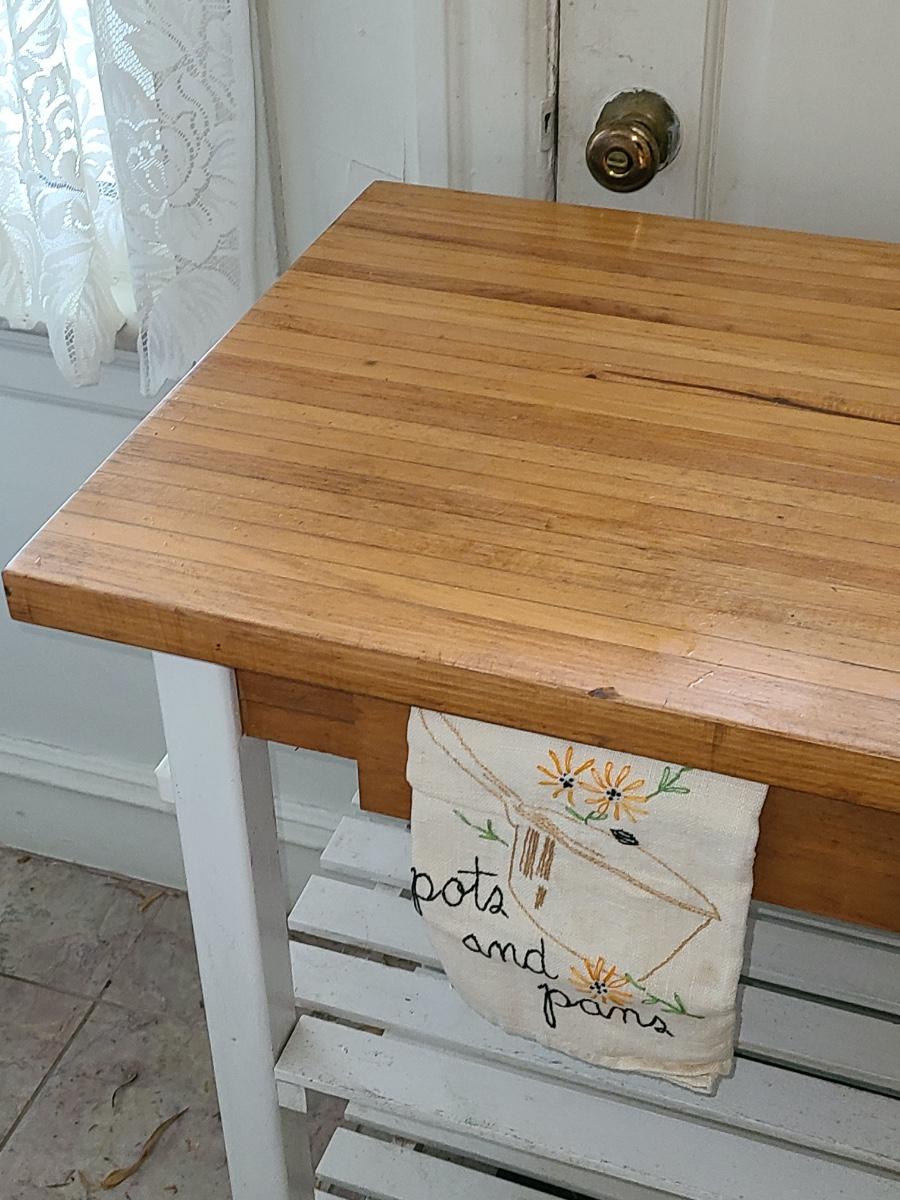 This is older, and shows wear. Comes with tea/kitchen towels in pictures. Could use a fresh paint of coat if you want to up-cycle. The butcher block top is gorgeous! Please see all pictures as they are the best representation of the items. The pictures show condition, measurements if taken, and what is included in the lot. Due to the large amount that we photograph and the time frame, we are not always able to take measurements. All items unless noted, are pre-owned and have been used. If you purchased furniture, you must bring help. We do not allow one person to carry large furniture out on their own. Bring help, tools and a truck for the safety of our client’s homes, and your personal safety. Any damages that result to the property including walls, and floors due to moving of the furniture will be charged to the buyer. Company policy. Thank you.