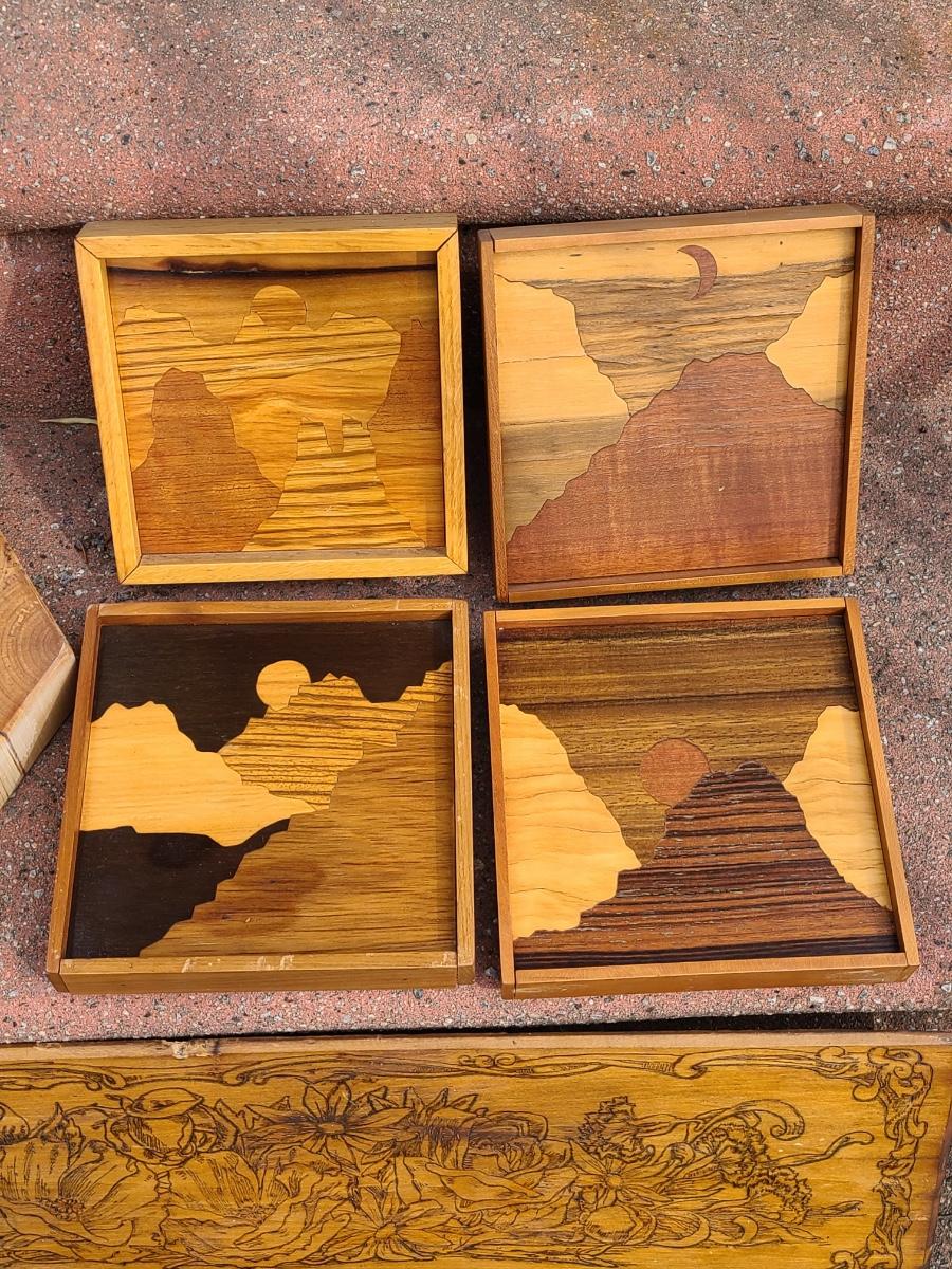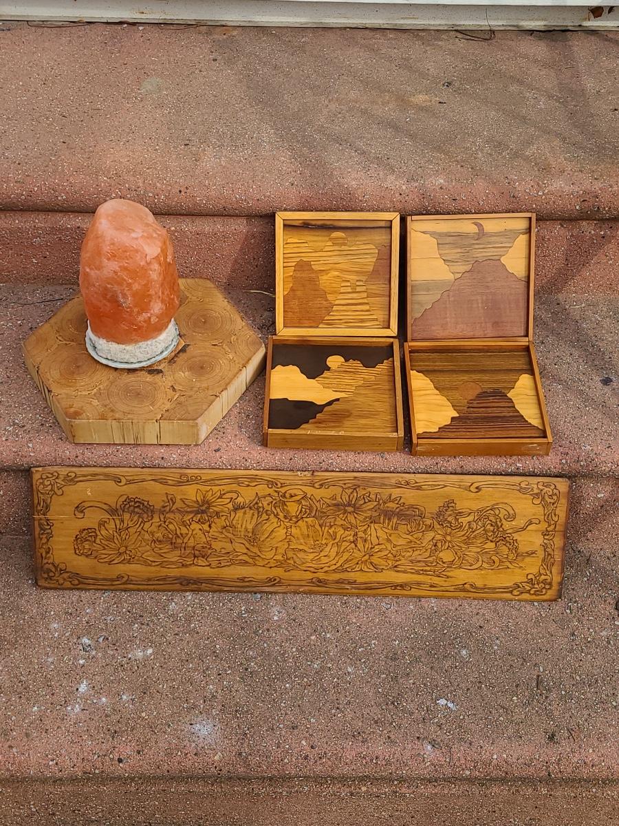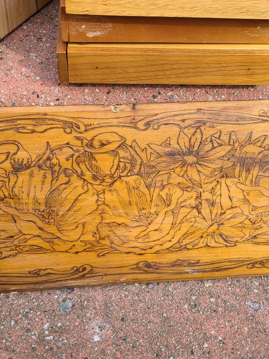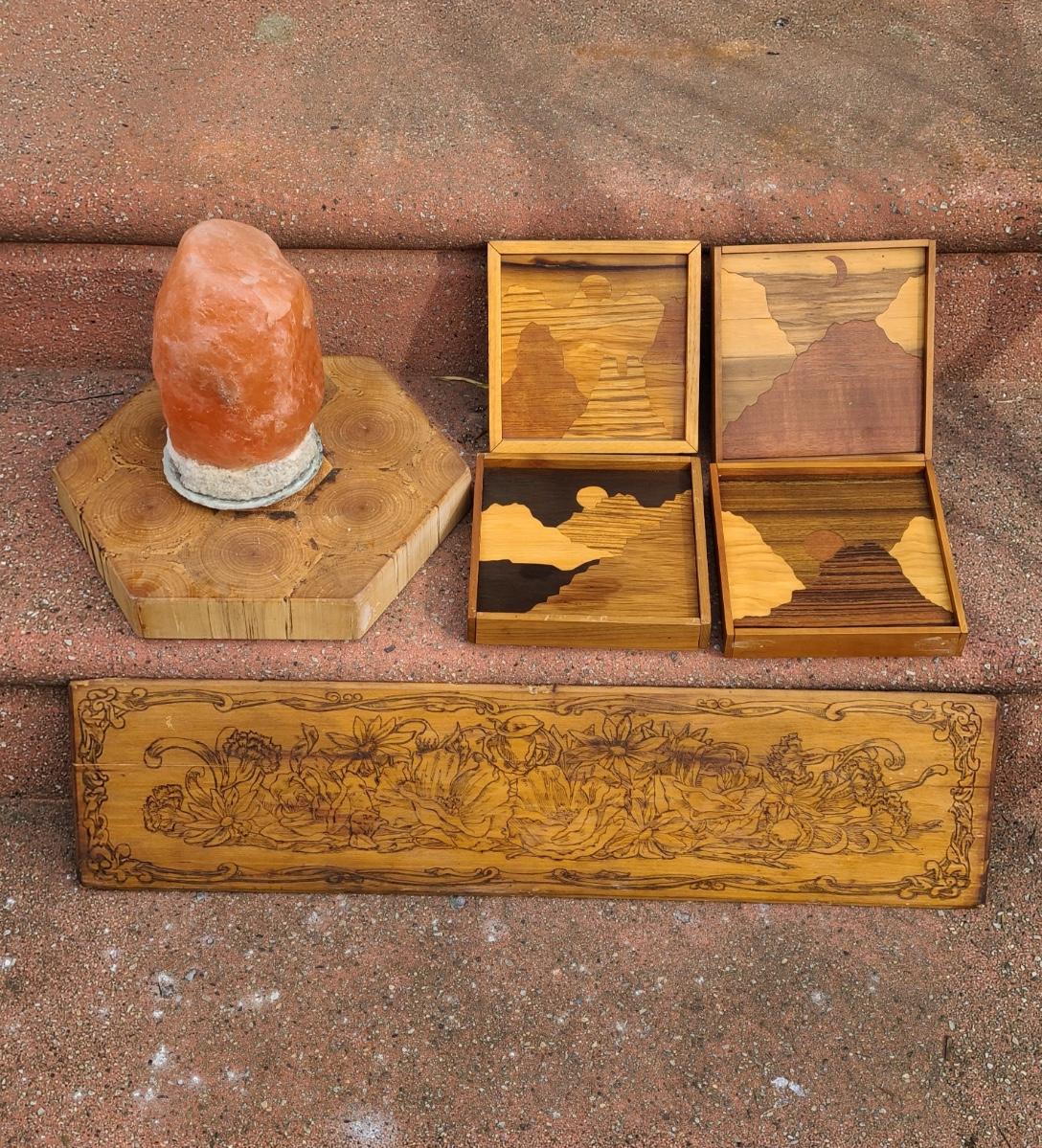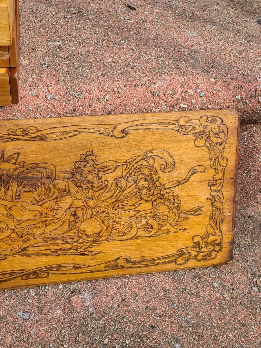 Lot 91S: Artist Wood Art-Blocks, Wood Carved Drawer Panel, Cutting Board, and More