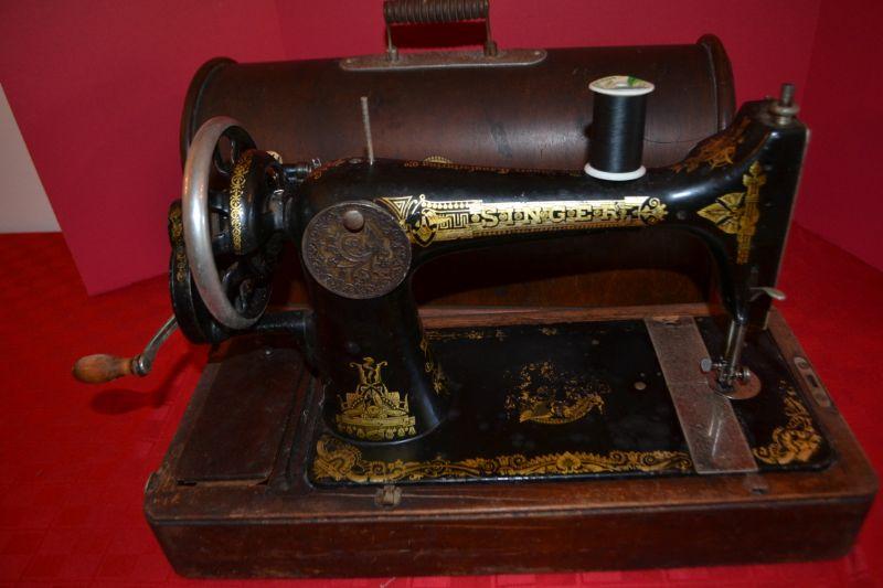 LOT 679 ANTIQUE SINGER RUSSIAN MADE HAND CRANK SEWING MACHINE
