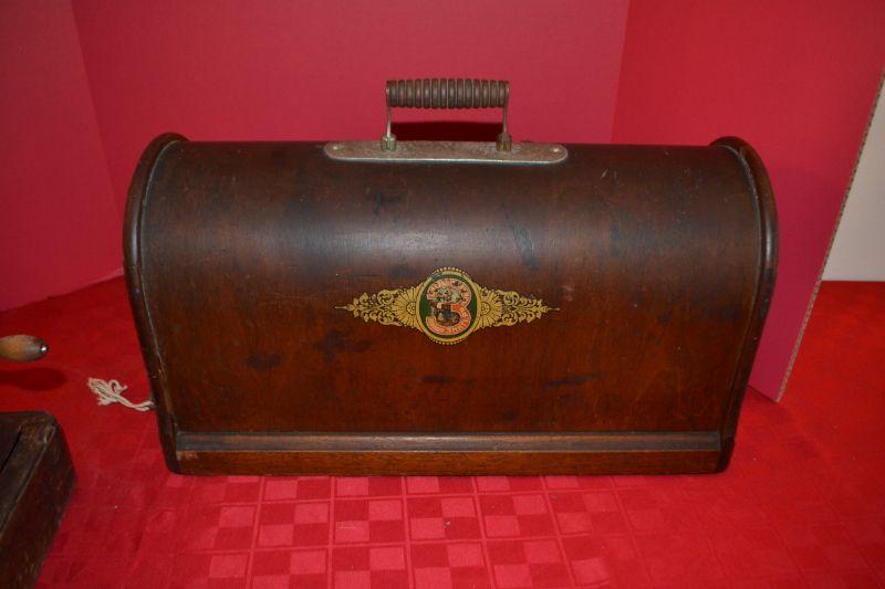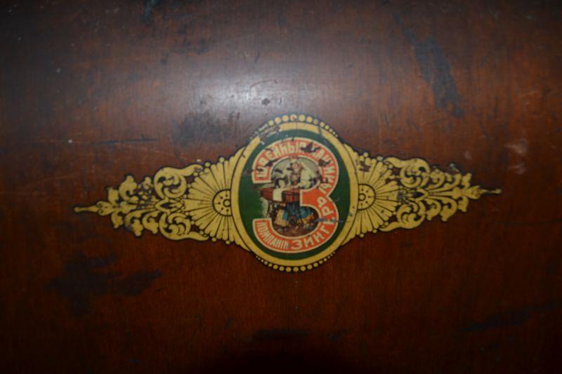 WOOD CASE HAS SINGERS RUSSIAN LOGO