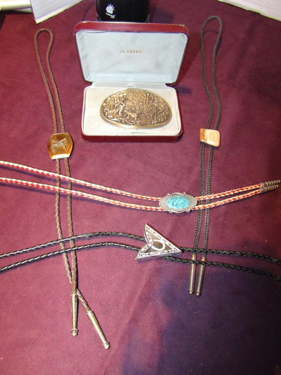 LOT 679 BOLO TIES AND A BELT BUCKLE