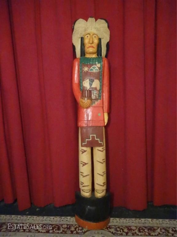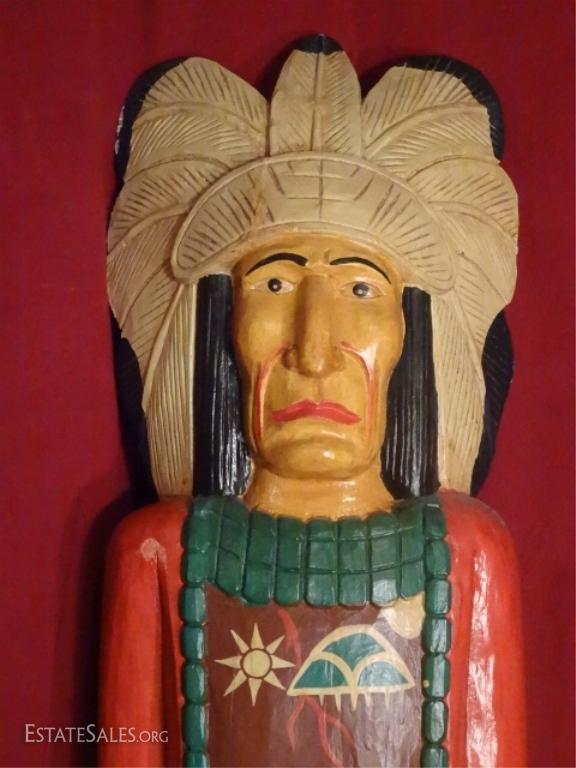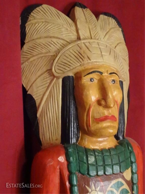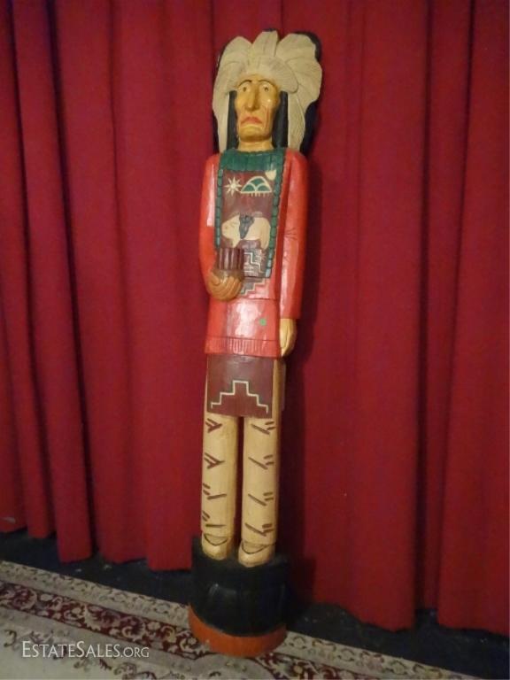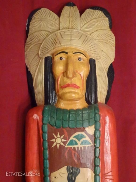 LOT 67B: LIFE SIZE CARVED WOOD NATIVE AMERICAN CHIEF SCULPTURE