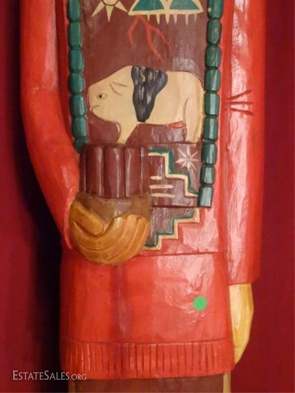 LOT 67B: CARVED WOOD NATIVE AMERICAN CHIEF SCULPTURE, LIFE SIZE, PAINTED FINISH, APPROX 74"H X 14"W, SKU148.04