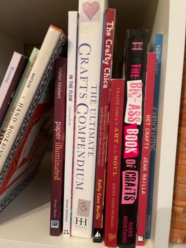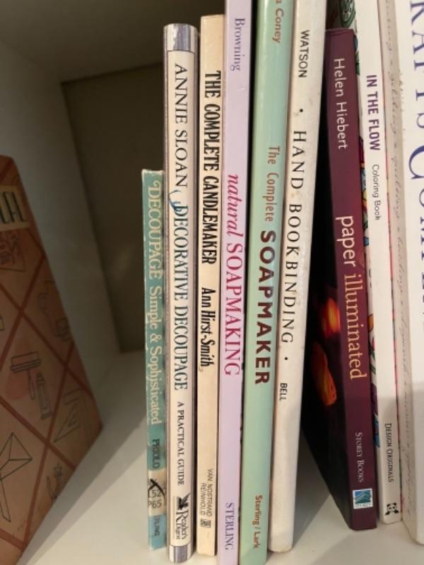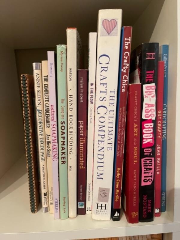 Lot 67BR. Assorted books on crafting, paper crafts, soap making, bookbinding, vintage Sunset craft book, Mexican crafting, etc.“”15 books total--$27.50