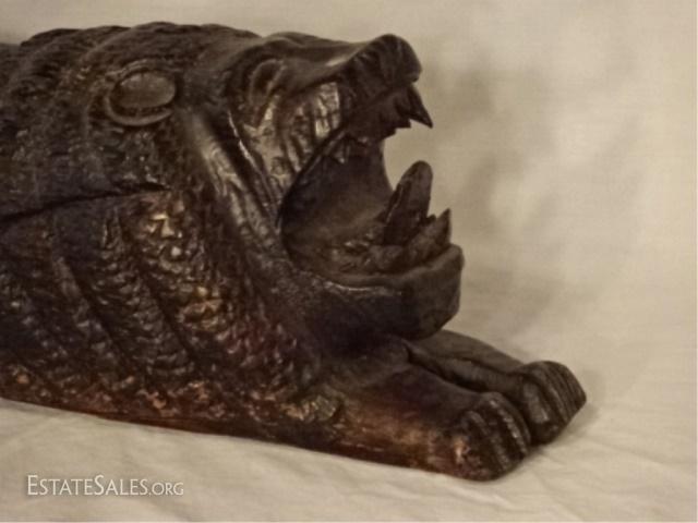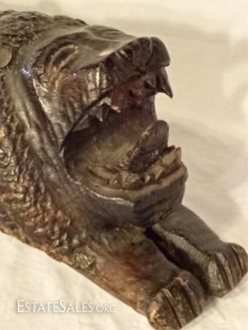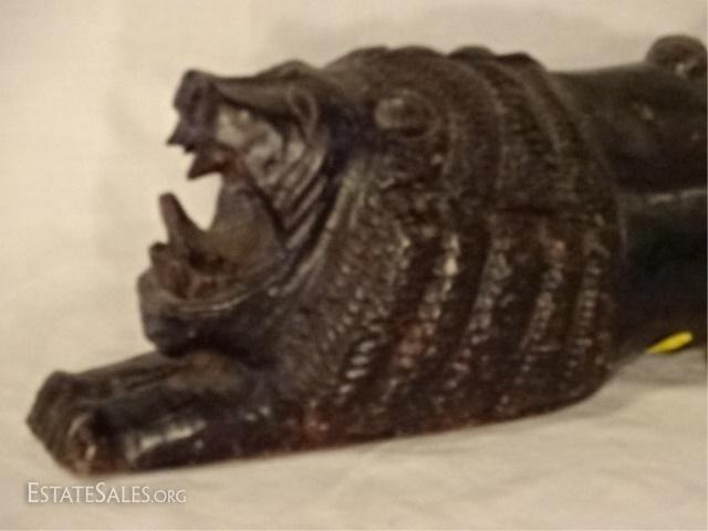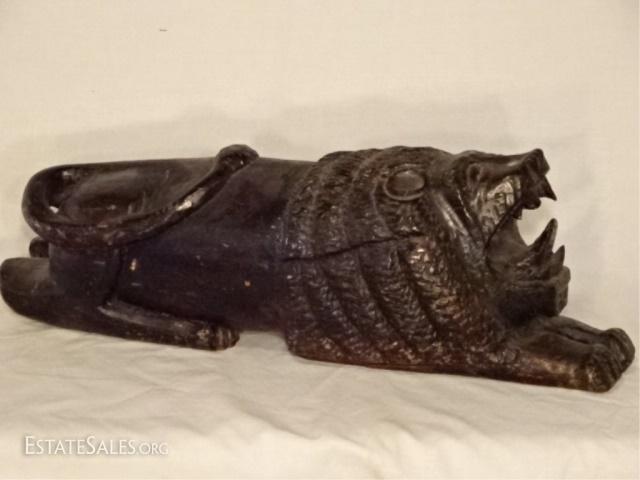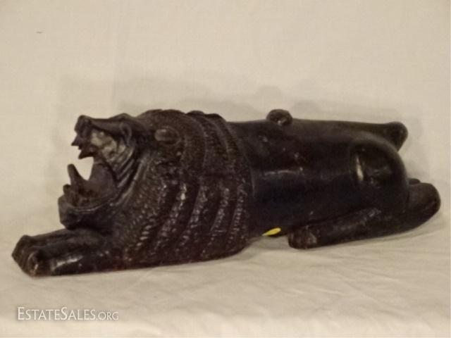 LOT 67C: AFRICAN CARVED WOOD RECLINING LION SCULPTURE