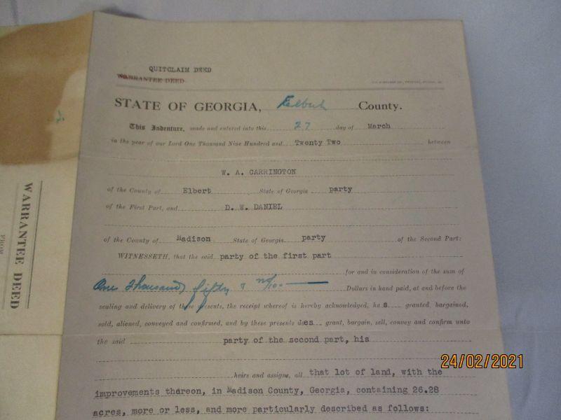 Lot 68 - 1922 Quit Claim Deed from Georgia