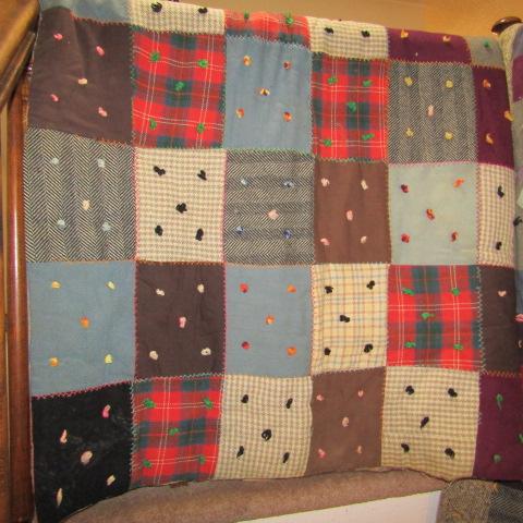 HAND STITCHED QUILT FROM MEN'S OLD SUITS AND PANTS