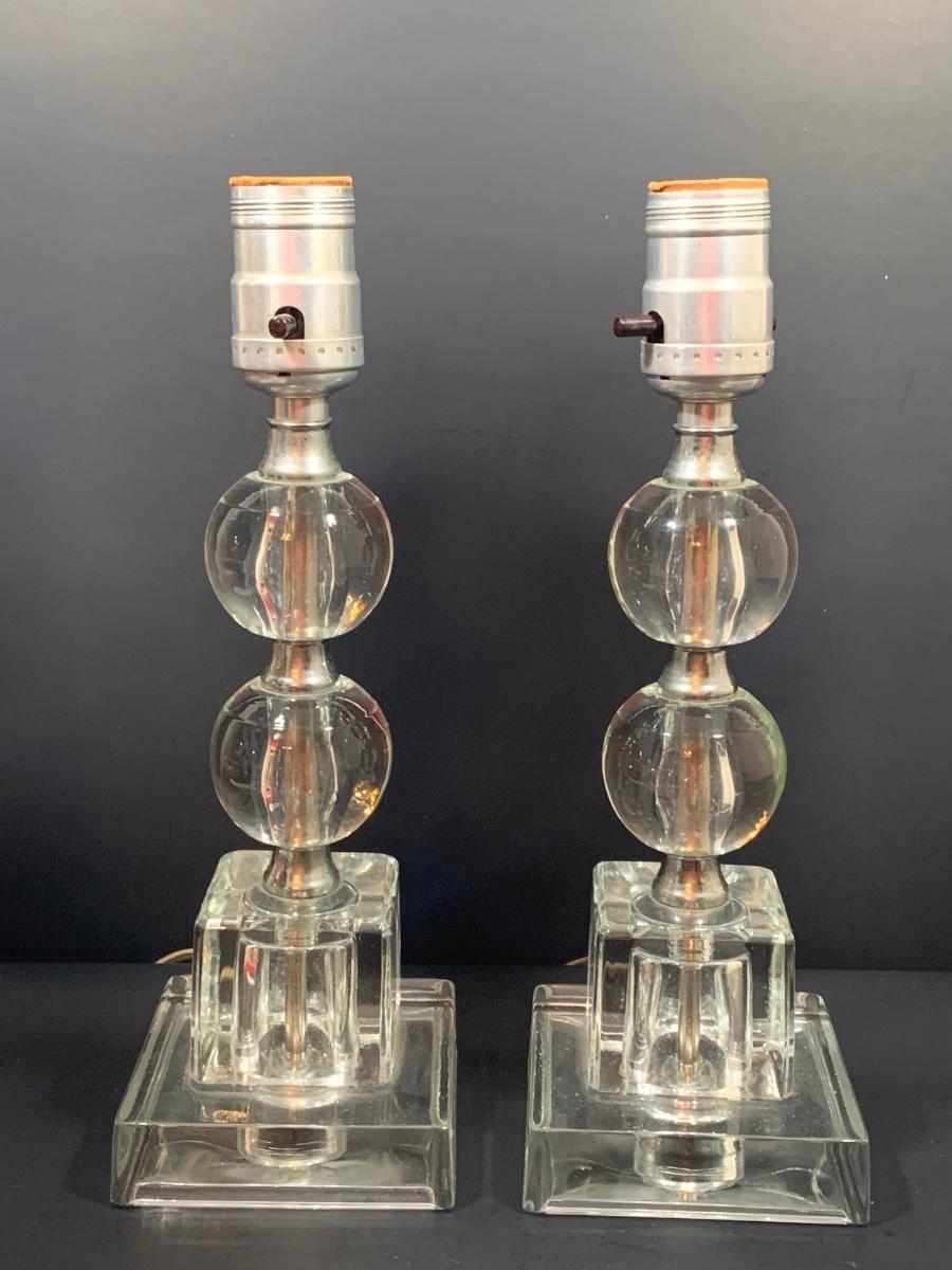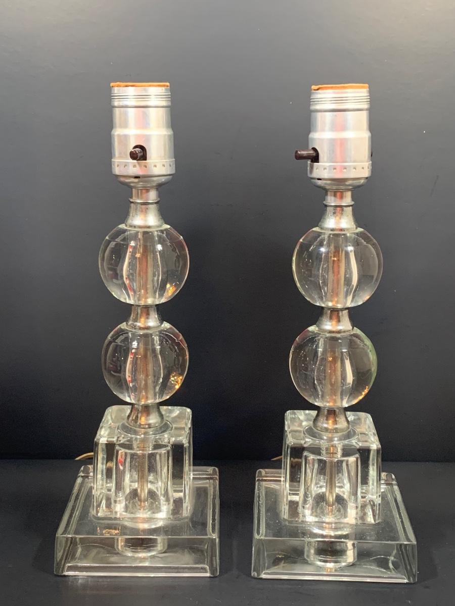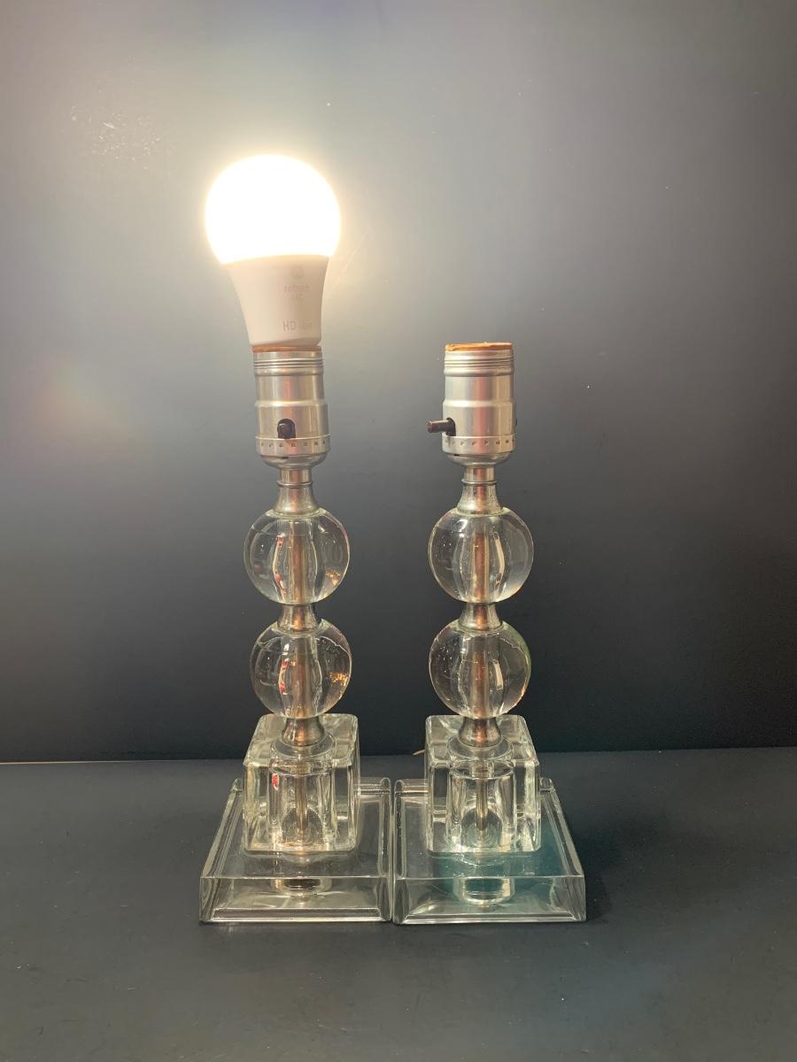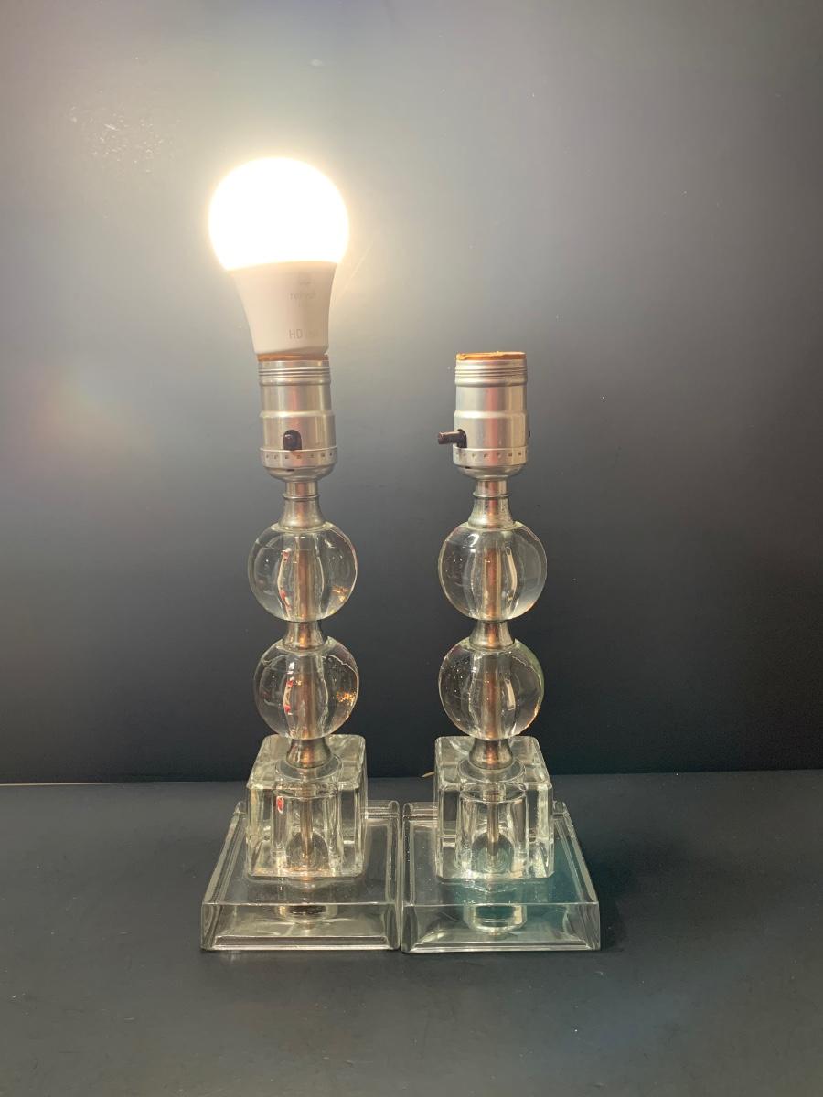Lot 68:n Vintage MCM Glass Dresser Lamps