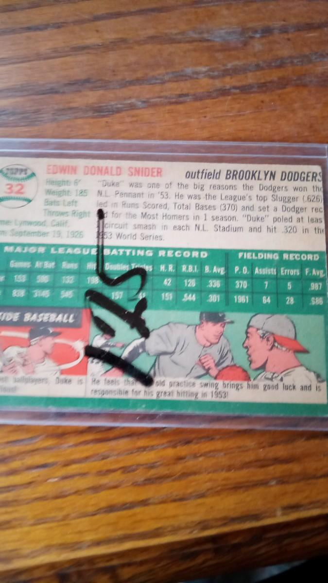 LOT 68 DUKE SNIDER VINTAGE BASEBALL CARD