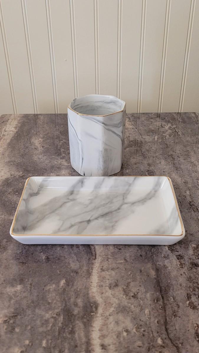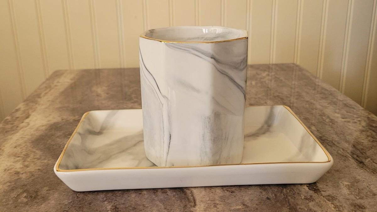 Lot 68: Ceramic Marble Glazed Cup and Tray
