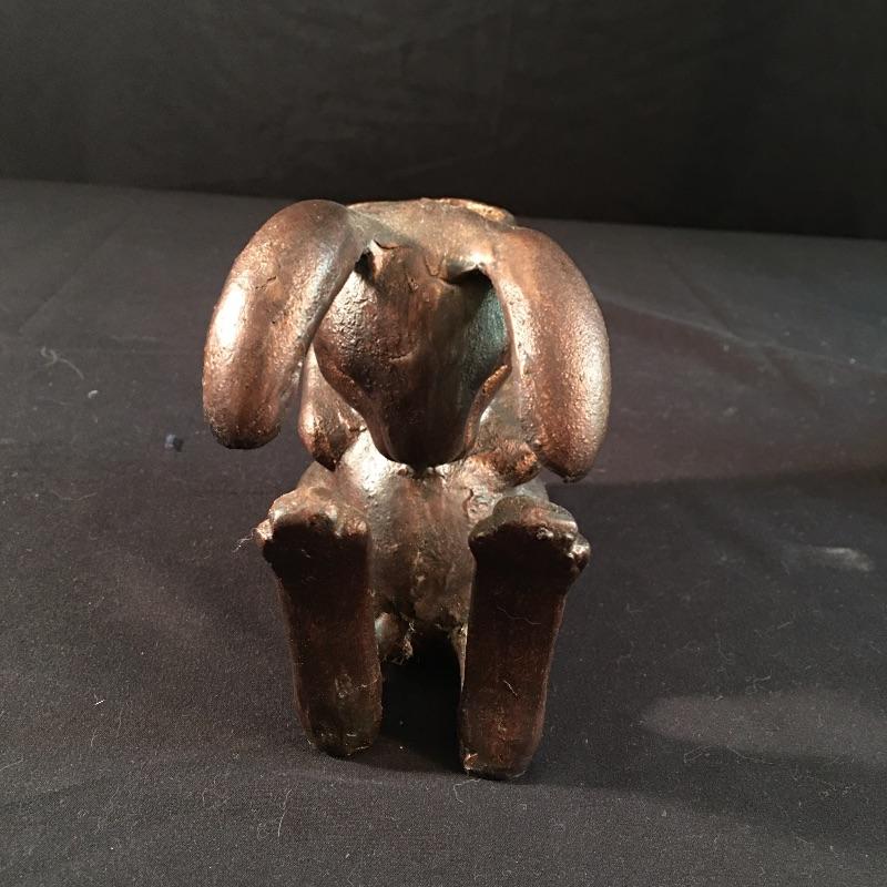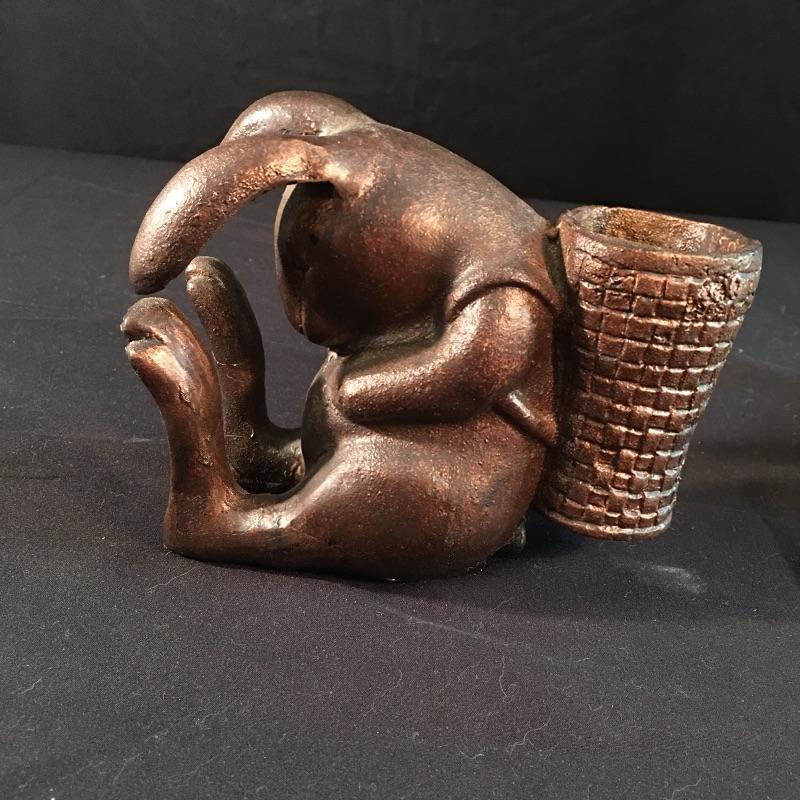 This brass colored adjustable lamp will be great on your desk, shining light wherever you need. Lot also includes copper colored metal rabbit pencil holder and a old school tape dispenser. Lamp measures 7”D x 39” tall when extended.