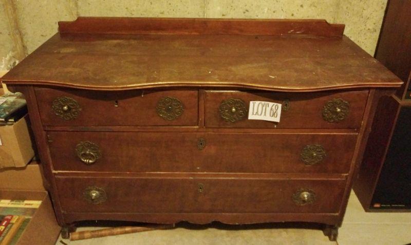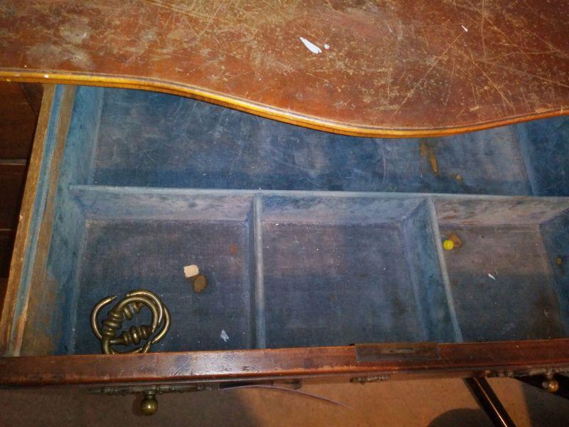 4 OF THE 6 MISSING HANDLES ARE THERE TO BE PUT BACK ON. IT ALSO NEEDS TO BE REFINISHED