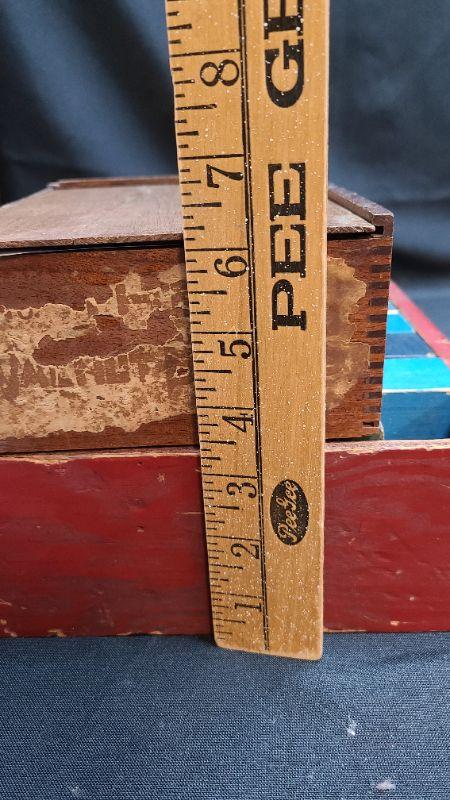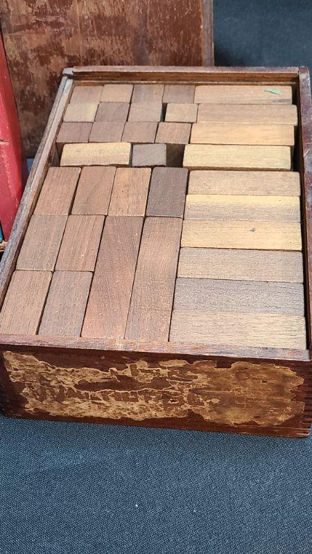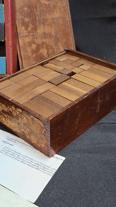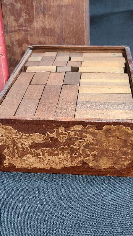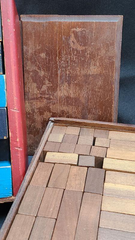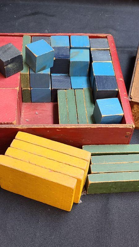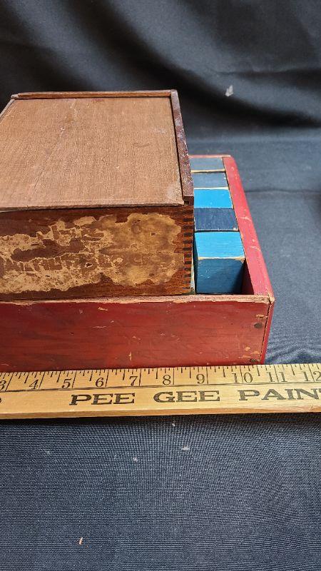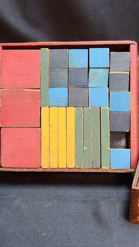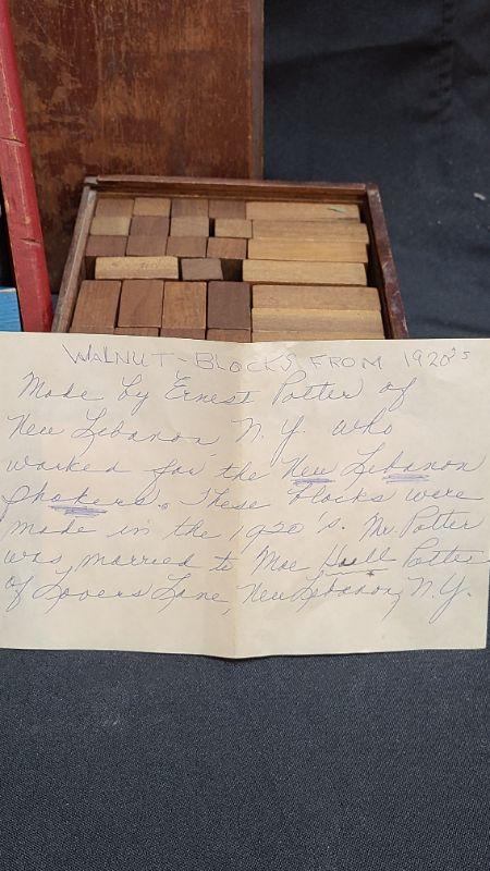 Antique Walnut Wood Blocks with incredible history of the blocks. Primitive painted wood Blocks. Please see all pictures for condition of the items listed and what is included in the lot. Pictures will also show any measurements if taken and is the best representation of the items. Thank you for looking and have fun bidding! We appreciate Treasure Hunters!