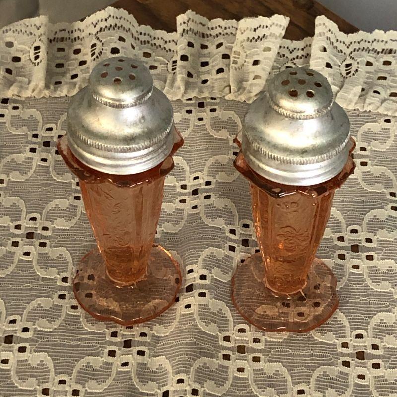 I am not sure if these are authentic Cherry Blossom shakers by Jeannette or well done reproductions. They are about 4" tall and in very good condition. Please visit this link to help make your decision. http://bit.ly/2X8yeVZ