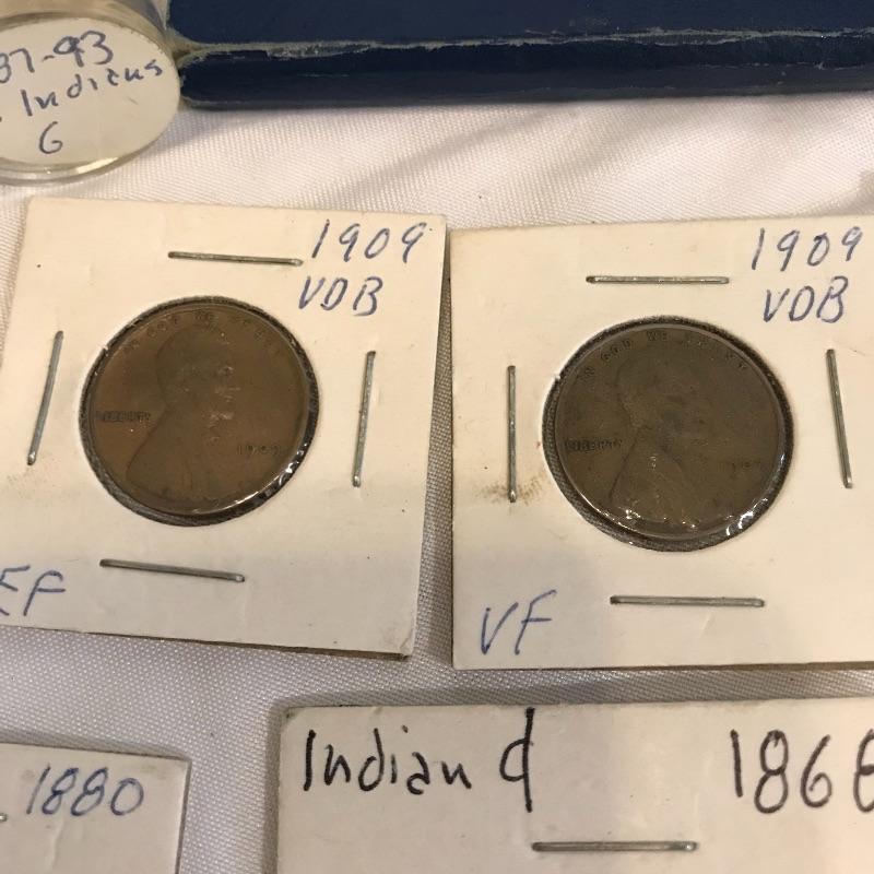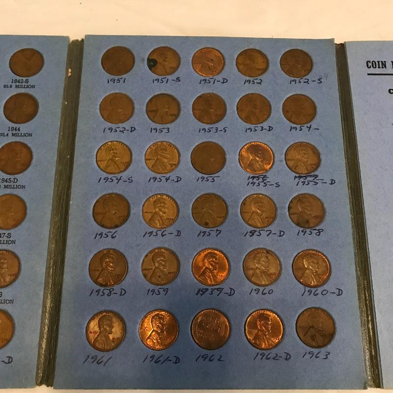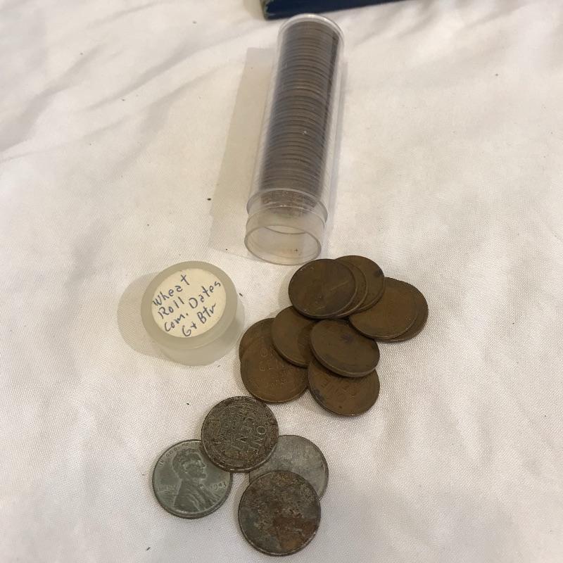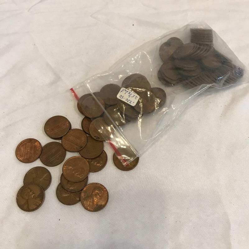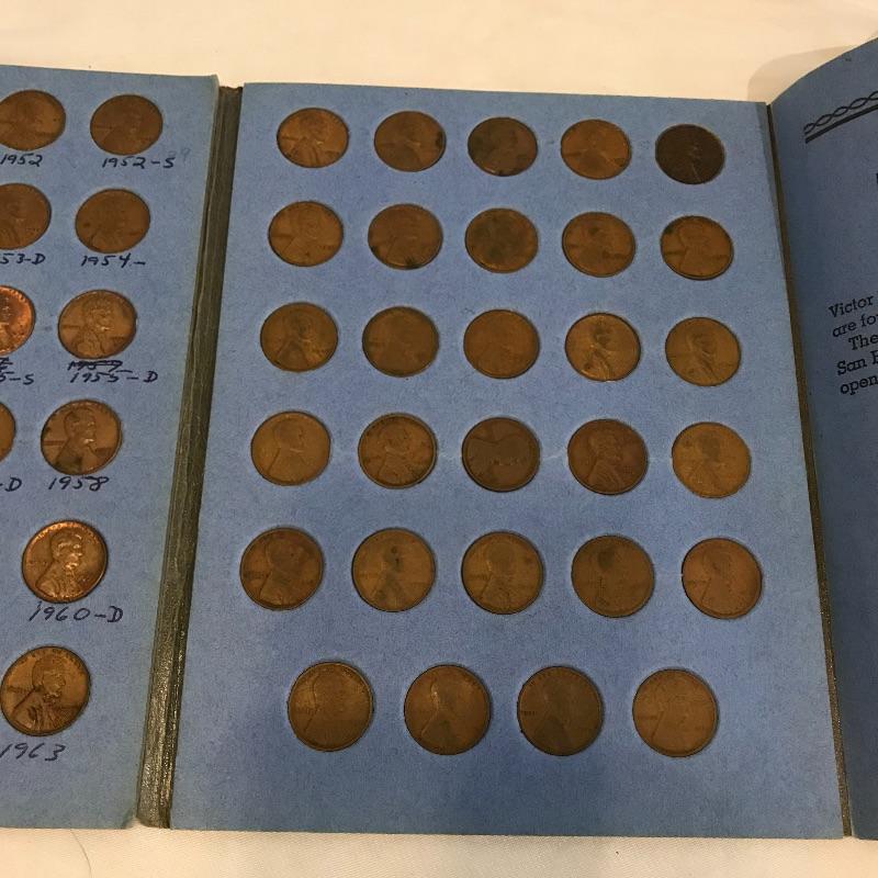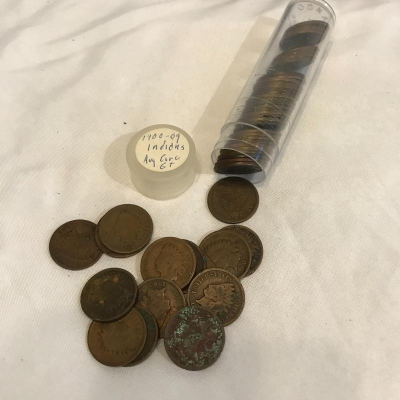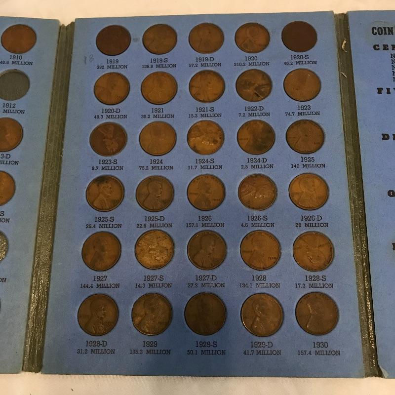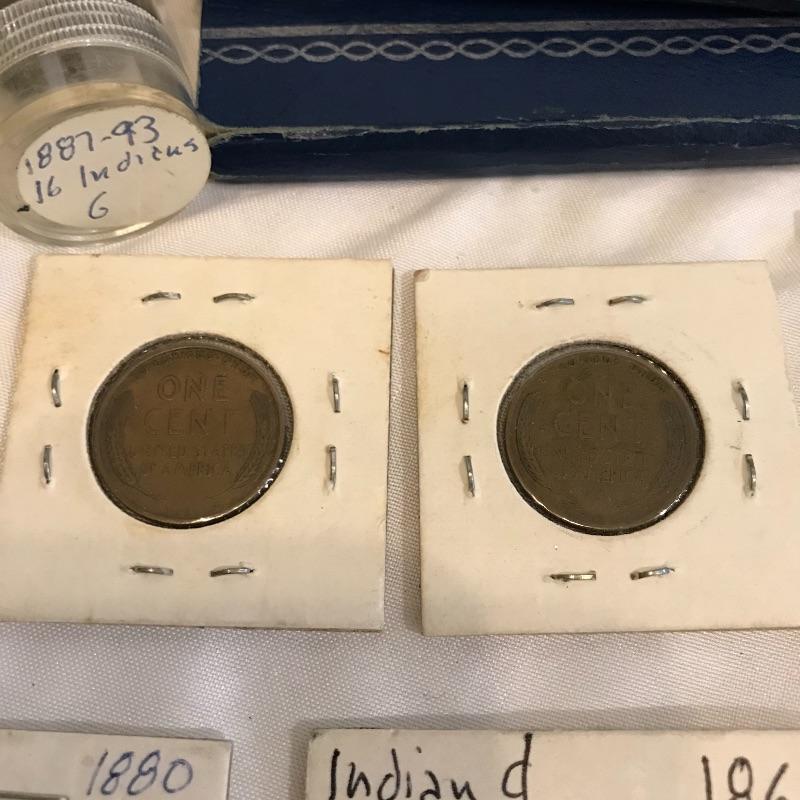 Here’s a large lot of pennies for your collection! Lot features three Whitman Blue Folders, tubes, two bags, and fifteen in sleeves. Of the fifteen, eleven are from the last half of the 1800s, two are 1909 Lincolns and two more Indian Heads from the start of that century. The tubes are partial to mostly full with wheat, Indian head, zinc and Lincoln 1960 pennies. Tubes are labeled, but we did not verify each penny as correctly organized. See photos for more details and make an appointment for the preview to see all in person. Shipping available. * Please note, there are no refunds or returns for items purchased at auction. Please be sure to review carefully prior to bidding. We can not verify or authenticate these coins.